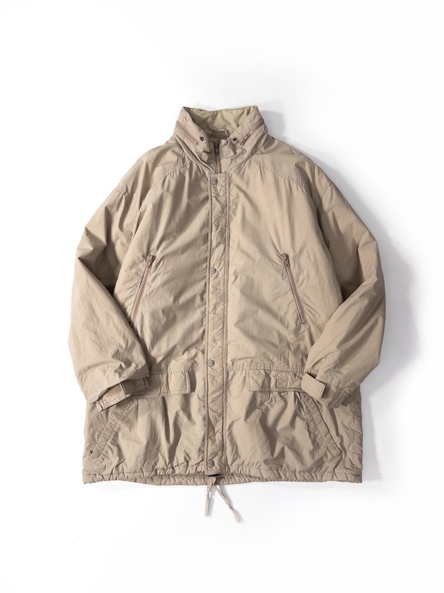L.L.Beanらしい実用性を軸にしながら、意外とファッションの匂いが強い一着。 90s前後のナイロン特有の“パリッとしすぎない”質感で、着ると身体をやわらかく包む丸いシルエットに。ミリタリーのモンスターパーカーを連想させる、ゆったり落ちるアームと長めの着丈が魅力です。 裾には当時のBeanでよく使われていたロープ式のドローコード。胸・腰のポケットはアウトドア仕様のままなので、街着でも実用度が高い。 ベージュのトーンも強すぎず、白・黒・デニムの上に“無造作に羽織るだけで成立する”タイプ。 ファッション的には「アウトドア × モード」な中間地帯の良い空気感で、軽アウターとしてはかなり動きやすい1枚。 薄手の中綿入り 【MATERIAL】 shell nylon 100% inner nylon 100% 【SIZE】 サイズ表記 XL 肩幅 63cm 身幅 73cm 着丈 86cm 袖丈 62cm 【USED】 目立つダメージがある場合は商品写真に掲載しておりますのでご確認ください。 USED, VINTAGEは十分に検品しておりますが、記載の無い微細な汚れやダメージ等がある場合がございます。 -- 必読 -- ※お問い合わせの最中に売れてしまう場合もござい ますが予めご了承ください。 (ご購入が決定された商品はオンラインストア・店頭から引いておりますのでご安心ください。) ※こちらの価格には消費税が含まれています。 -- 注意事項 -- ・店頭販売を優先させていただいておりますこと予めご了承ください。 ・当店は一点物のVINTAGE、USED商品を中心とした商品を販売しております。購入後の返品・交換は受け付けておりません。中には、傷、汚れ等も見受けられる商品もございますが、長い歴史の中で経た経年変化と捉えていただければ幸いです。ご購入の際は、商品へのご理解をお願い申し上げます。 ・商品の色味は、ご閲覧いただく環境やカメラの性能による、多少の差異がある場合がございます。 【発送】 全国一律 ¥550 お買い上げ金額 ¥10,000以上で送料無料 【お問い合わせ】 meme 080-6581-7798 [email protected] ※Instagram DMでの問い合わせがスムーズです。