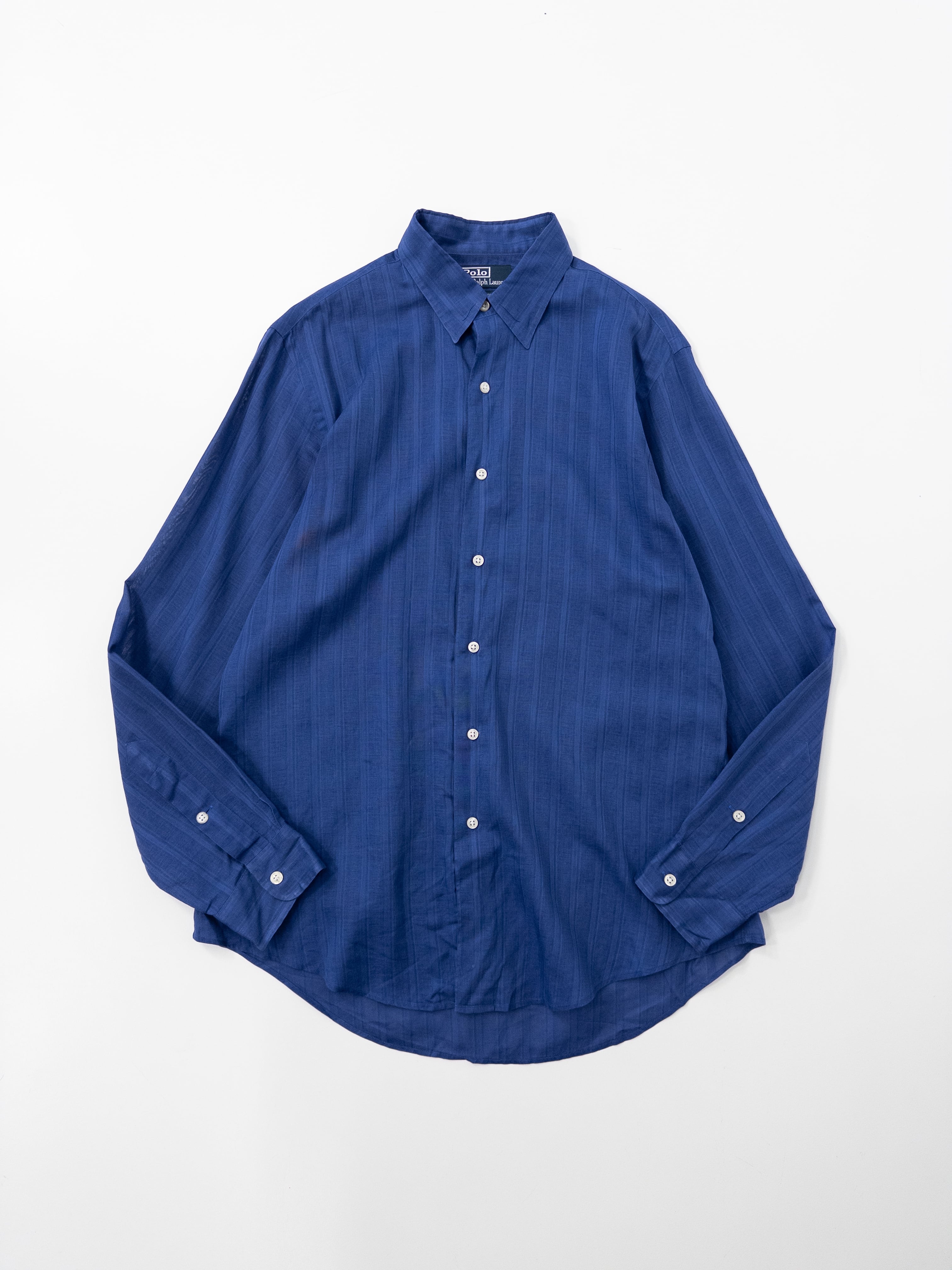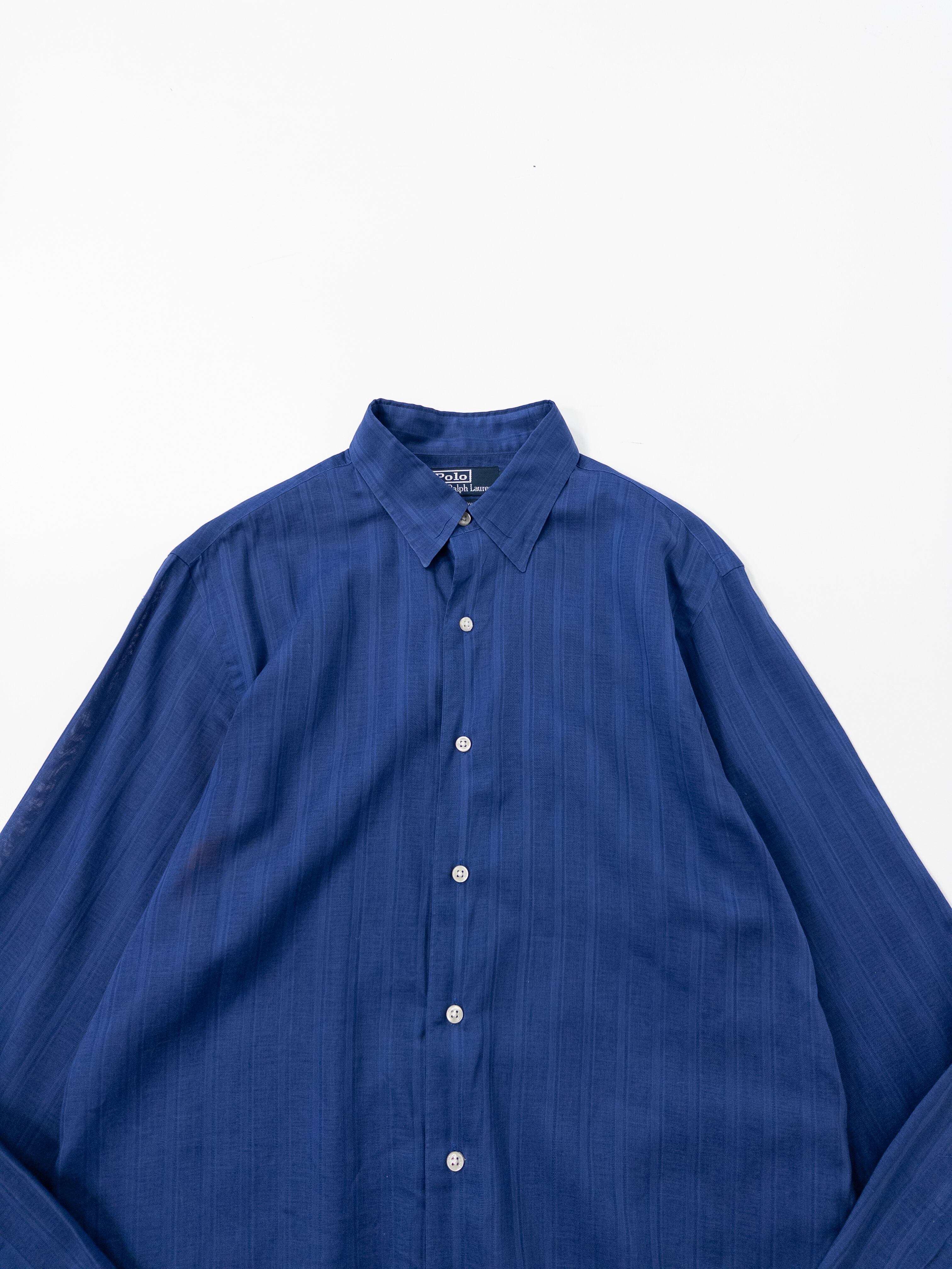 ラルフローレンが誇るラウンジウェアの最高峰ライン、MARLOWE(マーロウ)より、透明感のあるシースルー仕立てのネイビーシャツ。