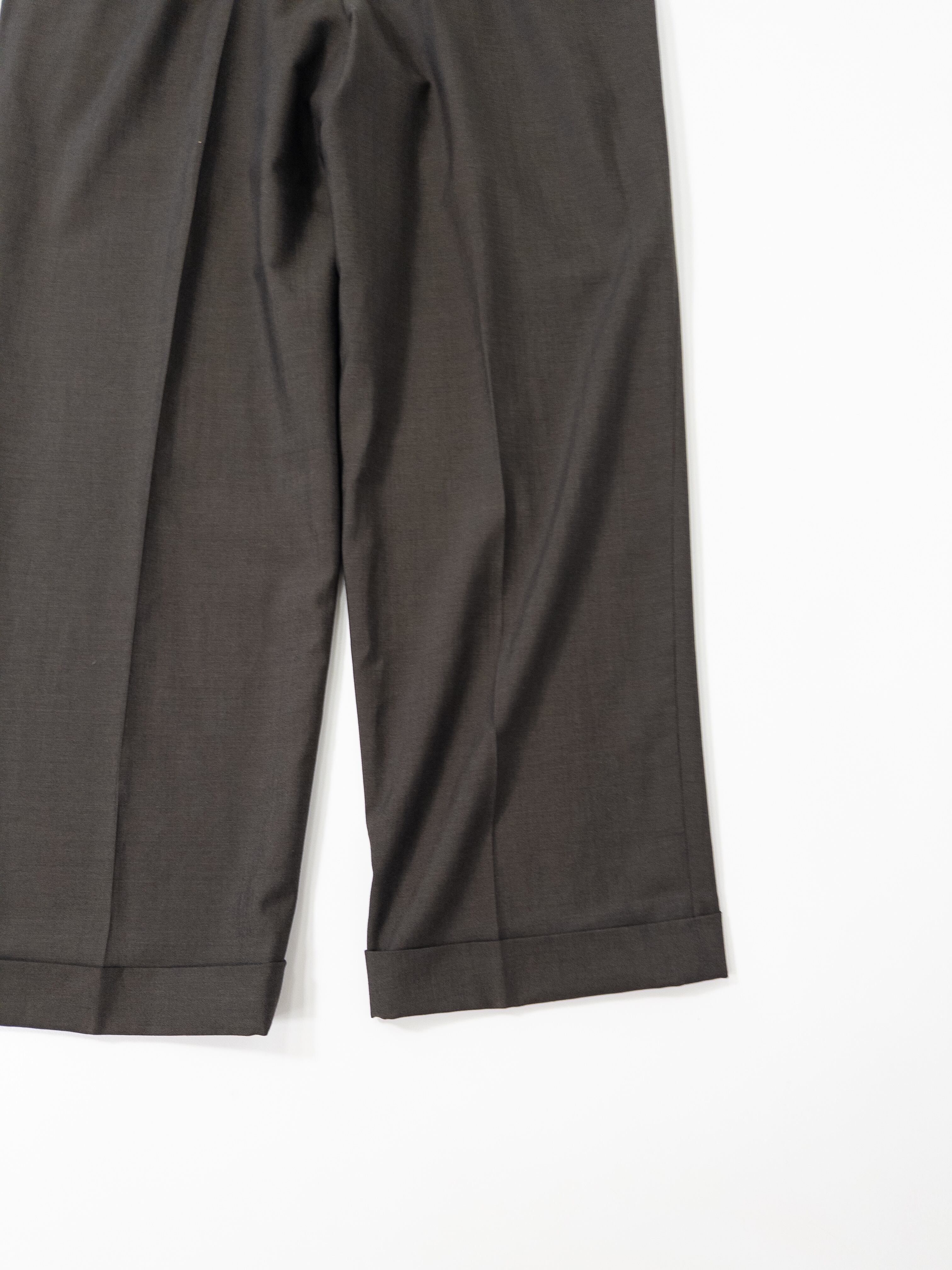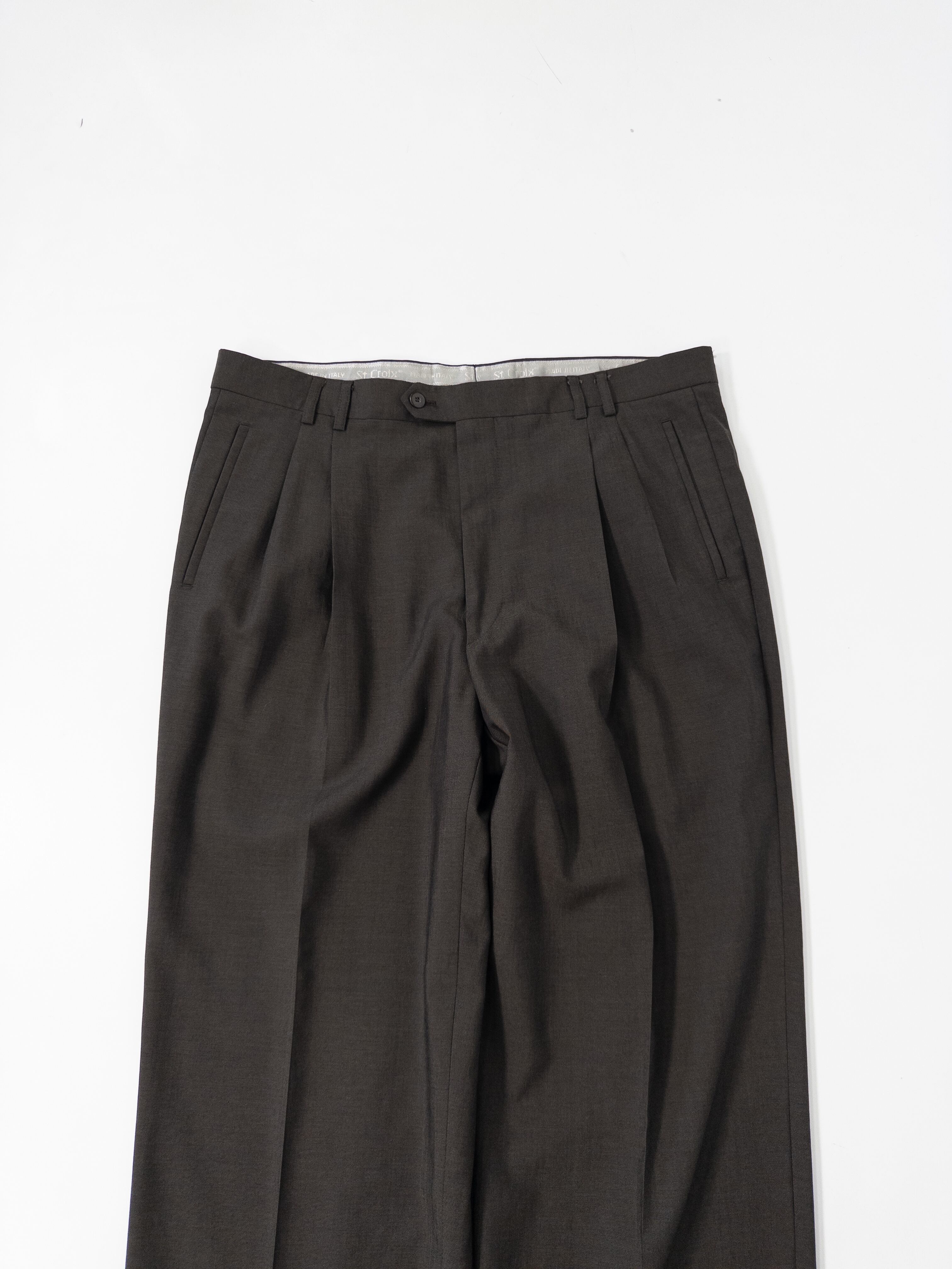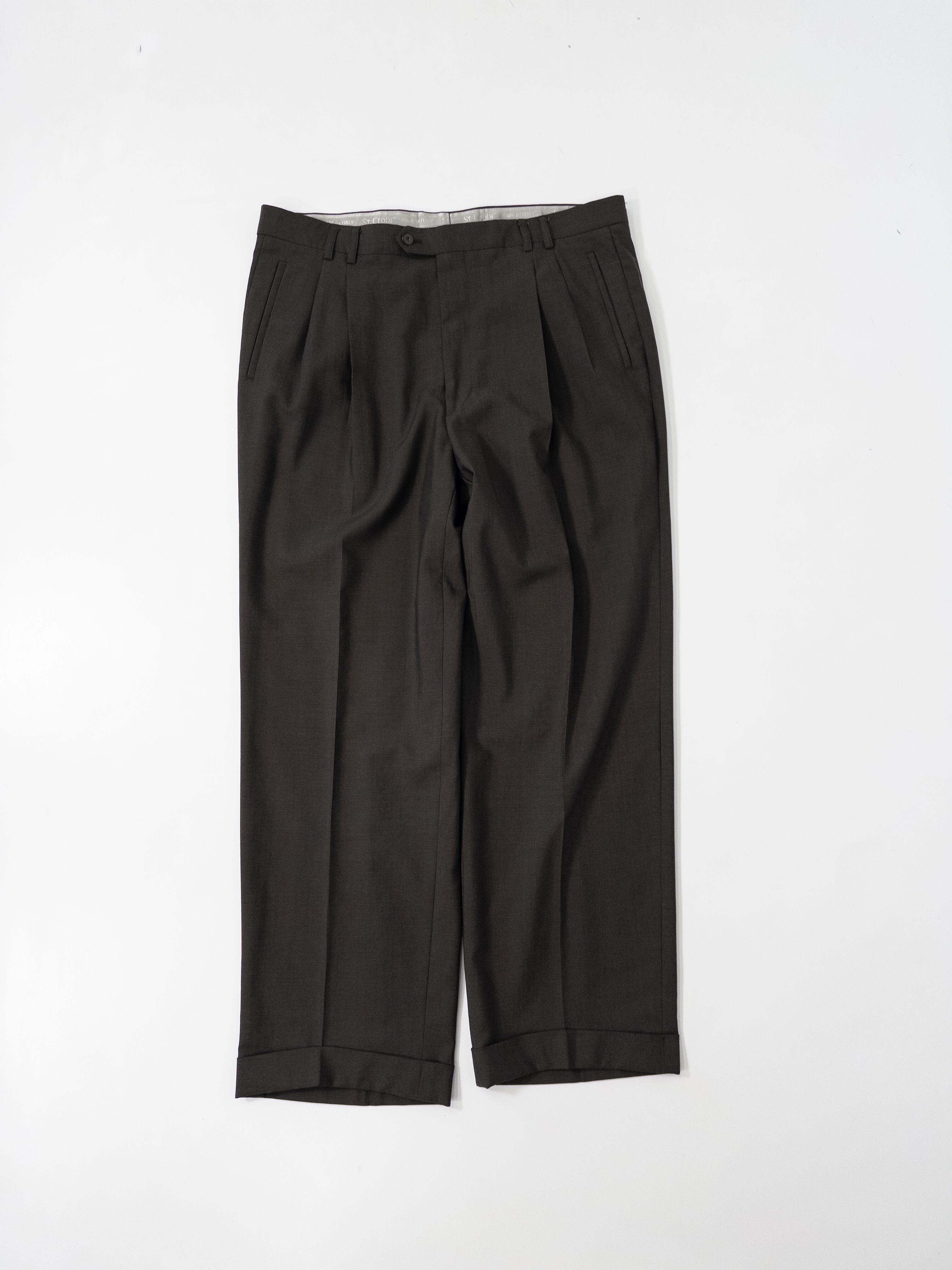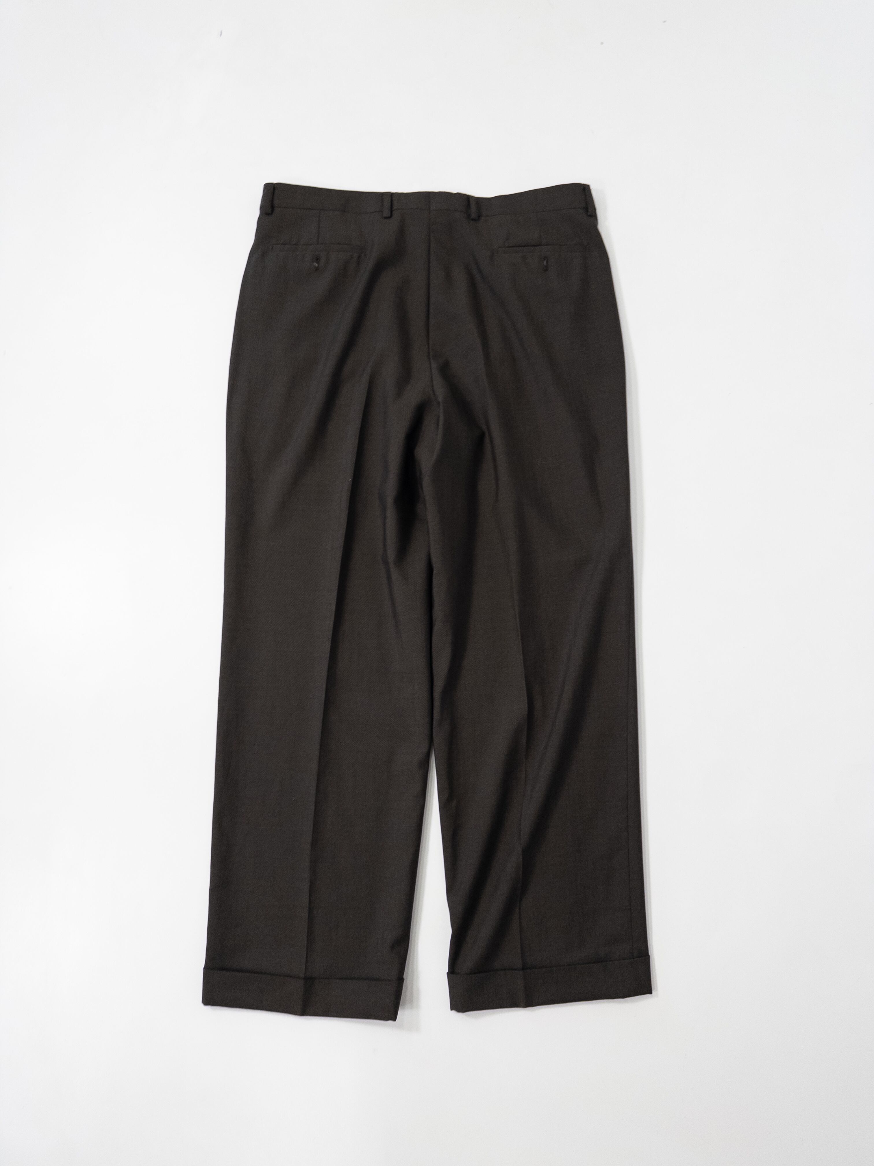高級ニットやスラックスを手がけるアメリカ発のラグジュアリーブランド〈St. Croix(セントクロワ)〉。この一本は、同ブランドが誇るイタリア製ライン。イタリアメイドならではの洗練されたシルエットと仕立ての良さが光り、2タックのクラシックな構成ながら、どこか現代的なバランス。内側には“ST. CROIX ITALY”の織りネームが入っており、丁寧なつくりを裏付けています。高級テーラリングと日常性の間を上品に往復する、クローゼットに一本あると嬉しいスラックスです。