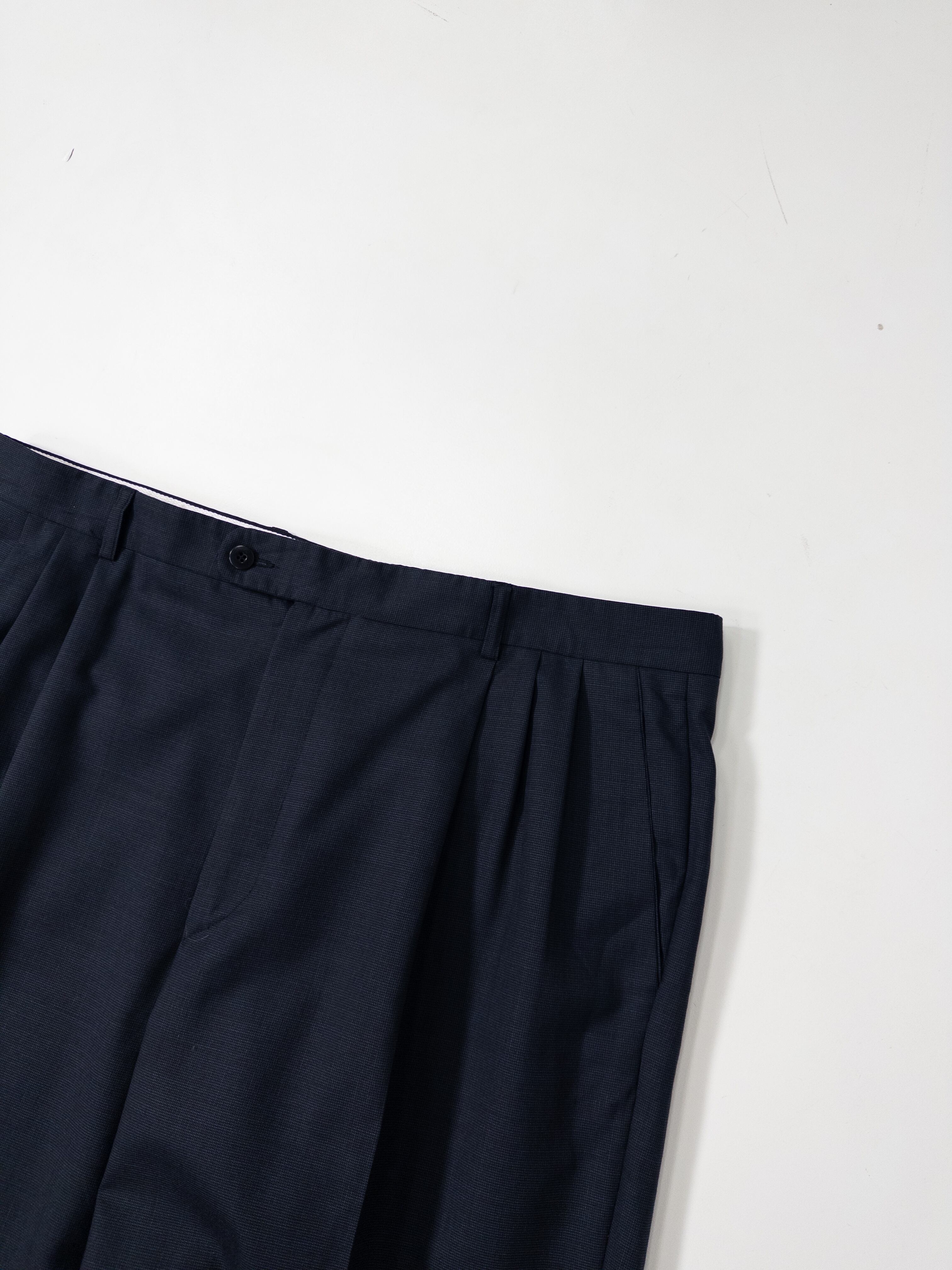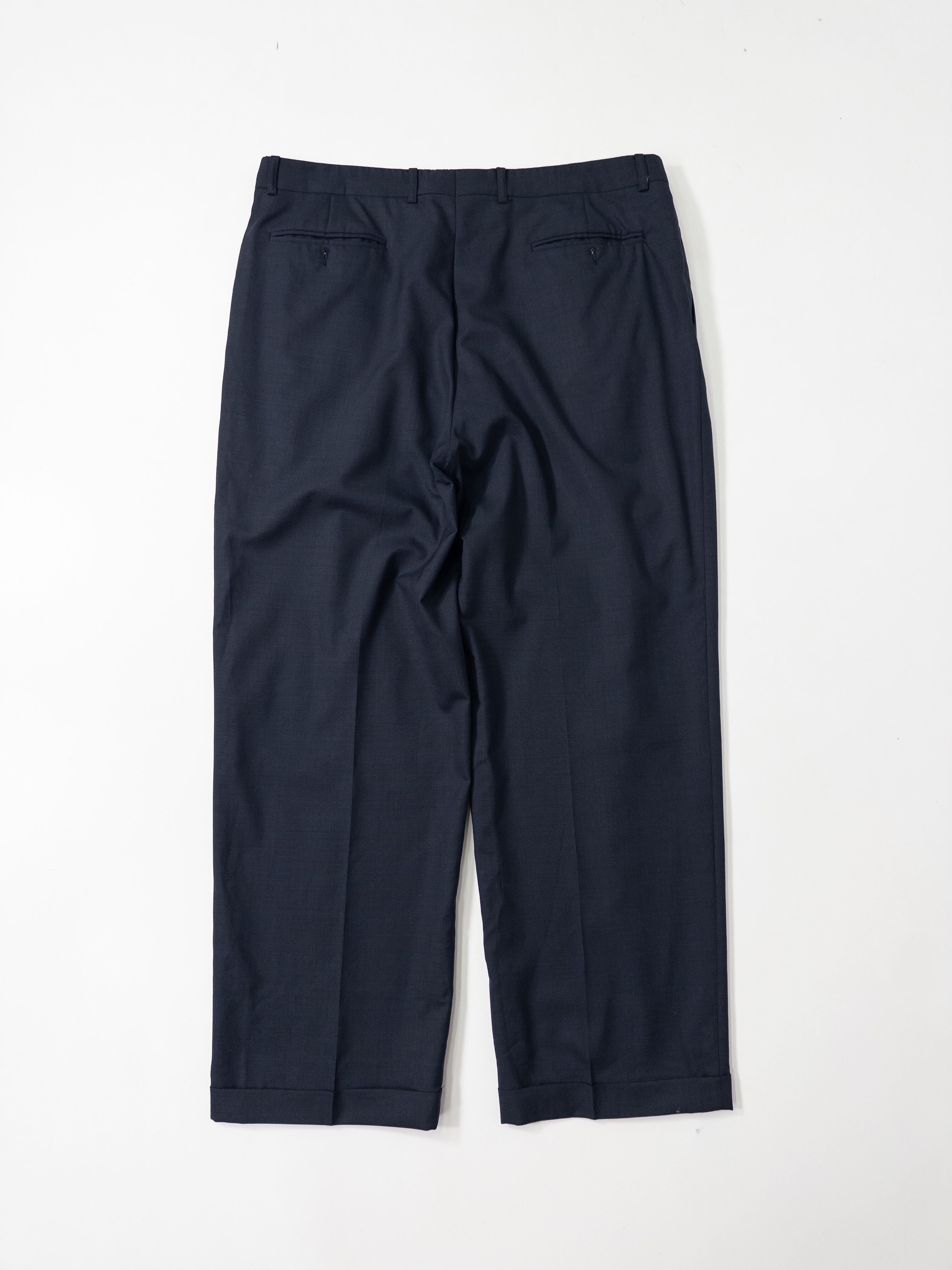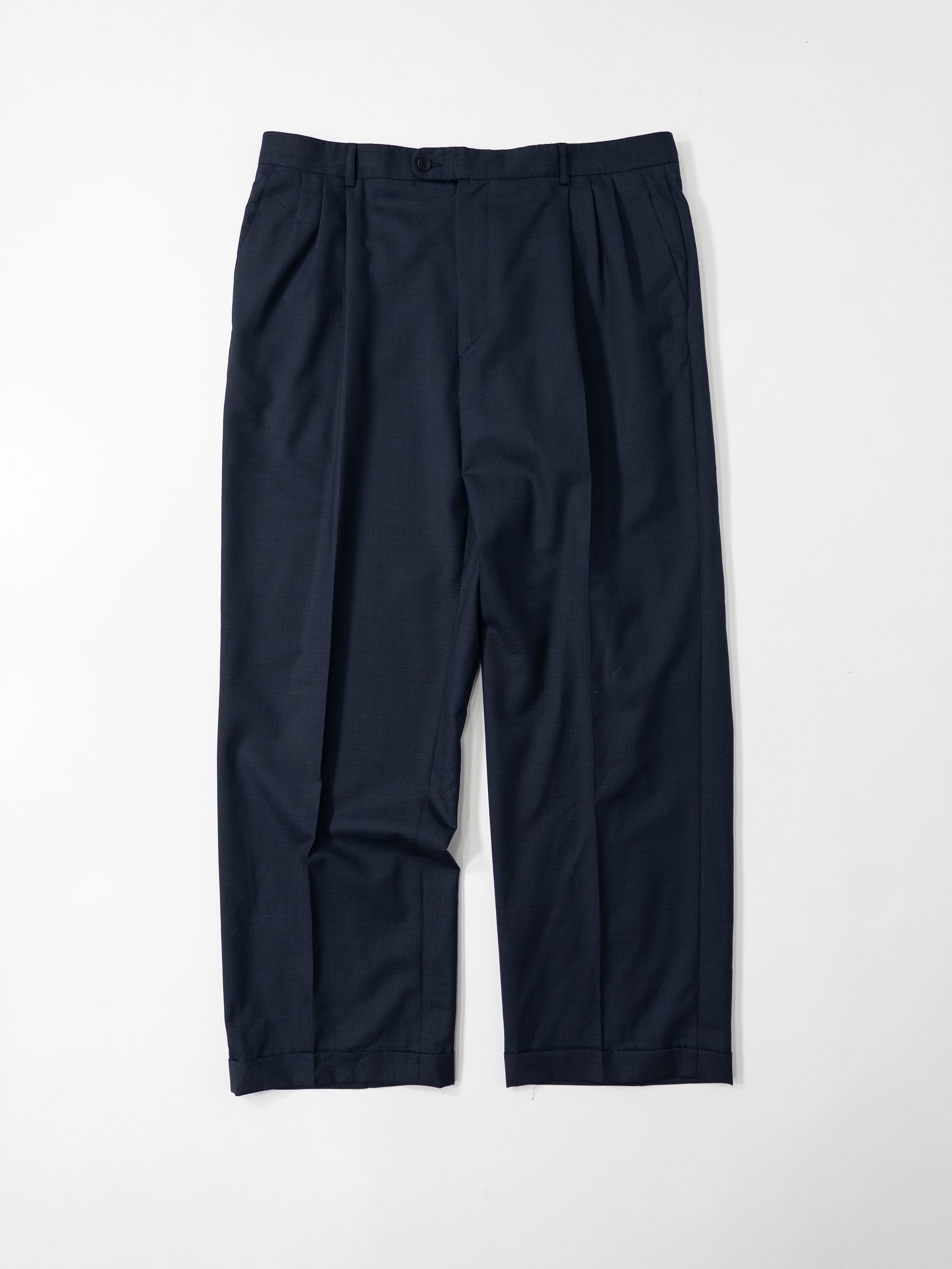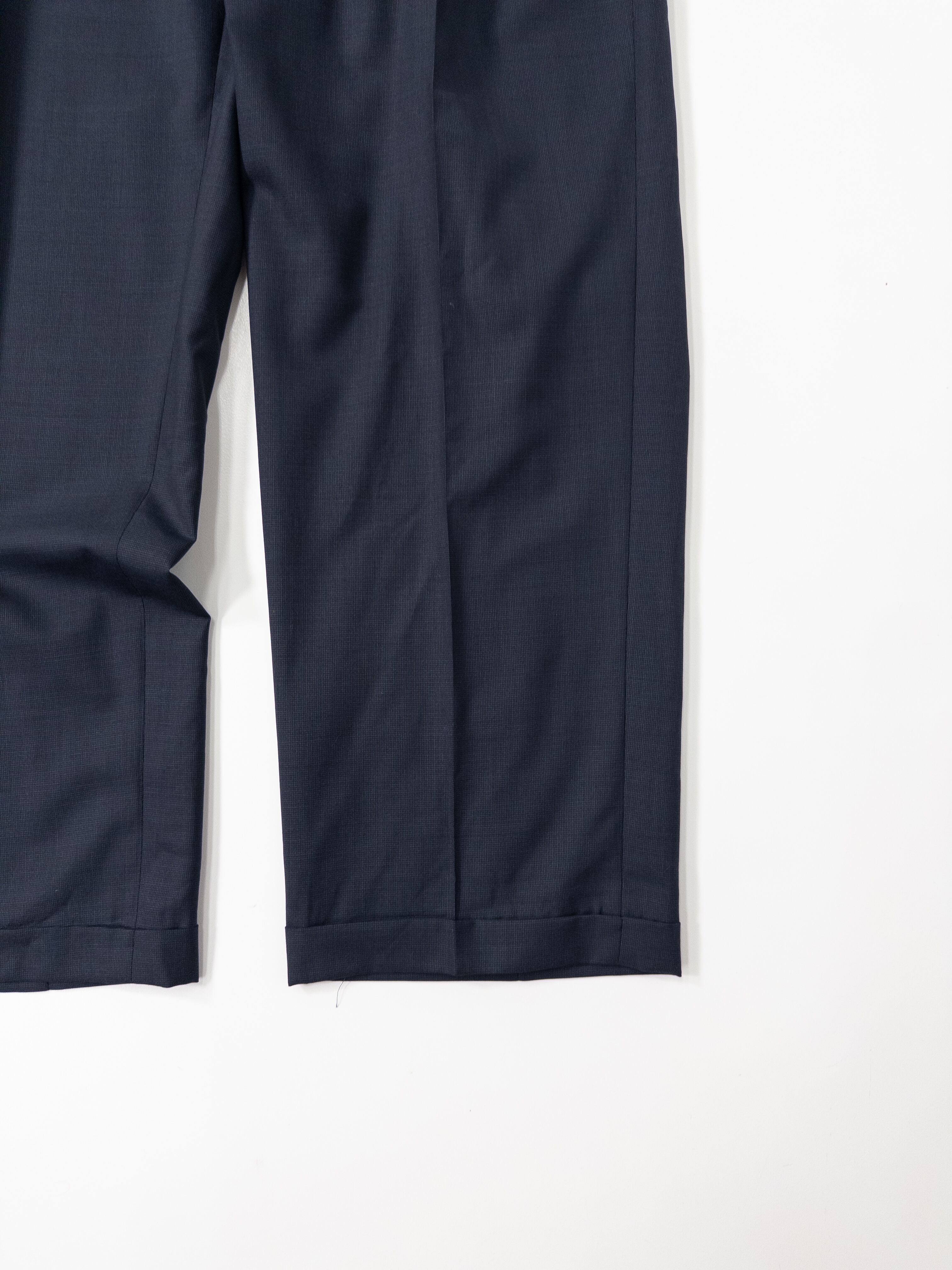 イタリアの高級パンツ専業ブランド「Zanella」より、上位ラインにあたるPlatinumレーベルの一本。ミニマルなダークネイビーに、深めの2インタック(ツータック)仕様。美しいドレープと立体感を生むウール100%の上質生地は、まさにイタリア仕立ての真骨頂。裏地には滑らかなアセテート×キュプラを使用し、着心地も極上です。