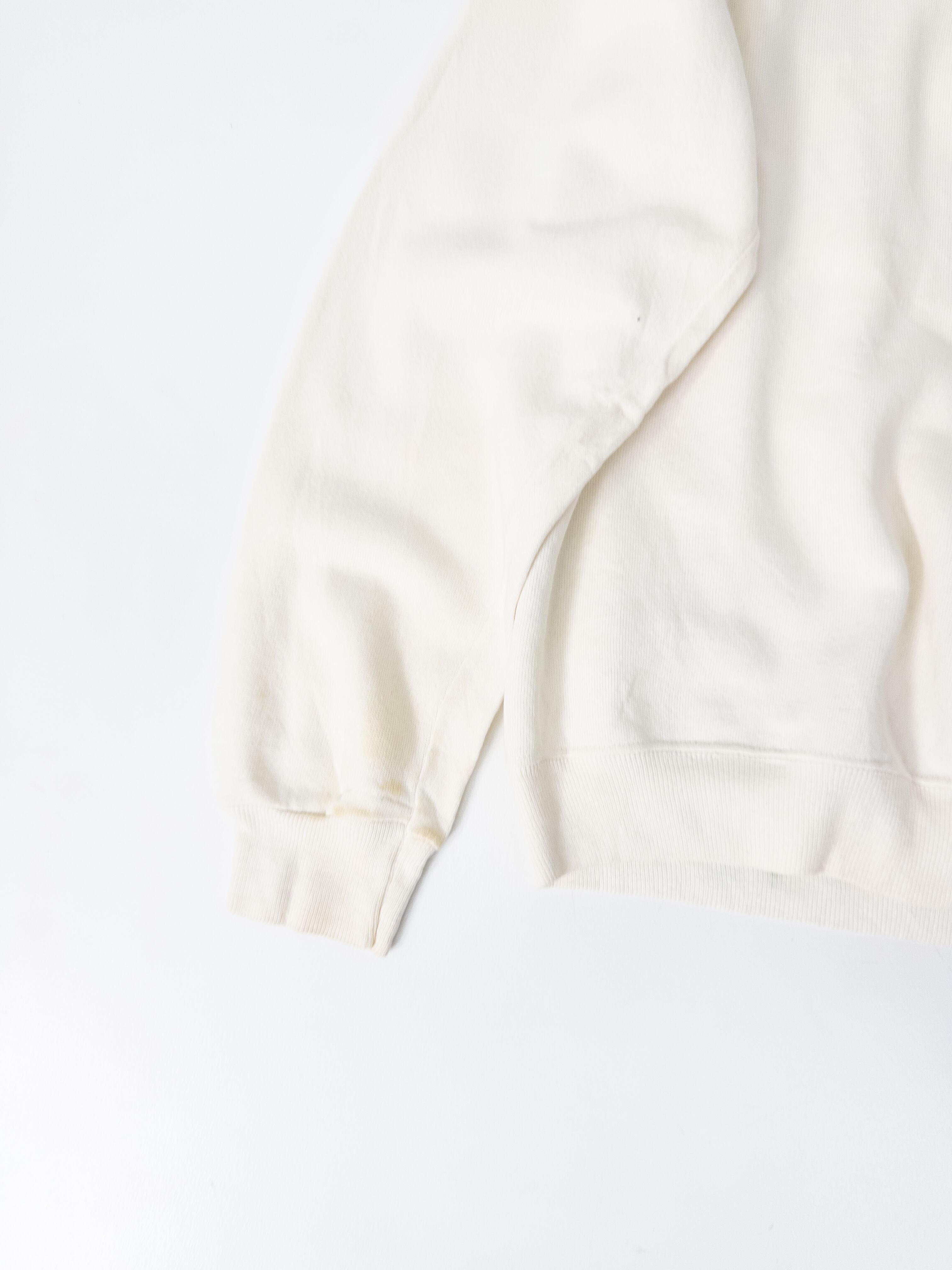 ボディはMADE IN USAのオールドHanes、50%コットン × 50%アクリルの柔らかくて軽やかな裏起毛スウェット。