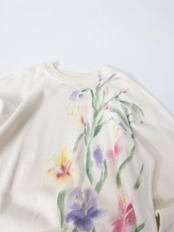 淡いアイボリーに優しく咲く花々が目を惹く、ハンドペイントの一点もの。