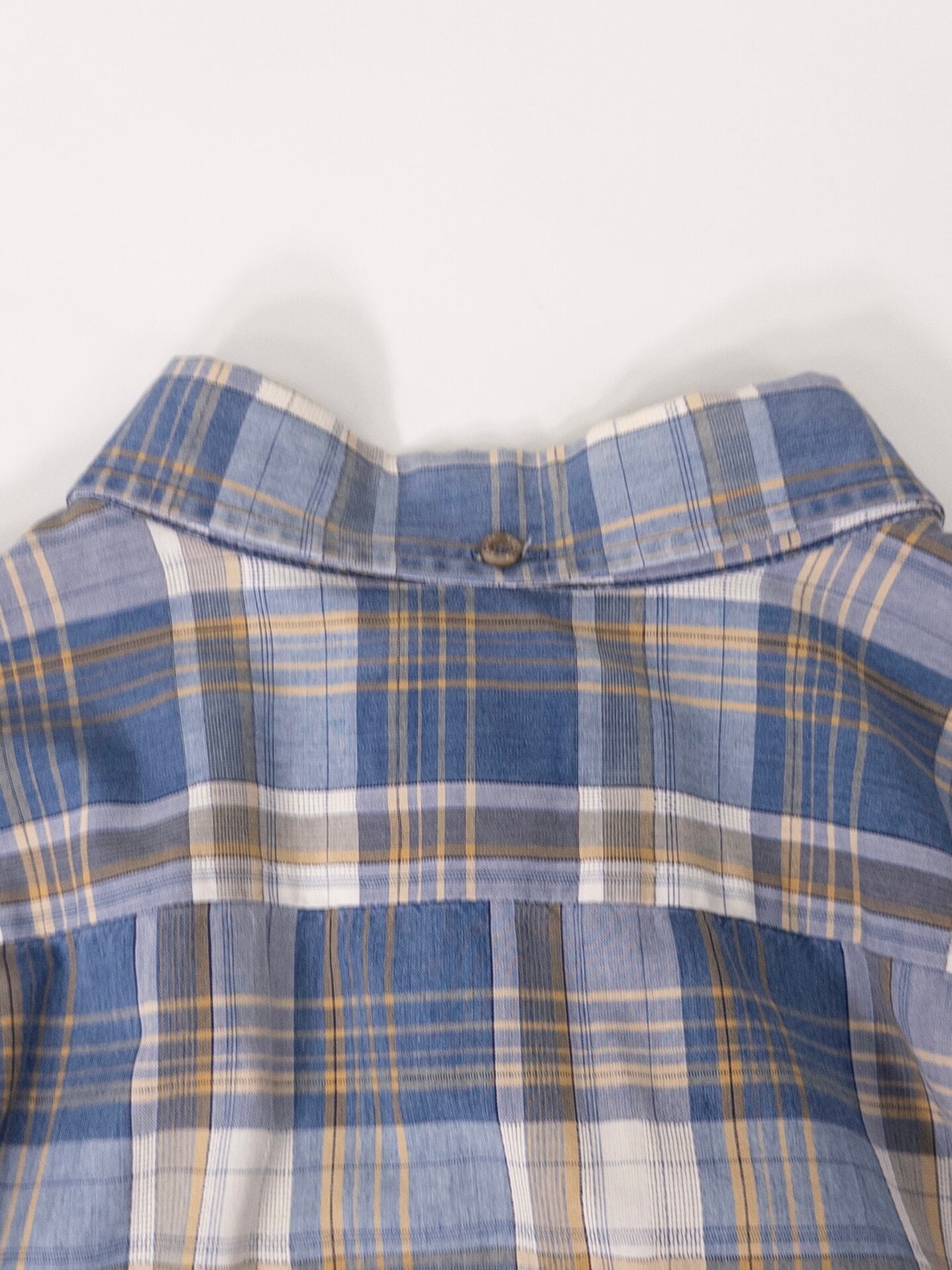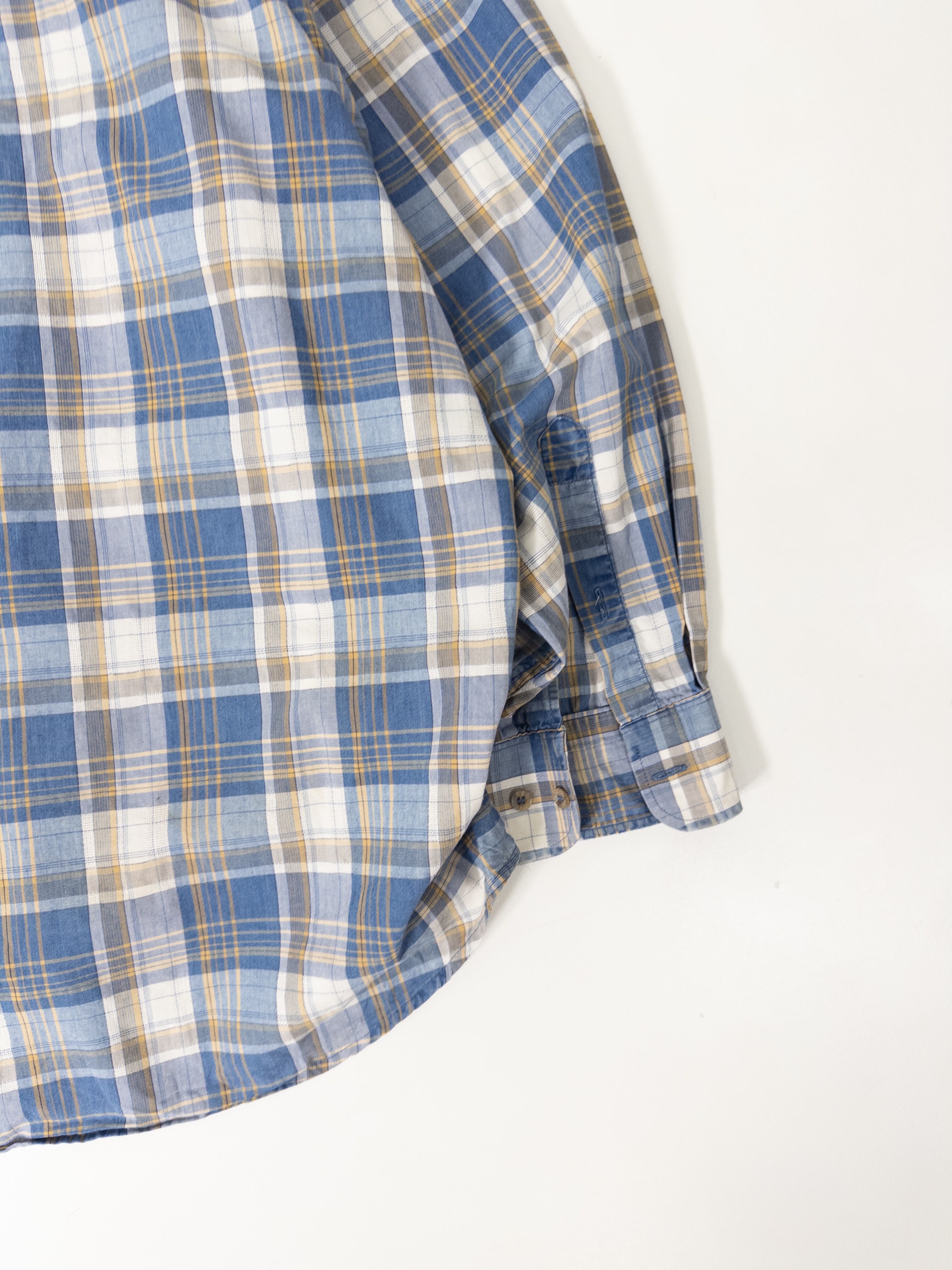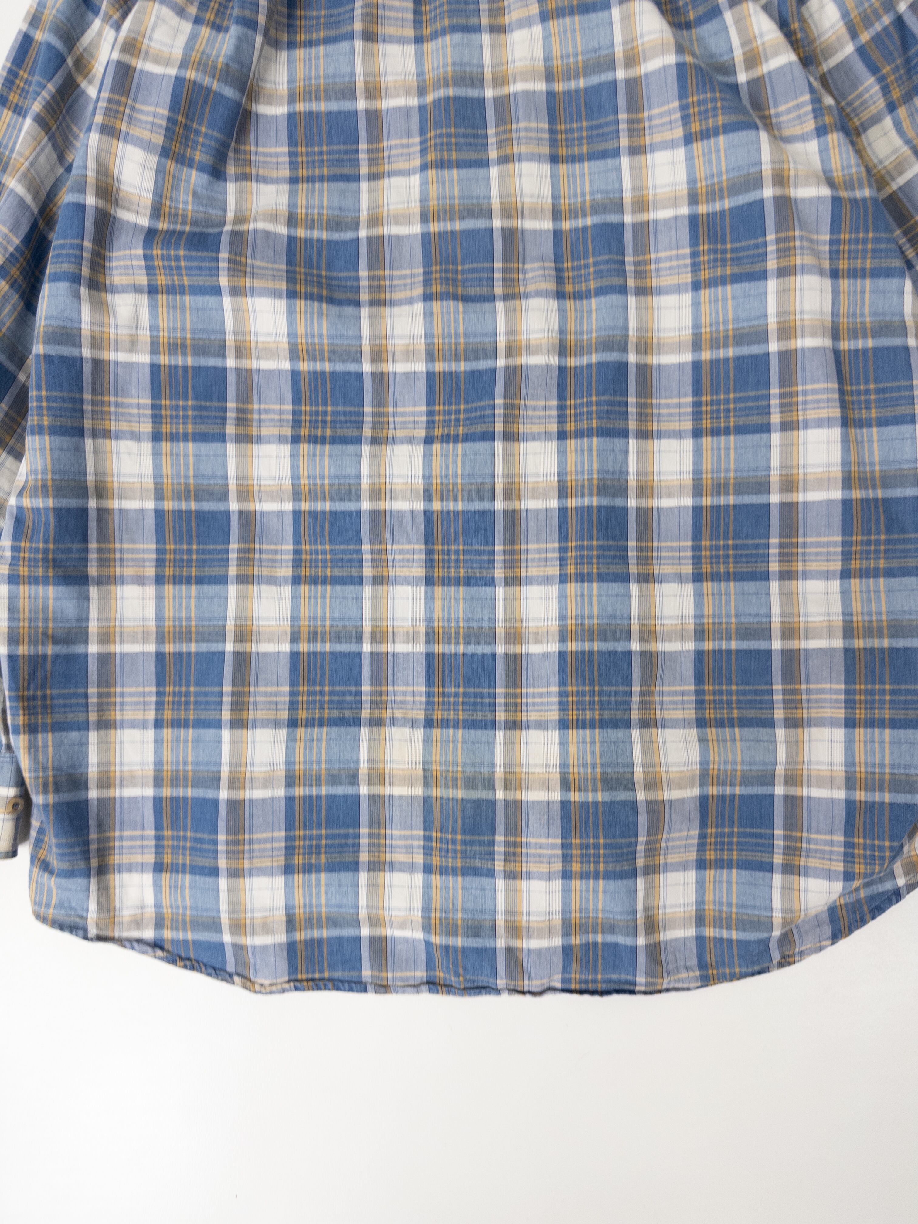 クラシックなチェック柄を、ブルーを基調にベージュやホワイトが柔らかく引き締めた配色バランスが絶妙な一枚。