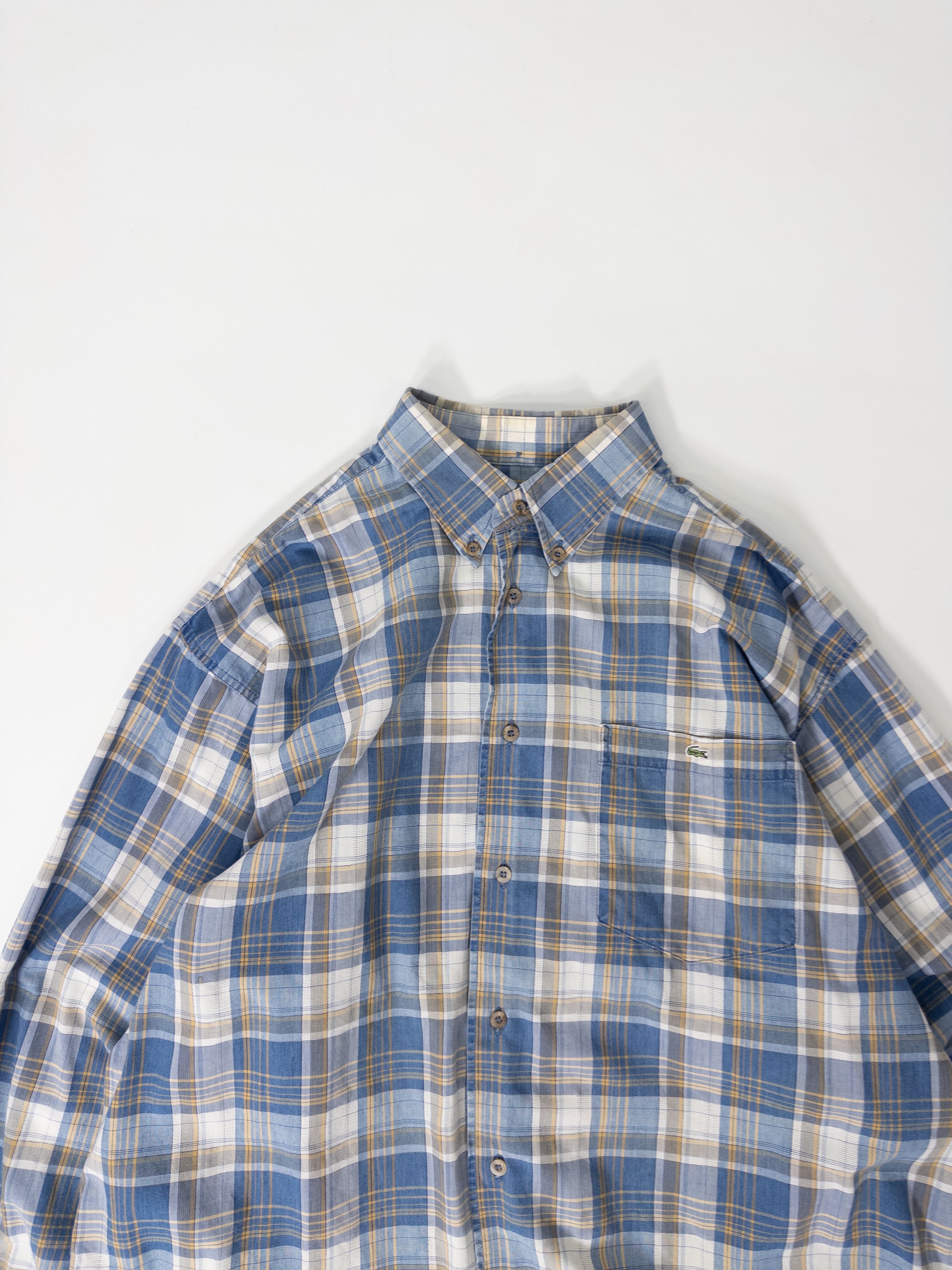 ラコステらしい品のあるボタンダウン仕様に、胸元にはおなじみのワニロゴ刺繍入り。