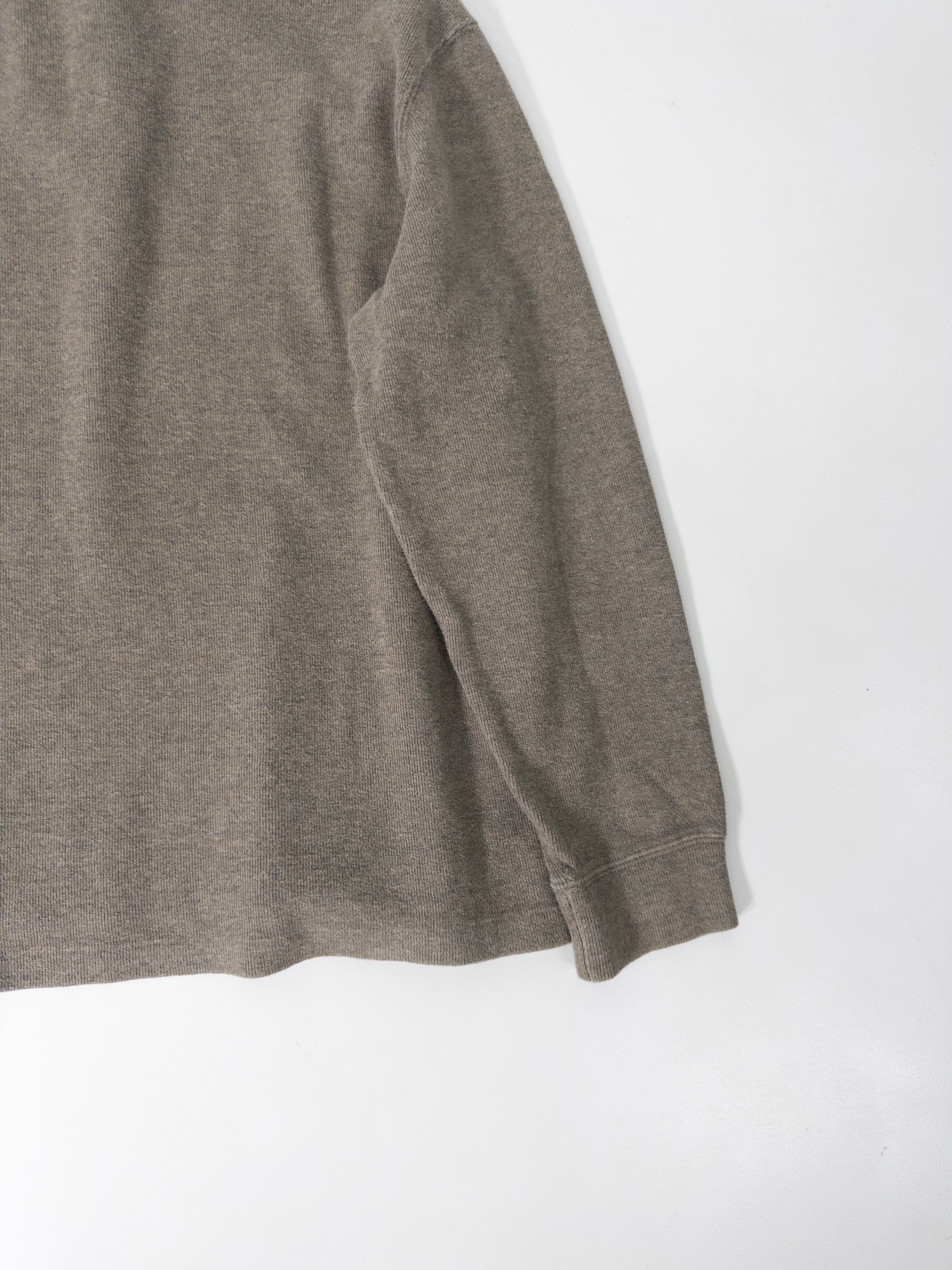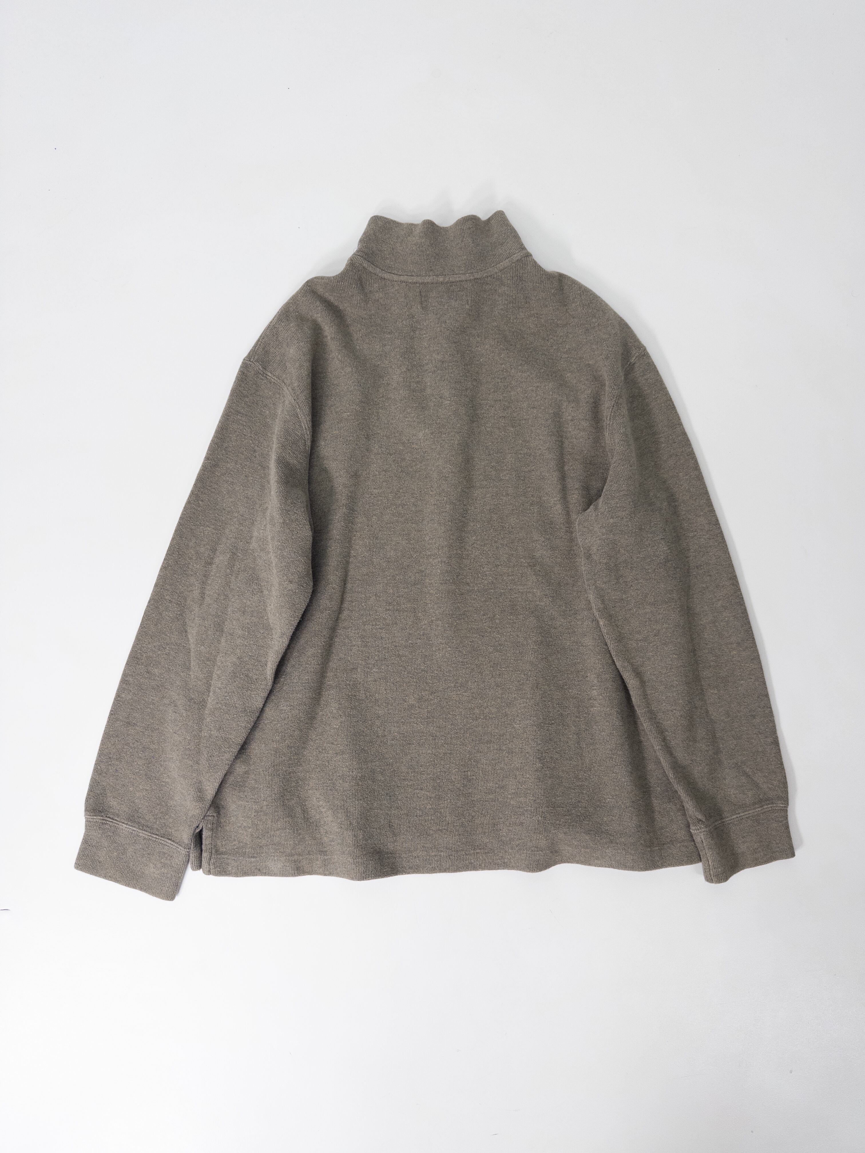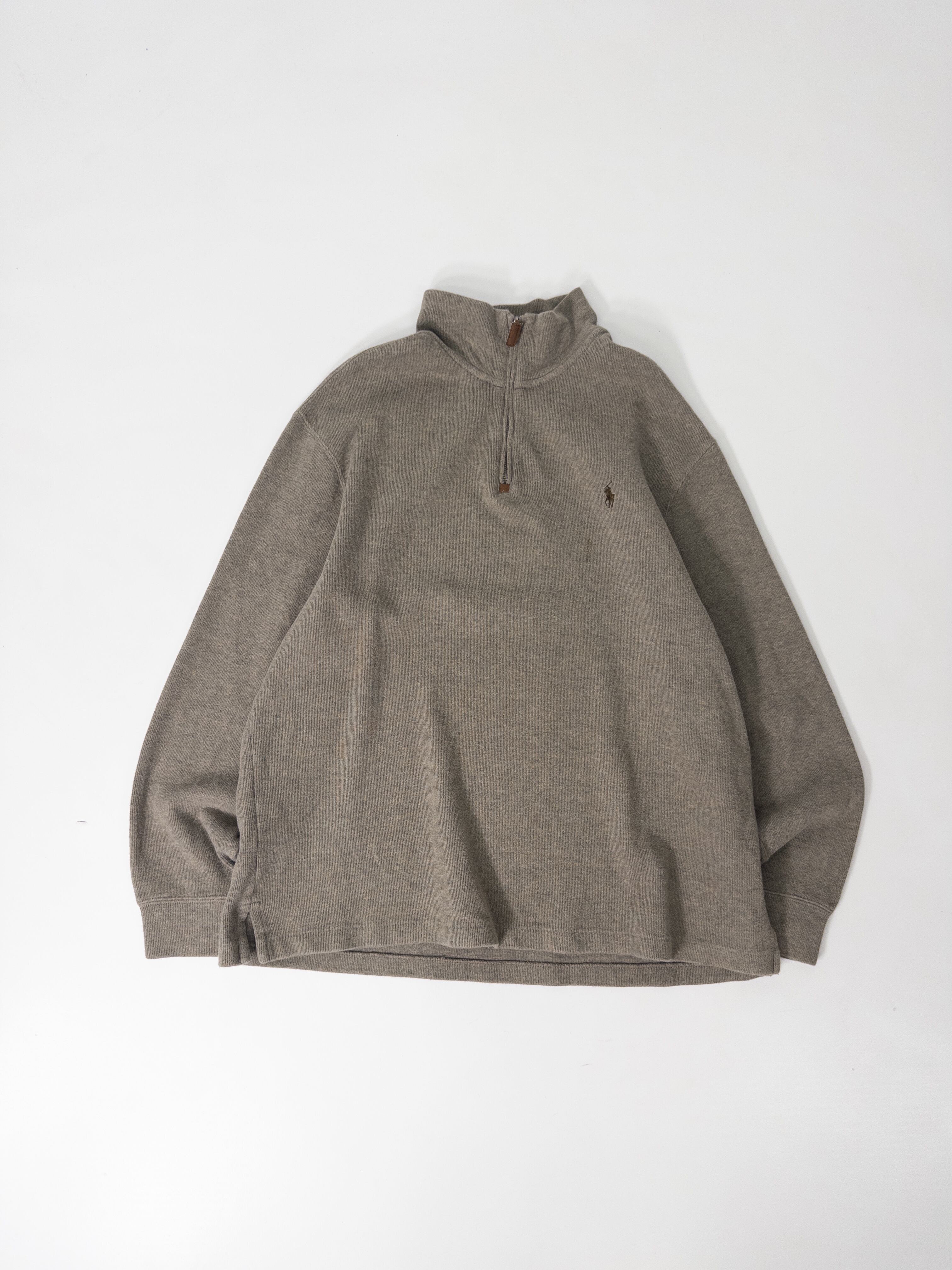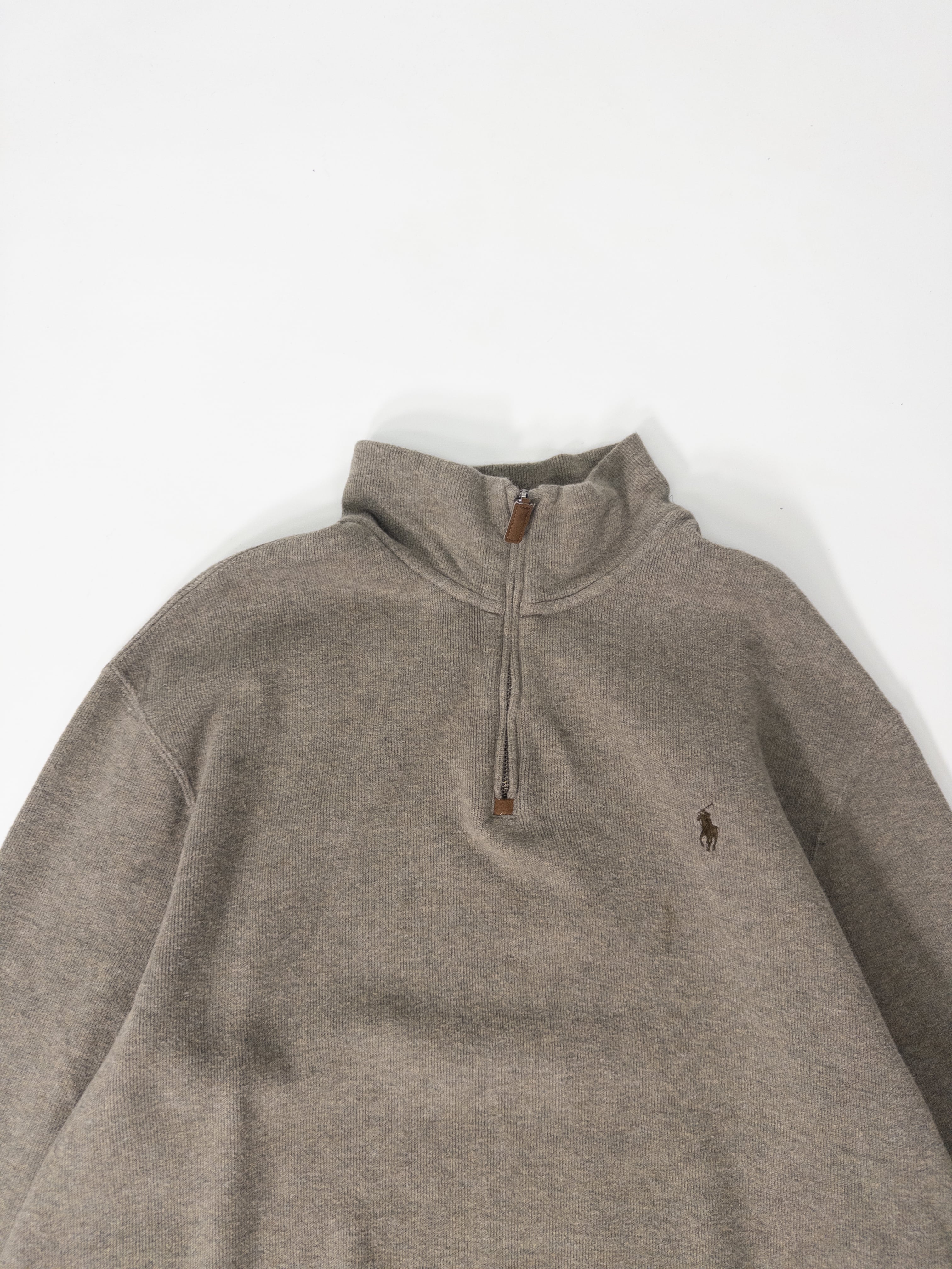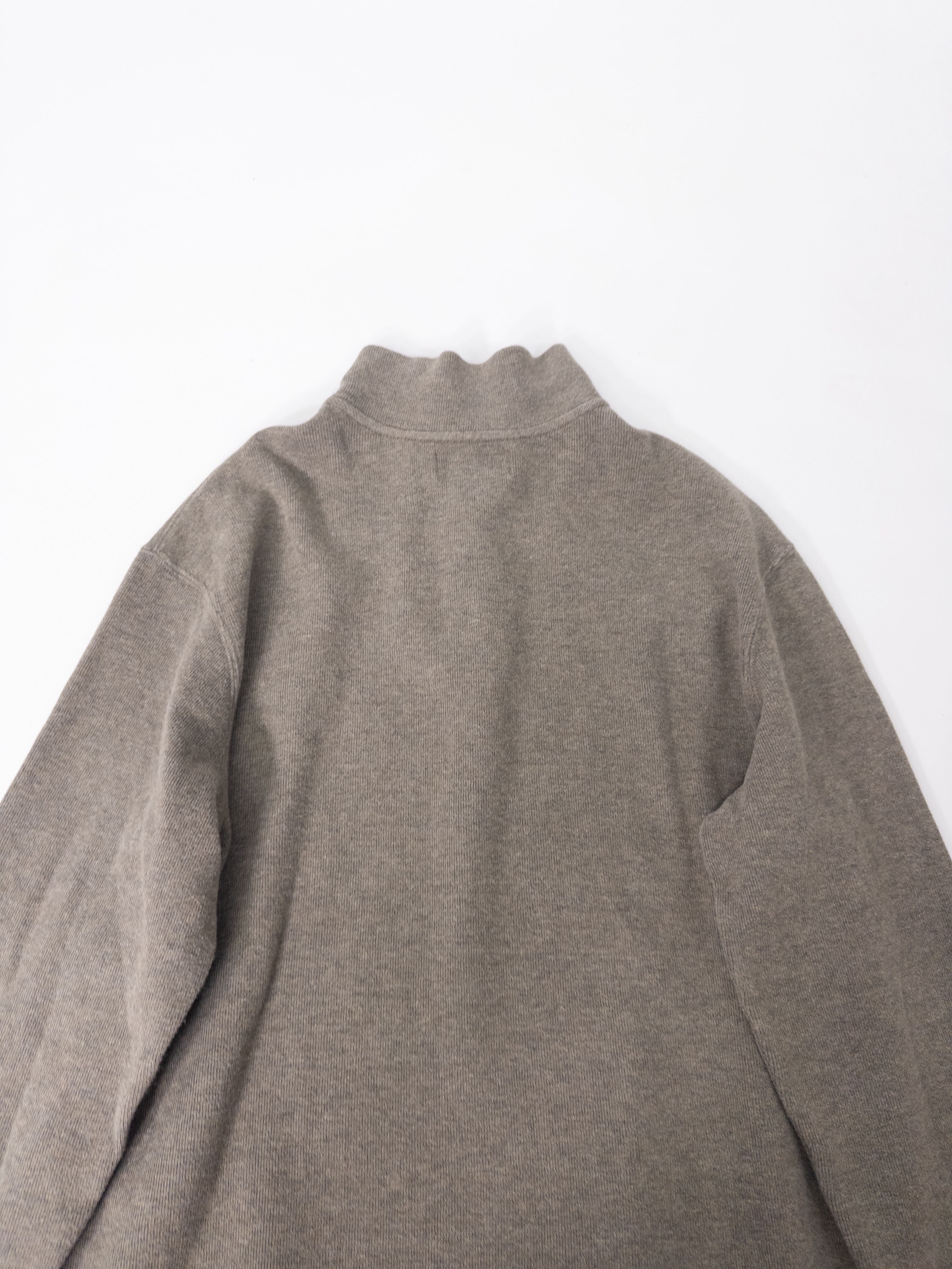 一見ベーシックだけど、レザープル付きの1/4ジップやリブのテンション、サイドスリットなど、細かな作り込みにラルフらしい品の良さが光る一着。