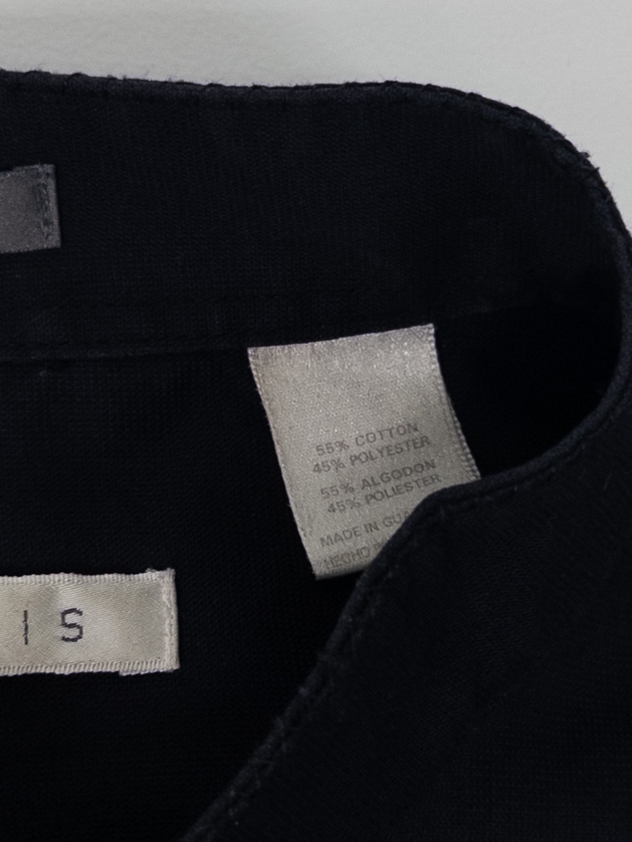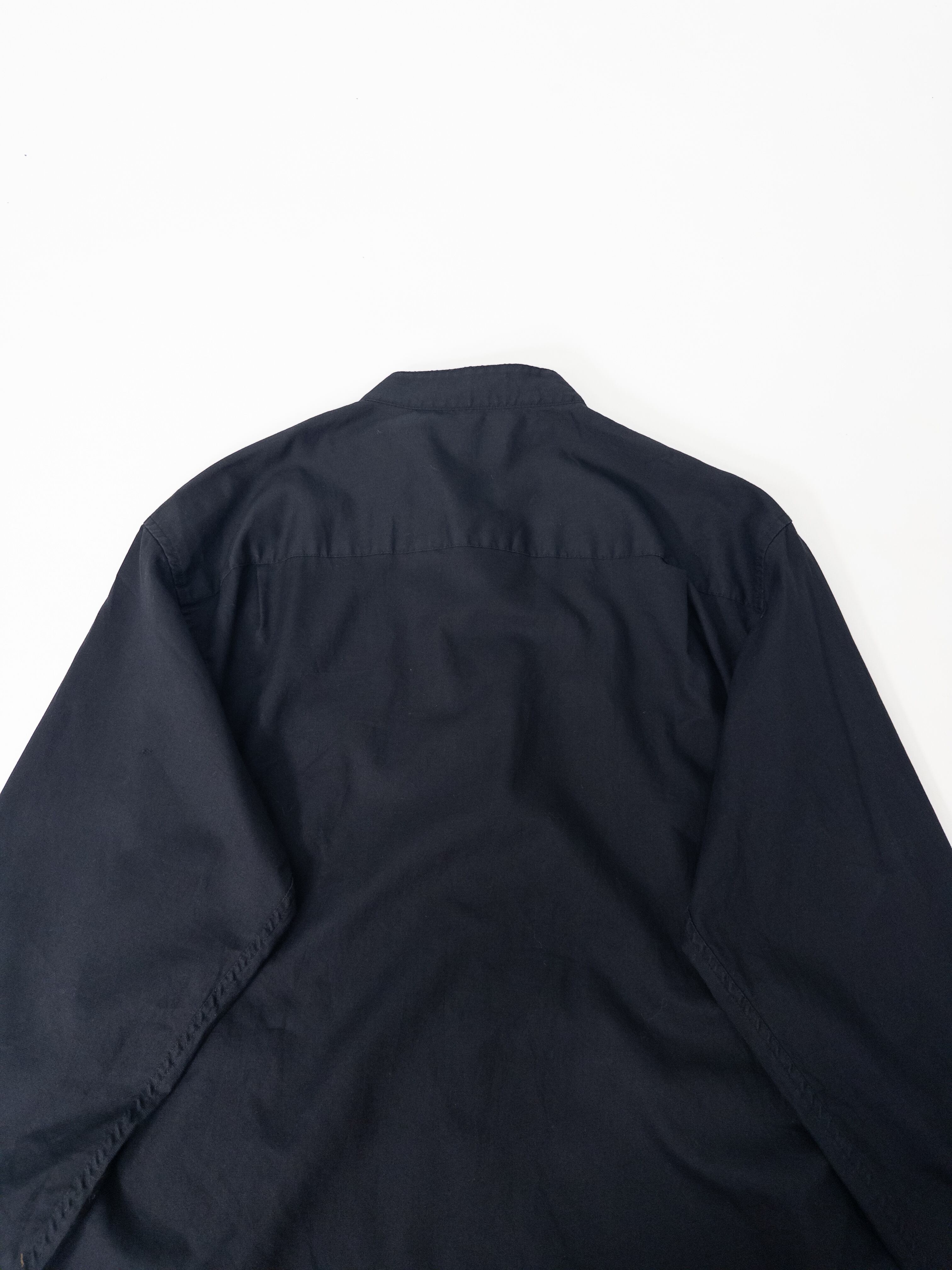 襟はスタンドカラー仕様。首元をスッキリ見せながら、ジャケットやカーディガンとも相性が良く、都会的な抜け感を演出できます。