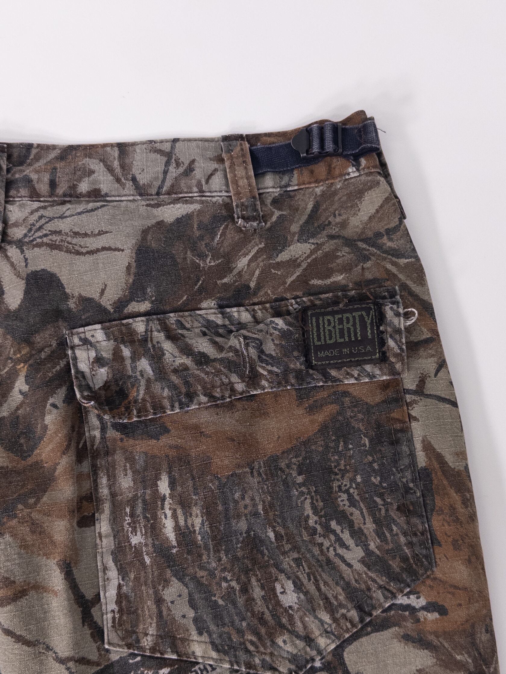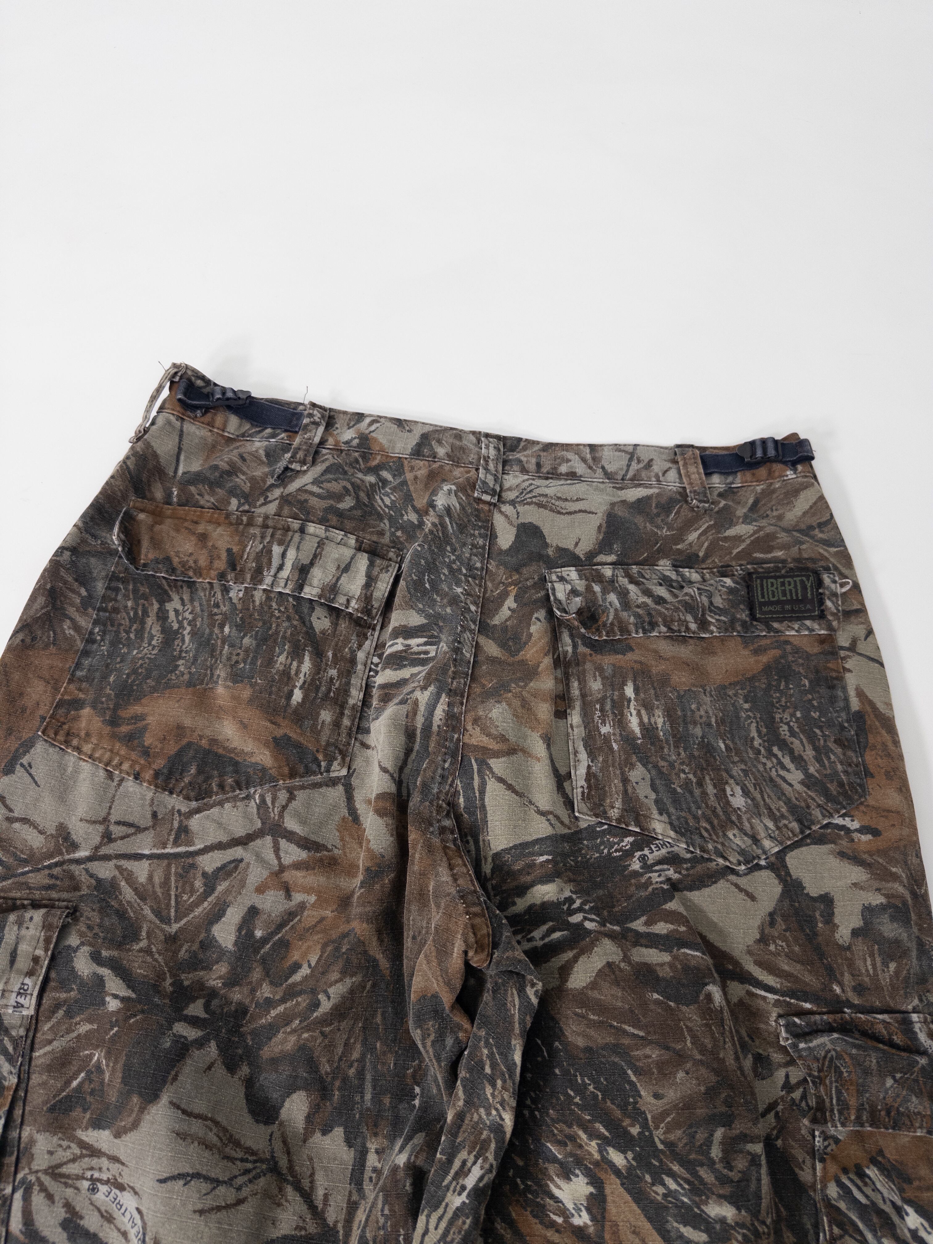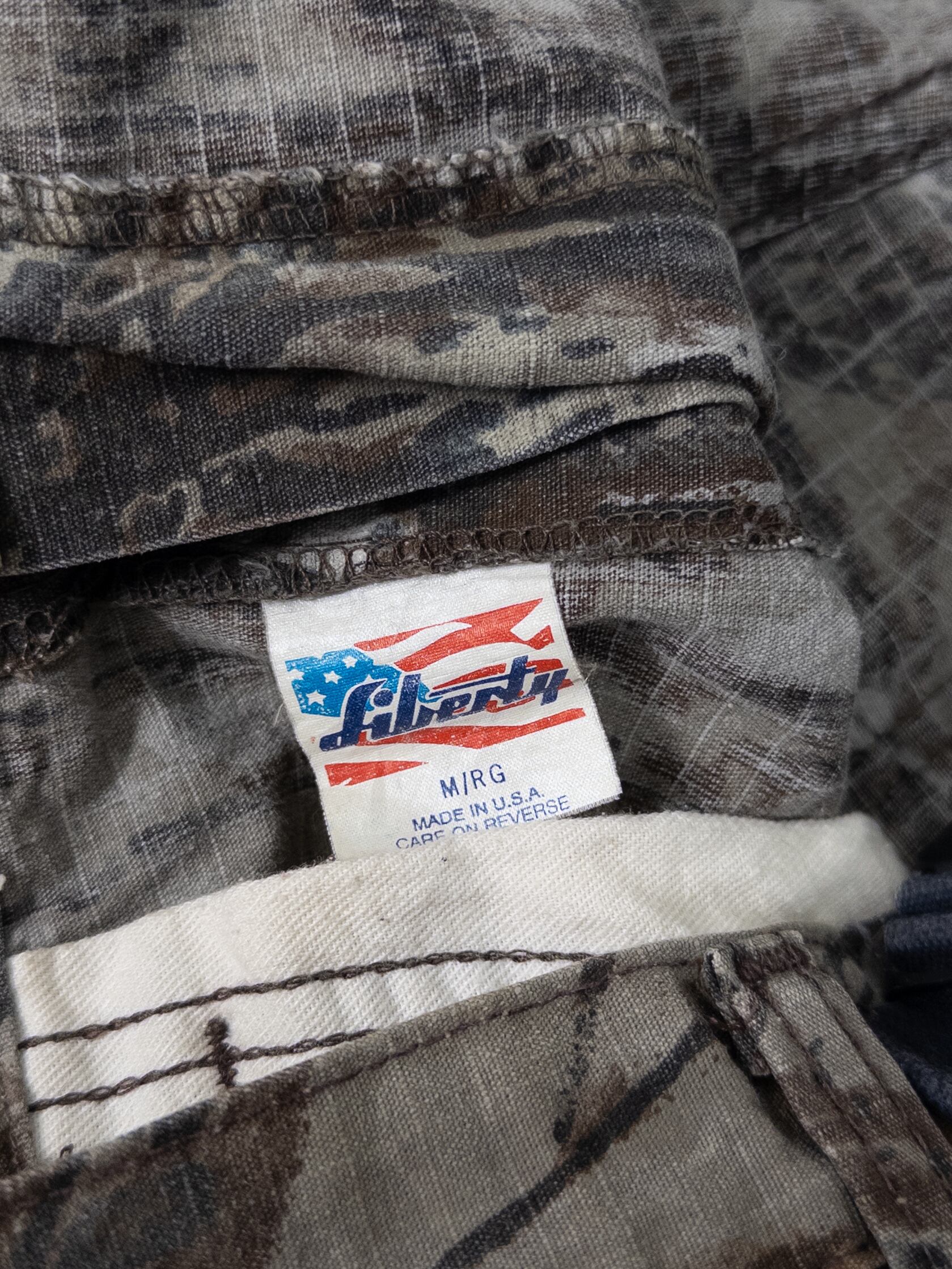 アメリカのワークブランド「Liberty」のリアルツリーカモパンツ。100%コットンのリップストップ生地裾までまっすぐ落ちるストレートシルエットに、サイドポケットやバックル仕様などタクティカルなディテールを搭載。Made in USAのタグ付きで、このあたりの時代らしいしっかりとした作り。