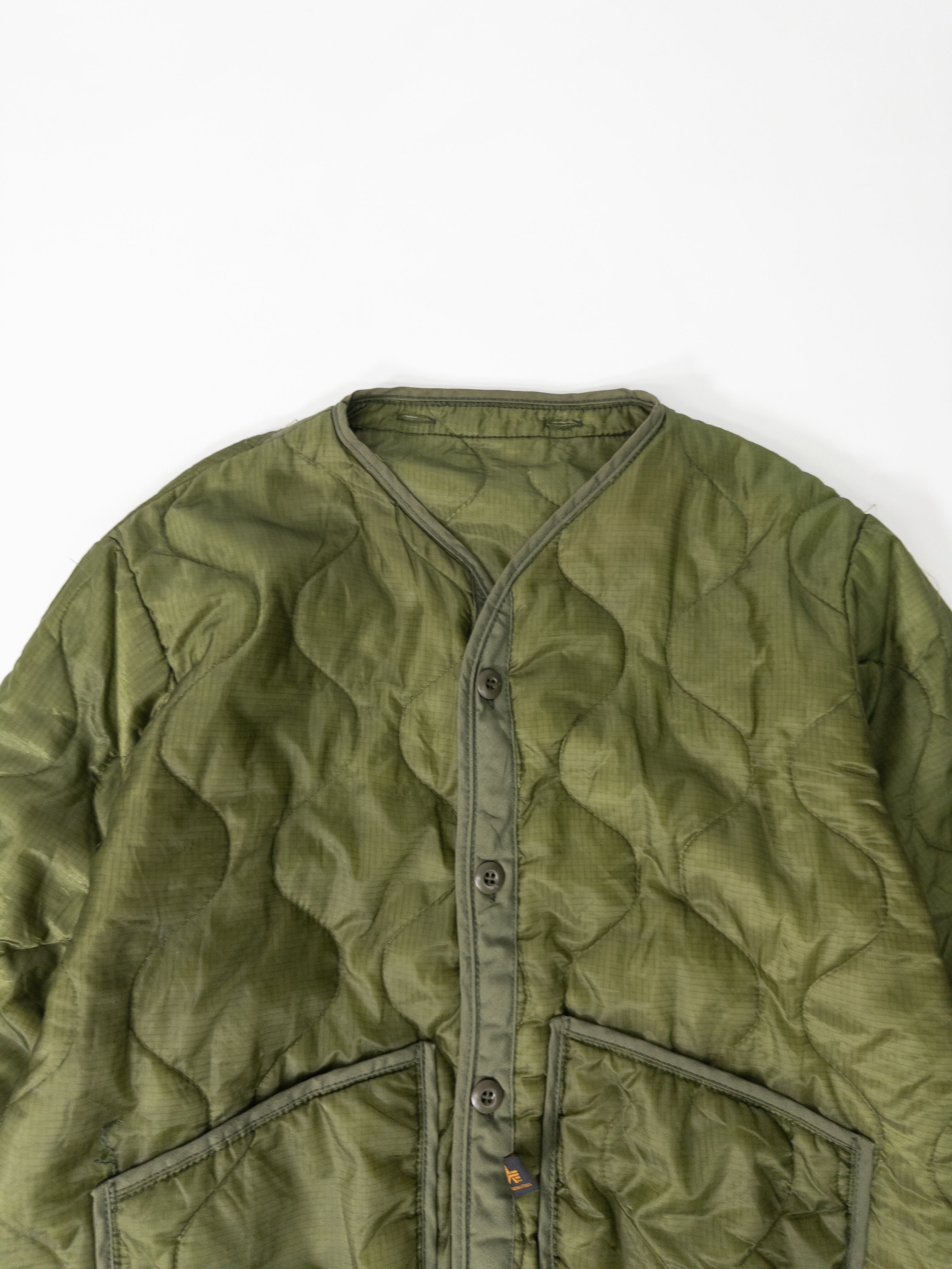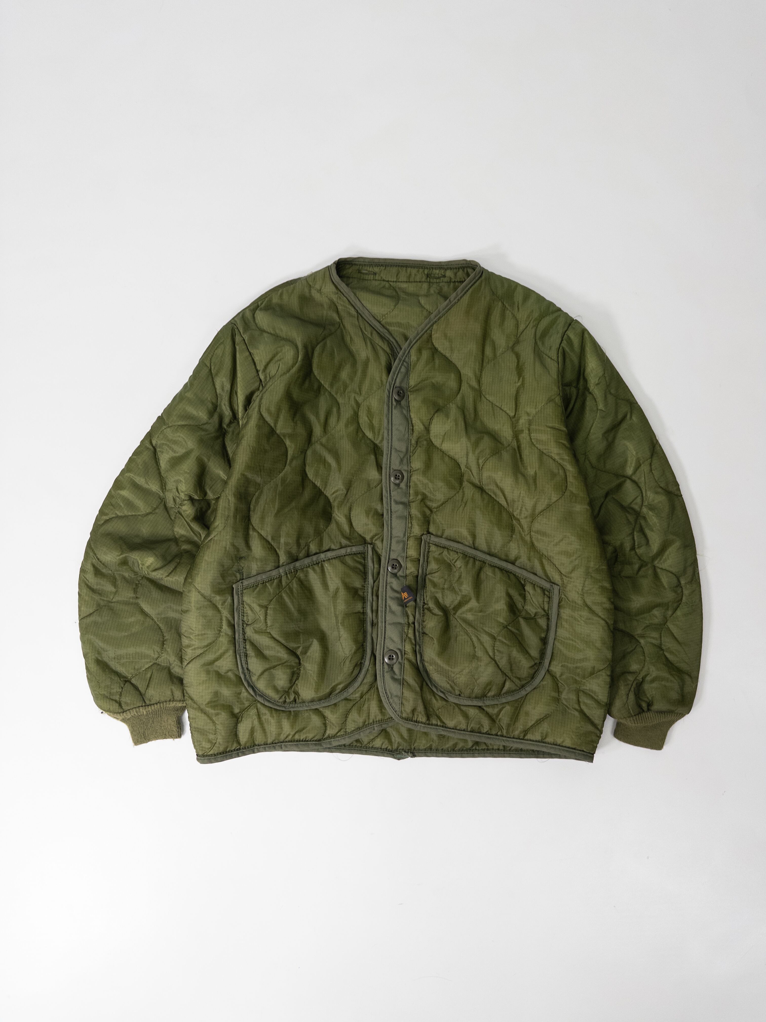 ミリタリーウェアの代名詞ともいえるAlpha Industriesの一着。元々は米軍フィールドジャケットのライナーとして作られたモデルですが、現在では単体での着用がスタイルとして確立されています。