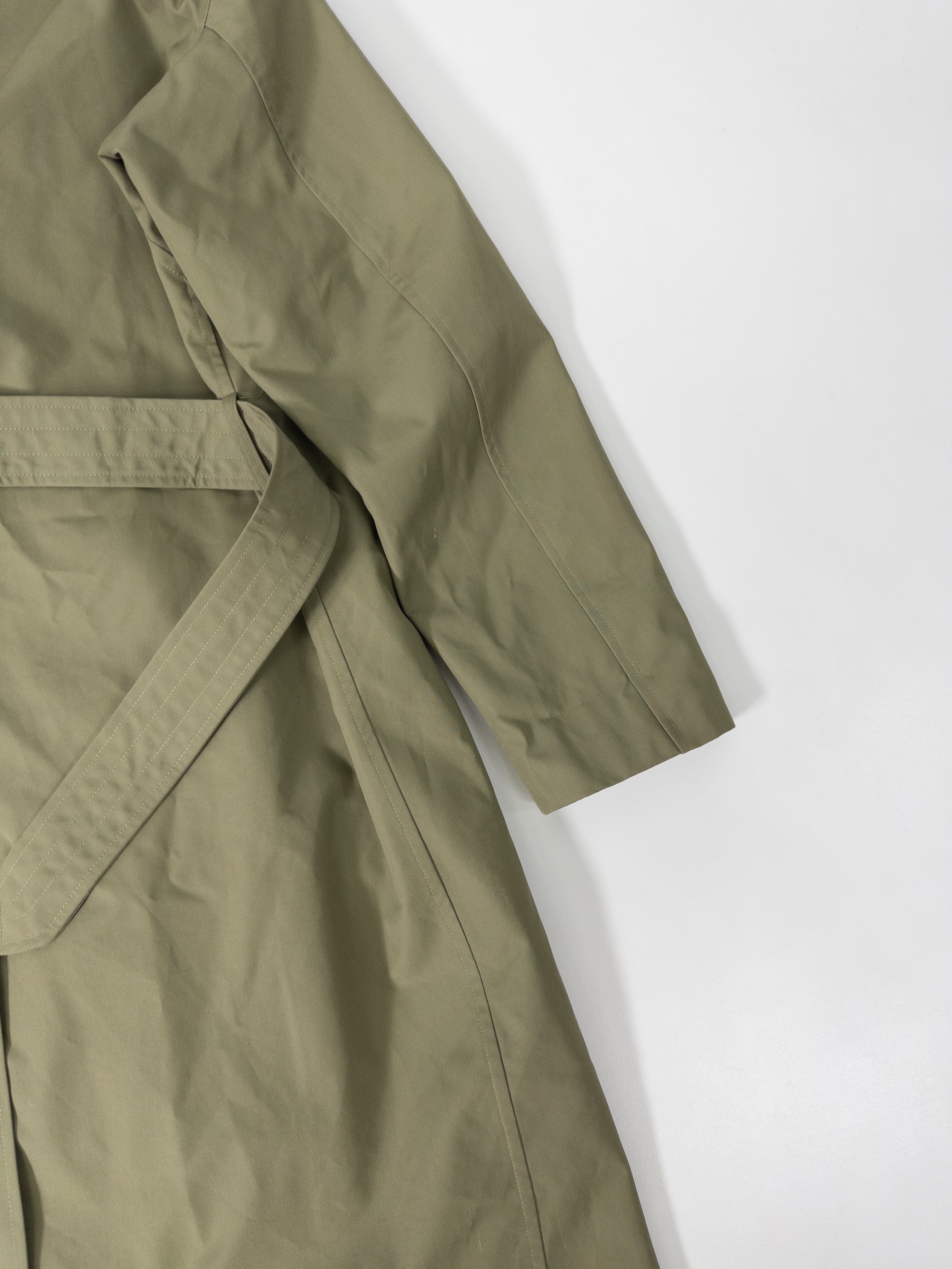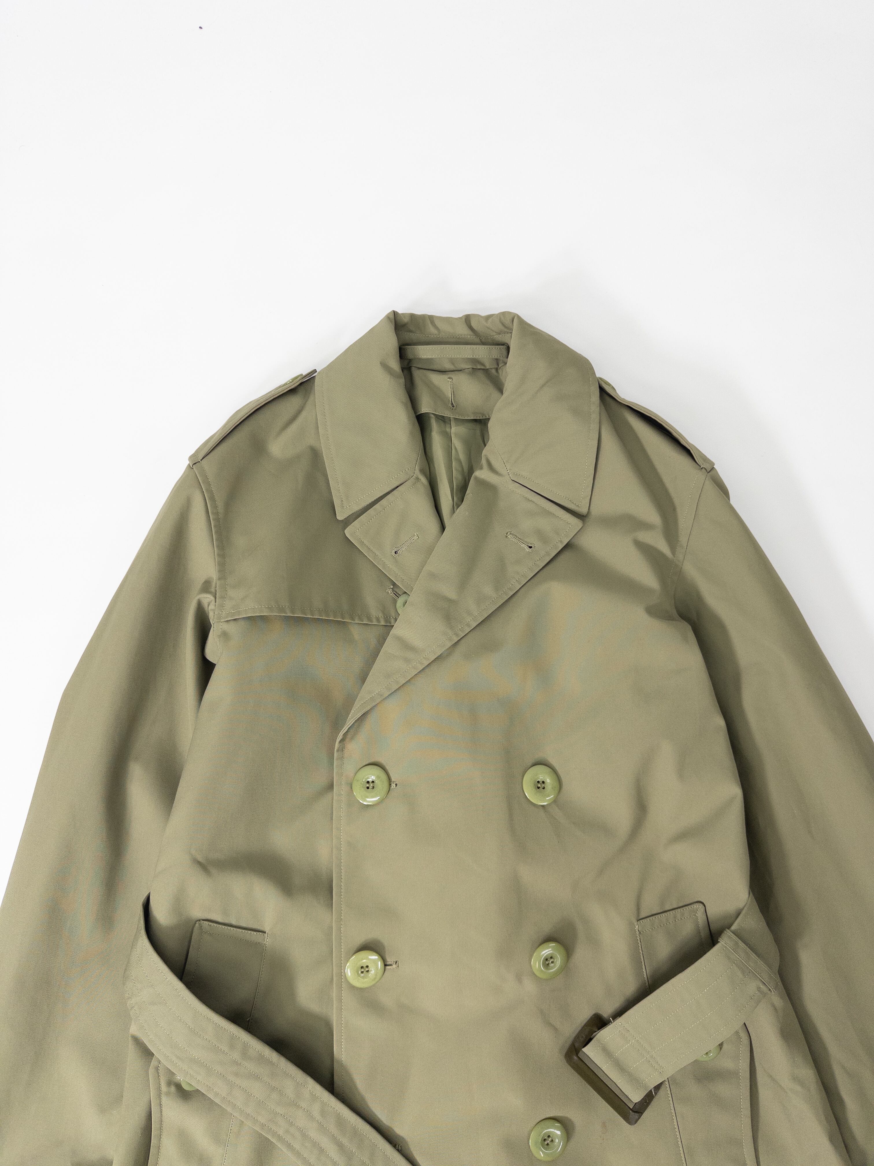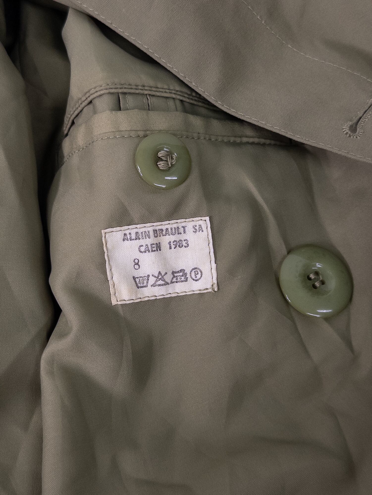 フランス軍特有の軽量ながらも高密度に織られたコットンギャバジンが使われており、耐久性と防風性を両立。年月を経てもくたりにくく、都会のスタイルにもすっと馴染む素材感です。