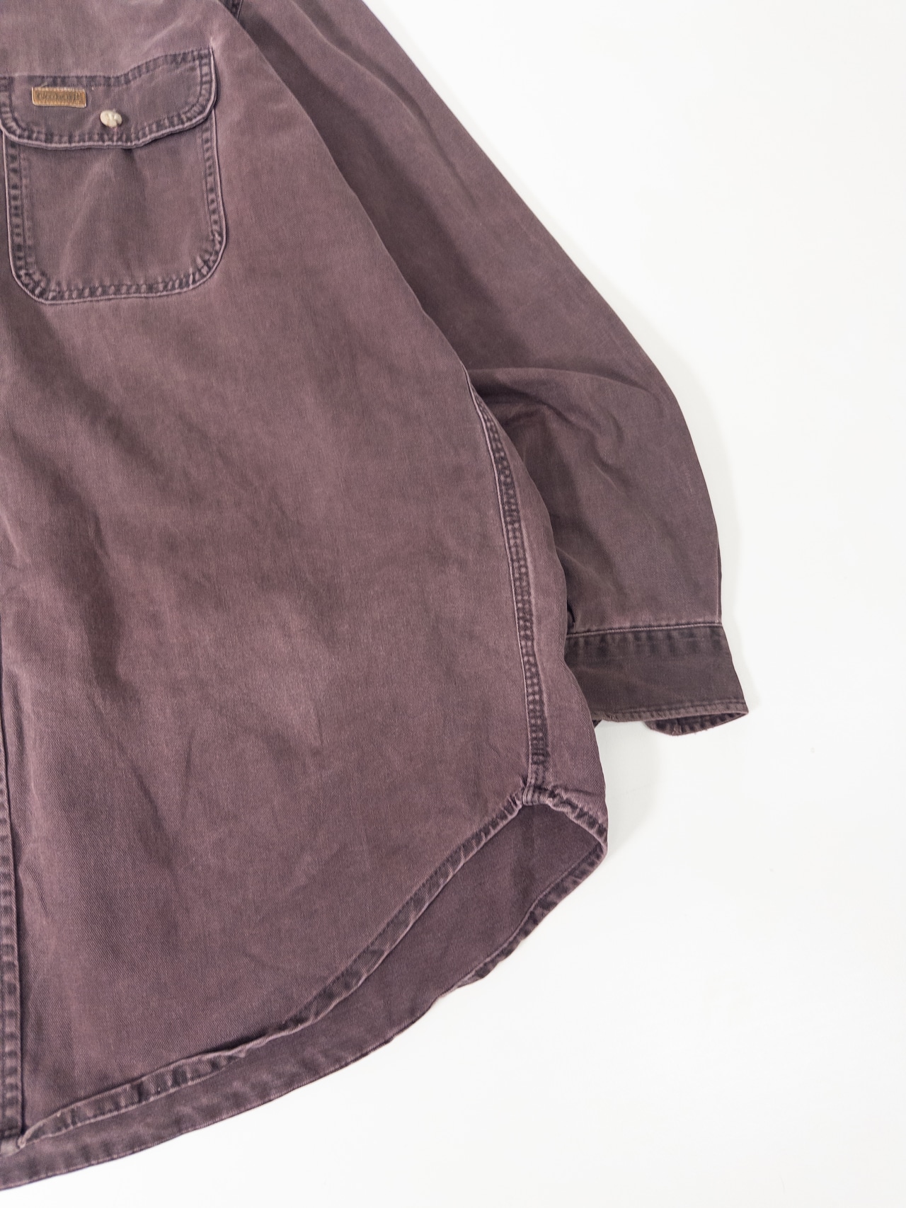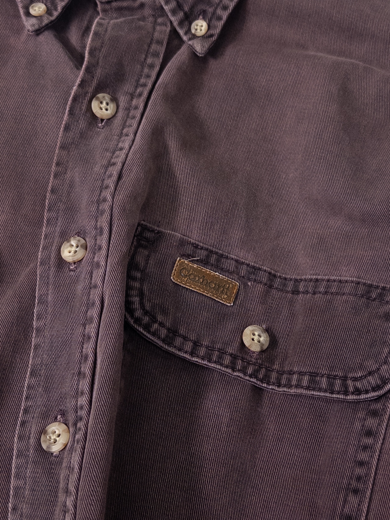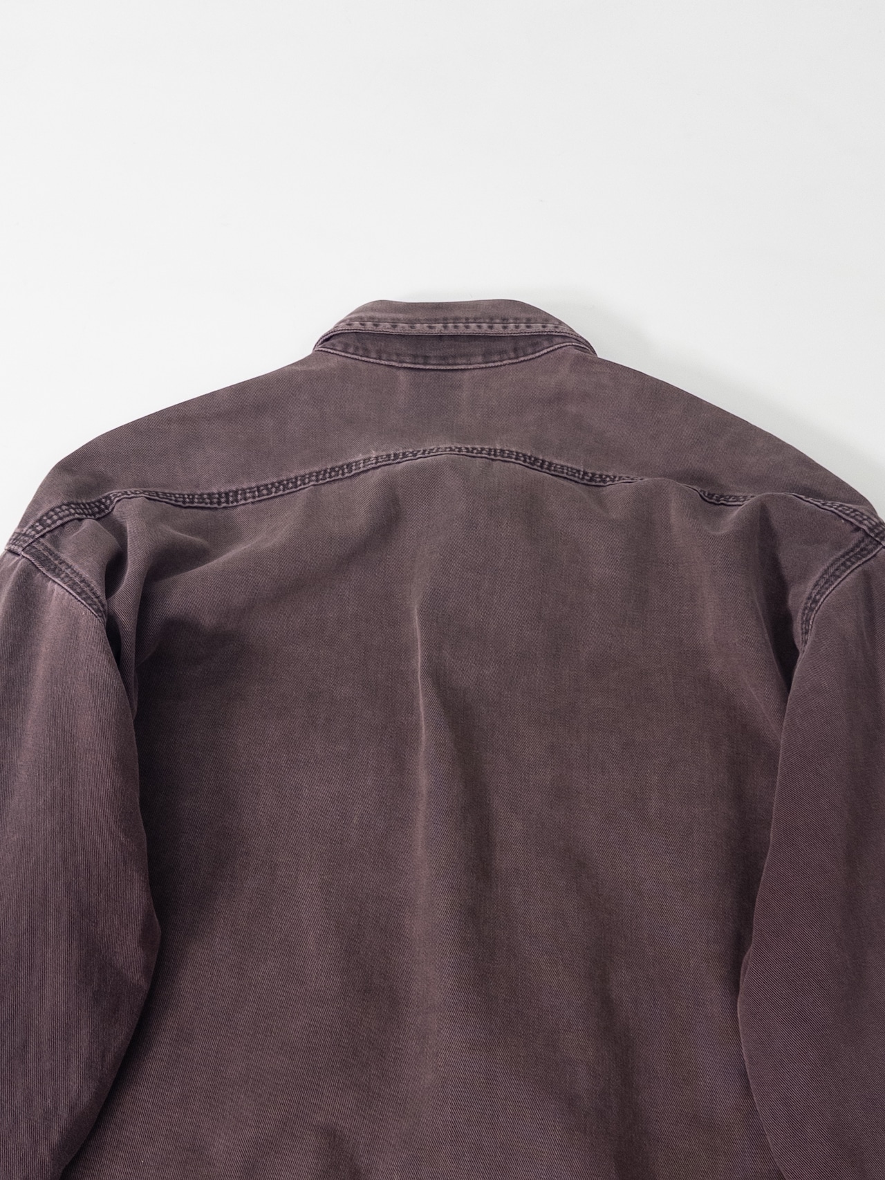 定番のブラウンダックを思わせる色味が時間とともにフェードし、紫がかったモーブトーンへと変化した、唯一無二の存在感を持つ一枚です。Made in USA、100%コットンのしっかりとした生地感に、両胸ポケットとボタンダウンの仕様。ワーク由来のタフさを備えながら、都会的なスタイリングにも溶け込む、Carharttならではの魅力が詰まっています。