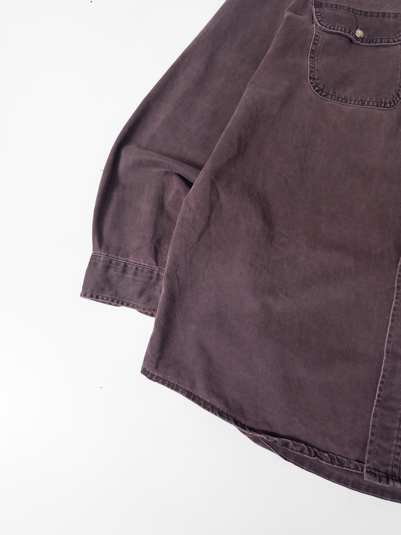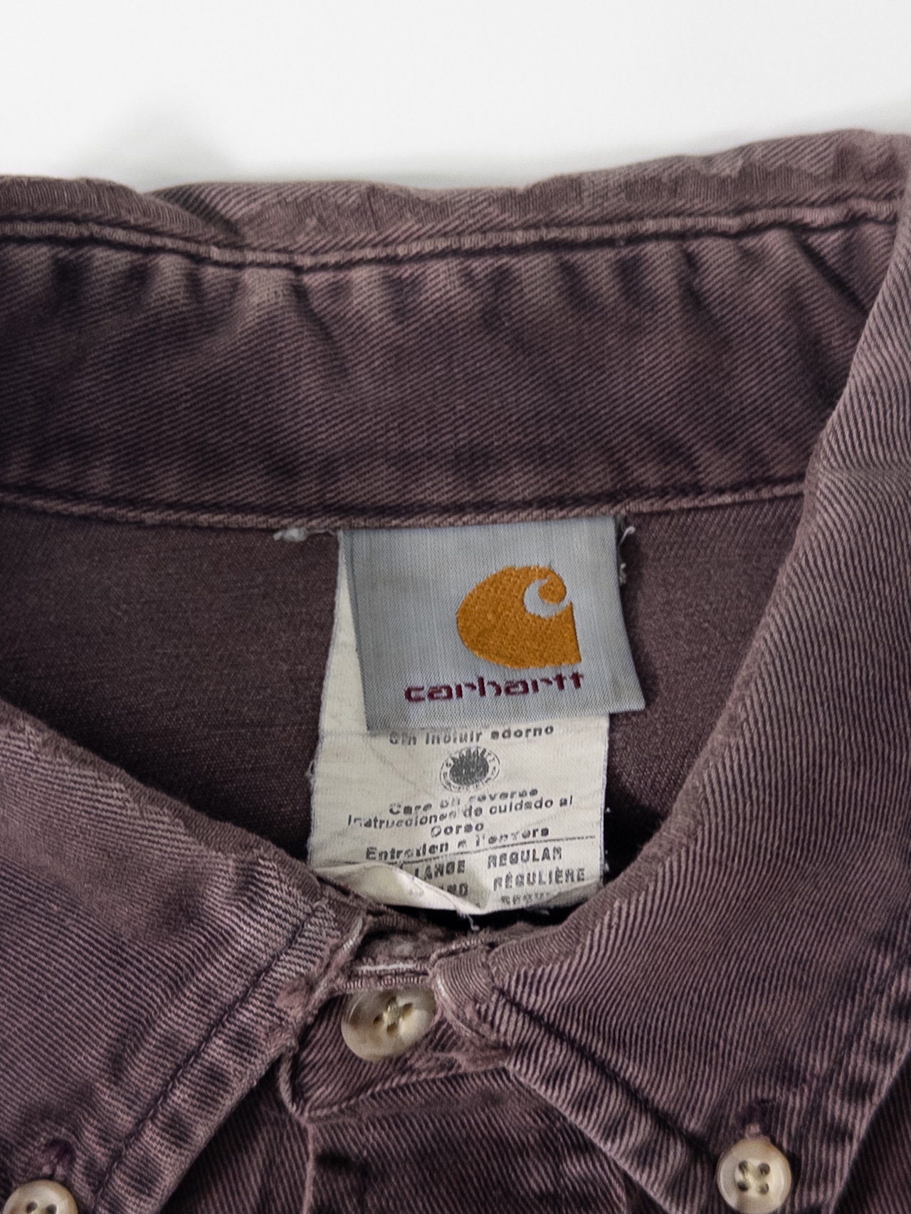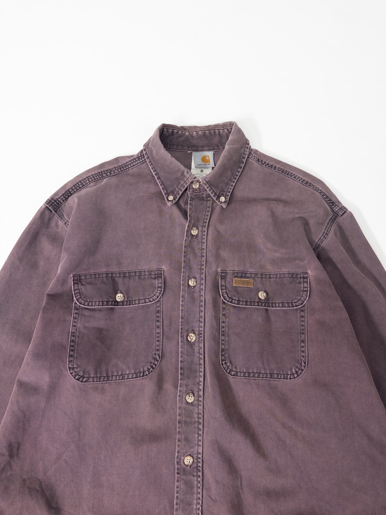 定番のブラウンダックを思わせる色味が時間とともにフェードし、紫がかったモーブトーンへと変化した、唯一無二の存在感を持つ一枚です。Made in USA、100%コットンのしっかりとした生地感に、両胸ポケットとボタンダウンの仕様。ワーク由来のタフさを備えながら、都会的なスタイリングにも溶け込む、Carharttならではの魅力が詰まっています。