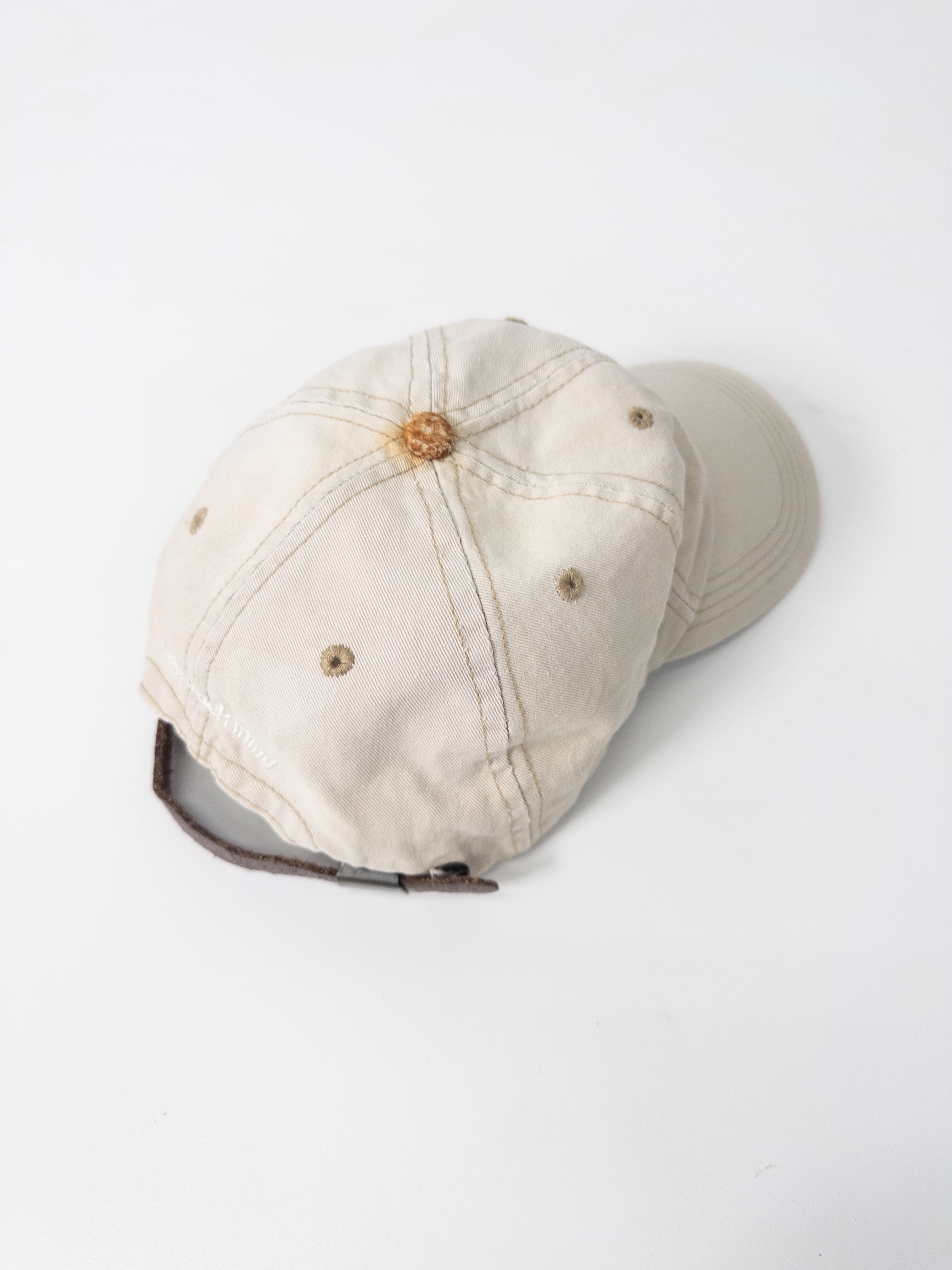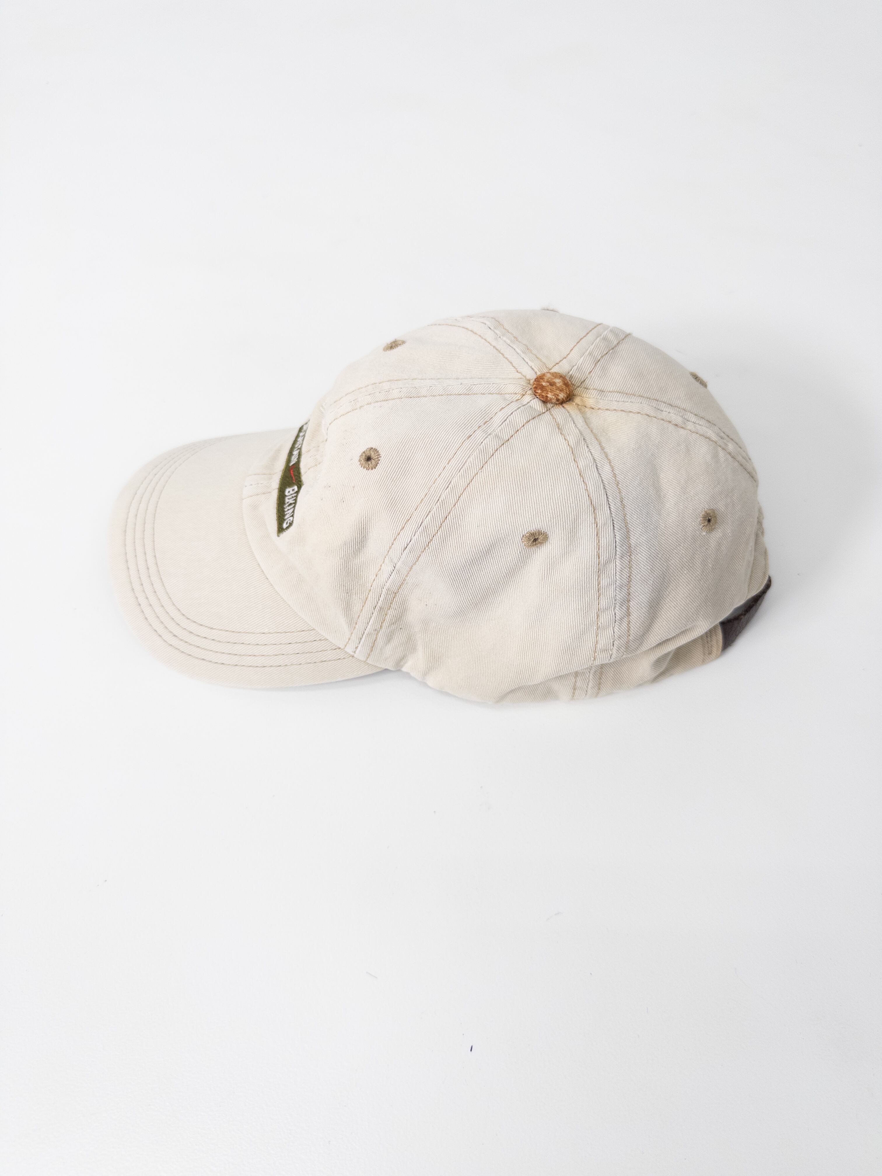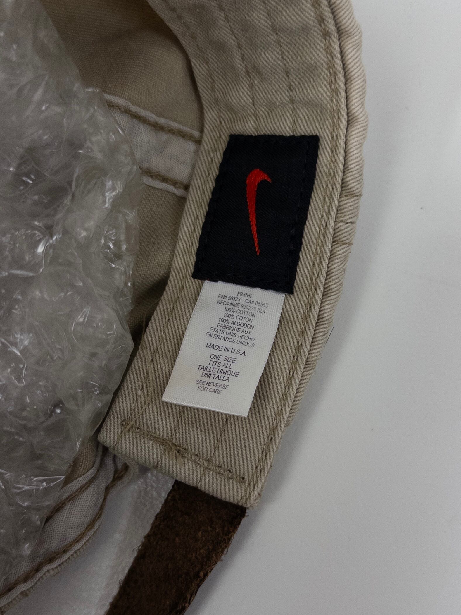 マウンテンバイキング刺繍入りのレアデザイン。ベージュキャンバスに洗いのかかった質感が、ストリートでもアウトドアでも自然に馴染みます。ACGらしい機能的な空気と、都会的な抜け感を併せ持つ一本。赤スウッシュのタグが当時の空気をそのまま伝えてくれるのも魅力。