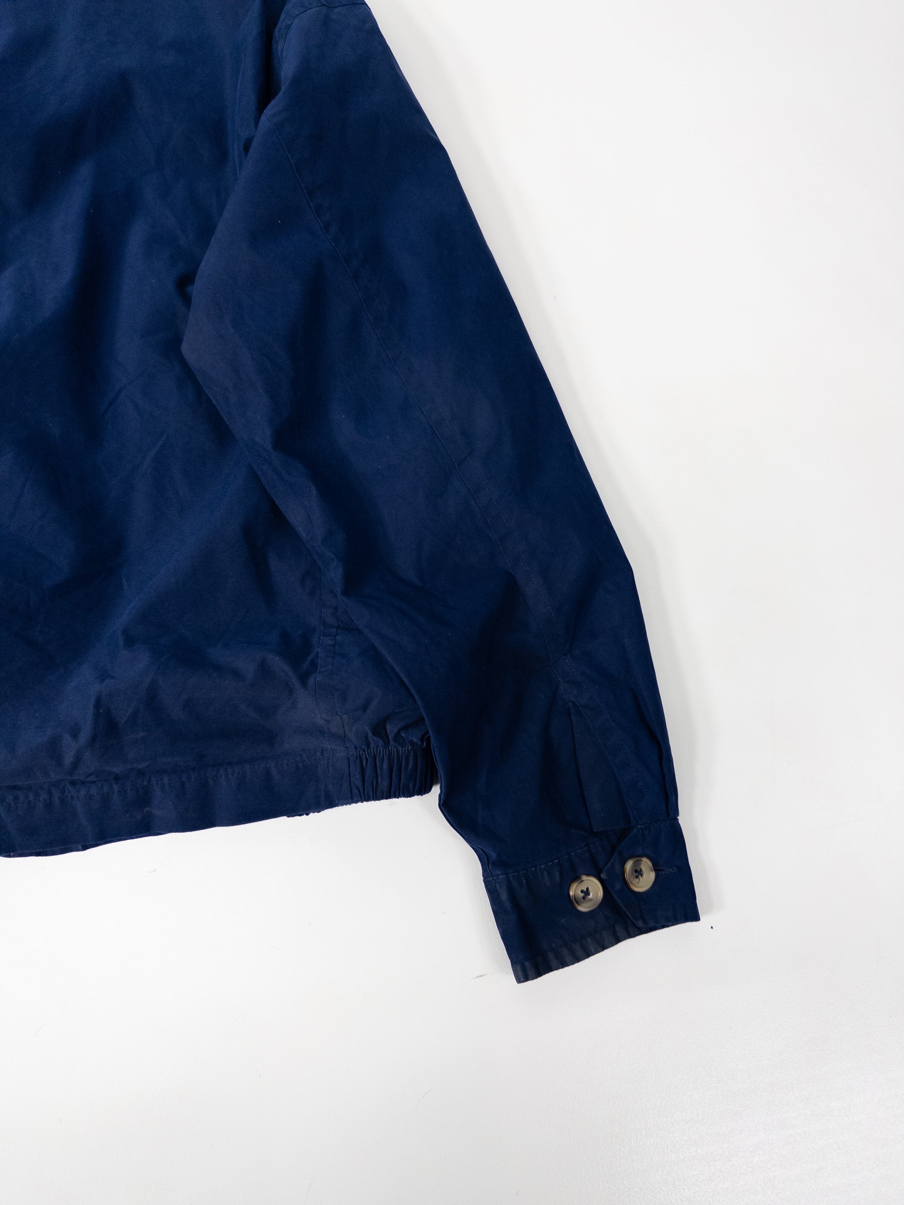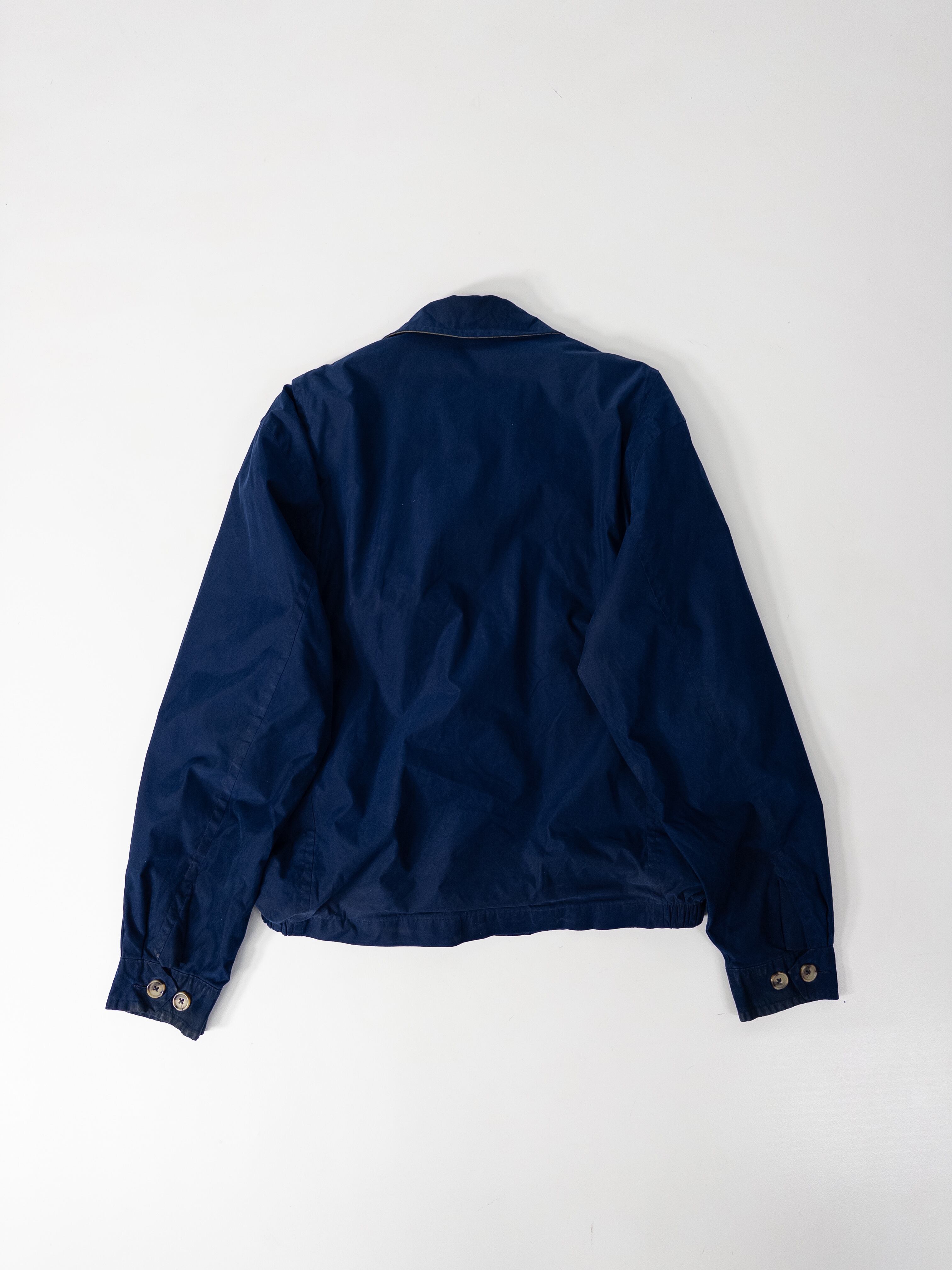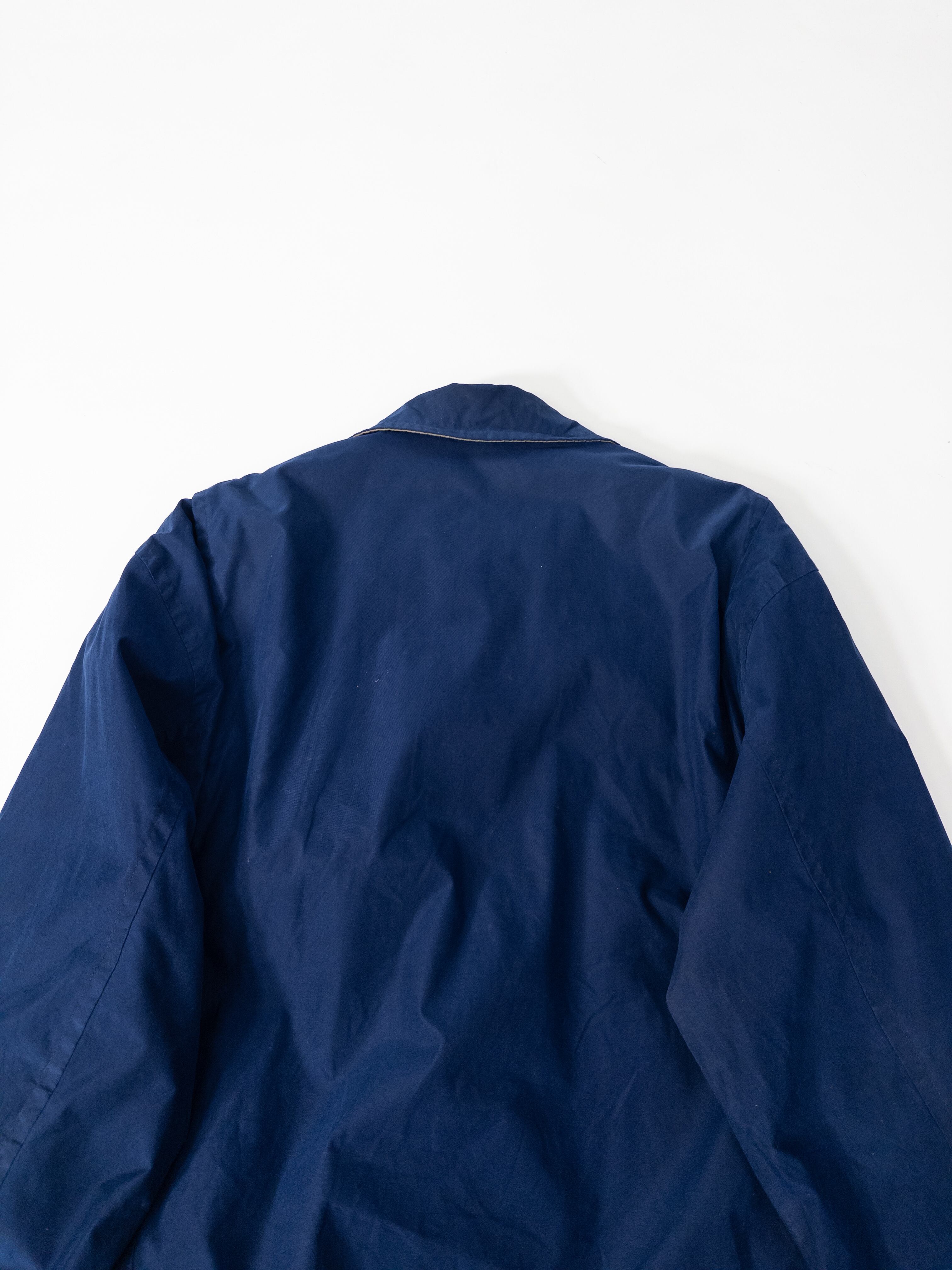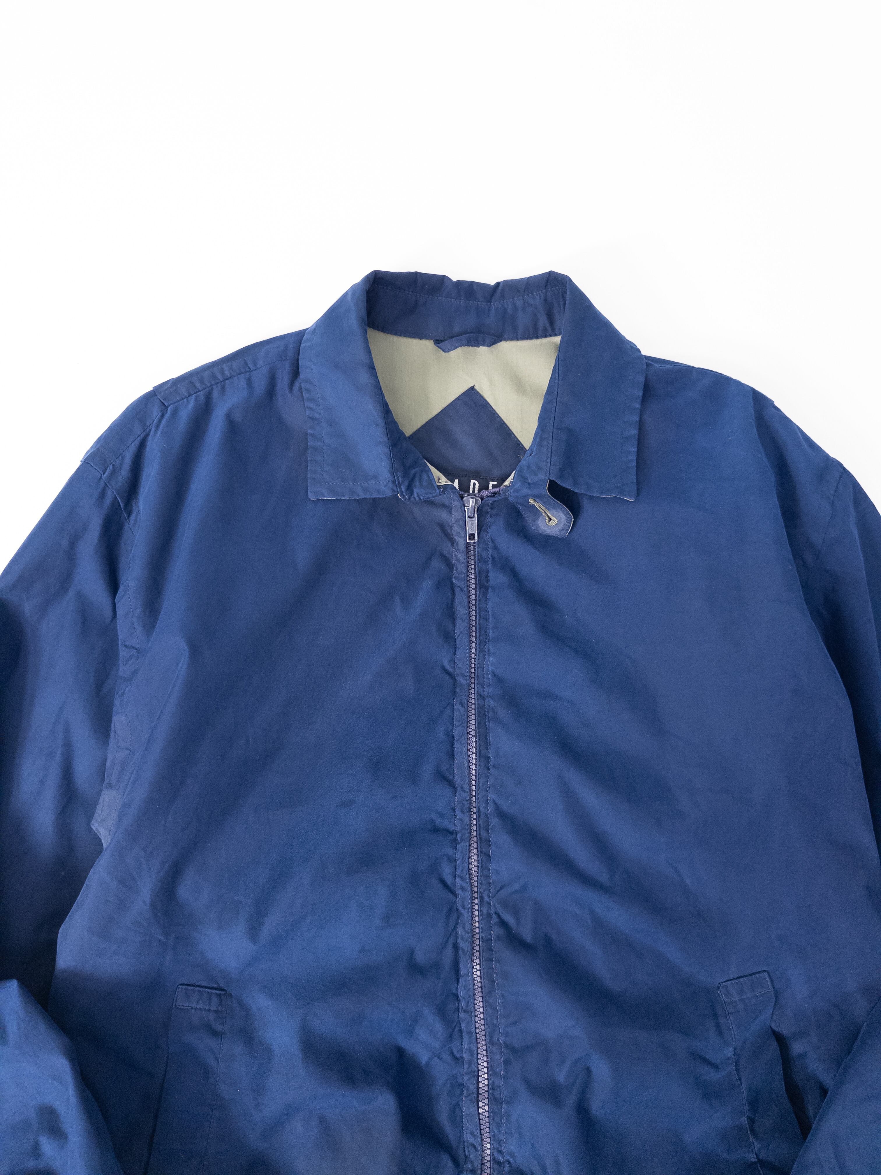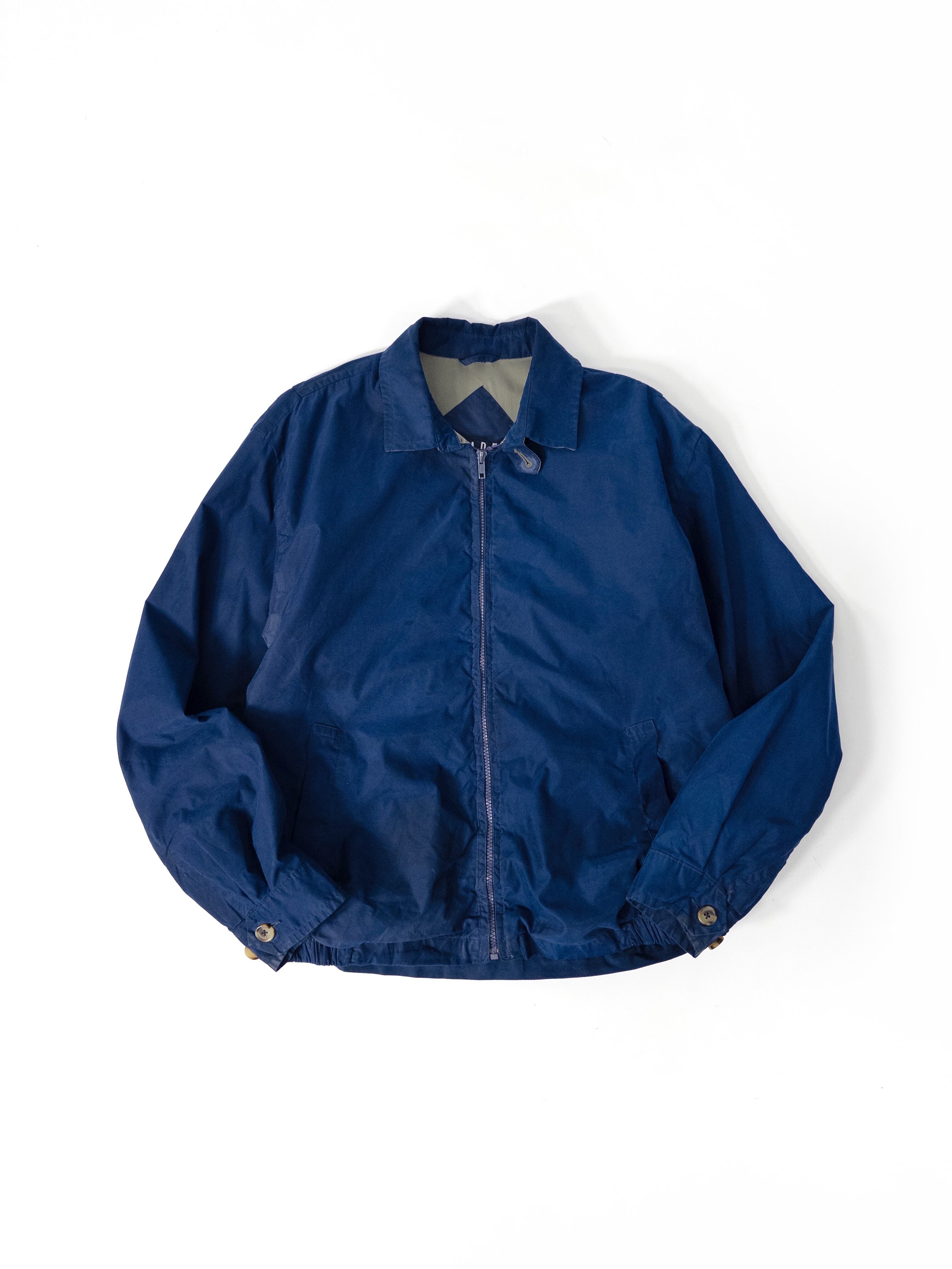 襟付きジップアップのクラシックなデザインで、裏地のグレーとの色合わせも絶妙。