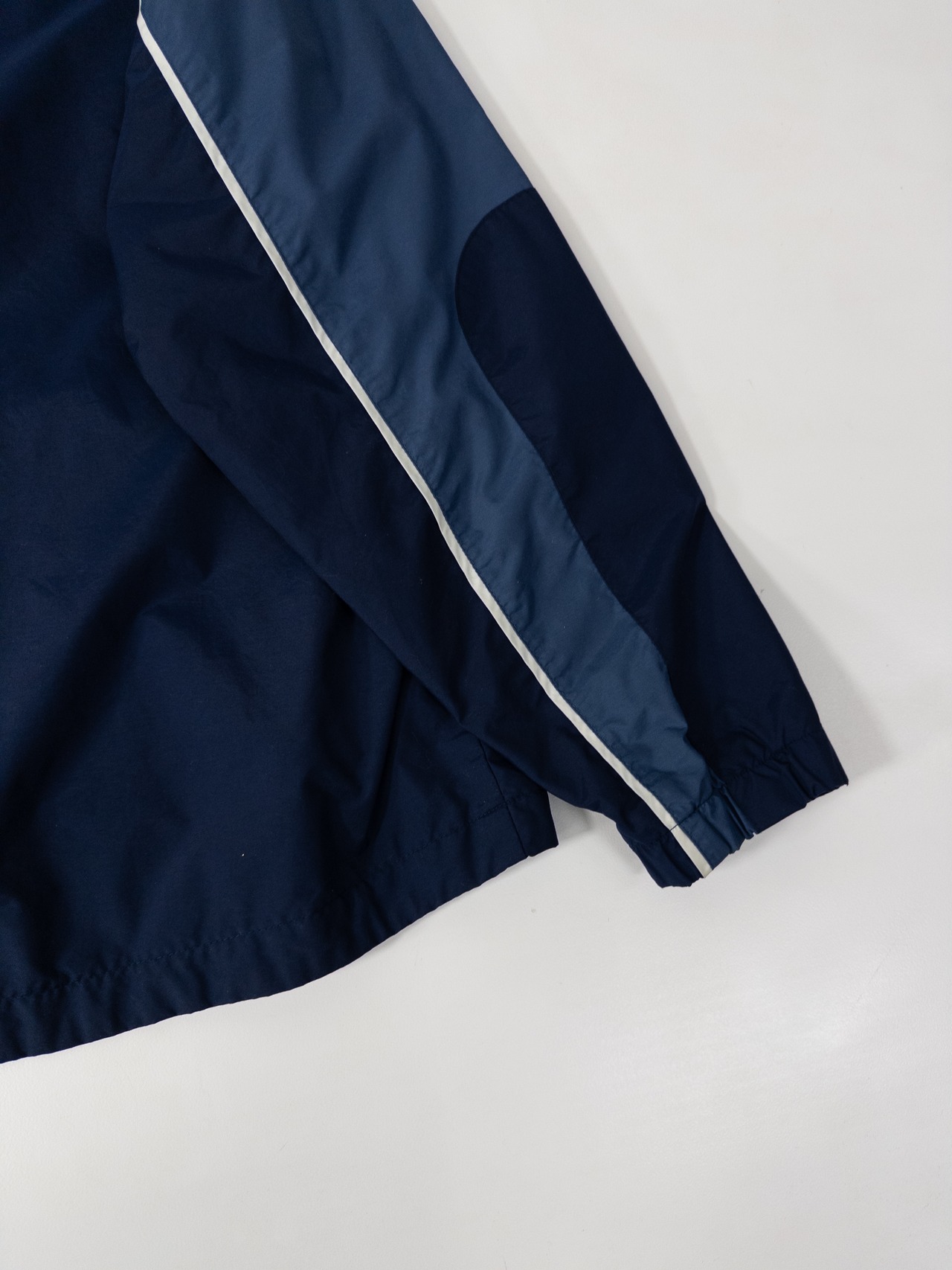 スラックスやナイロンパンツなどとのレイヤードにも映えます。