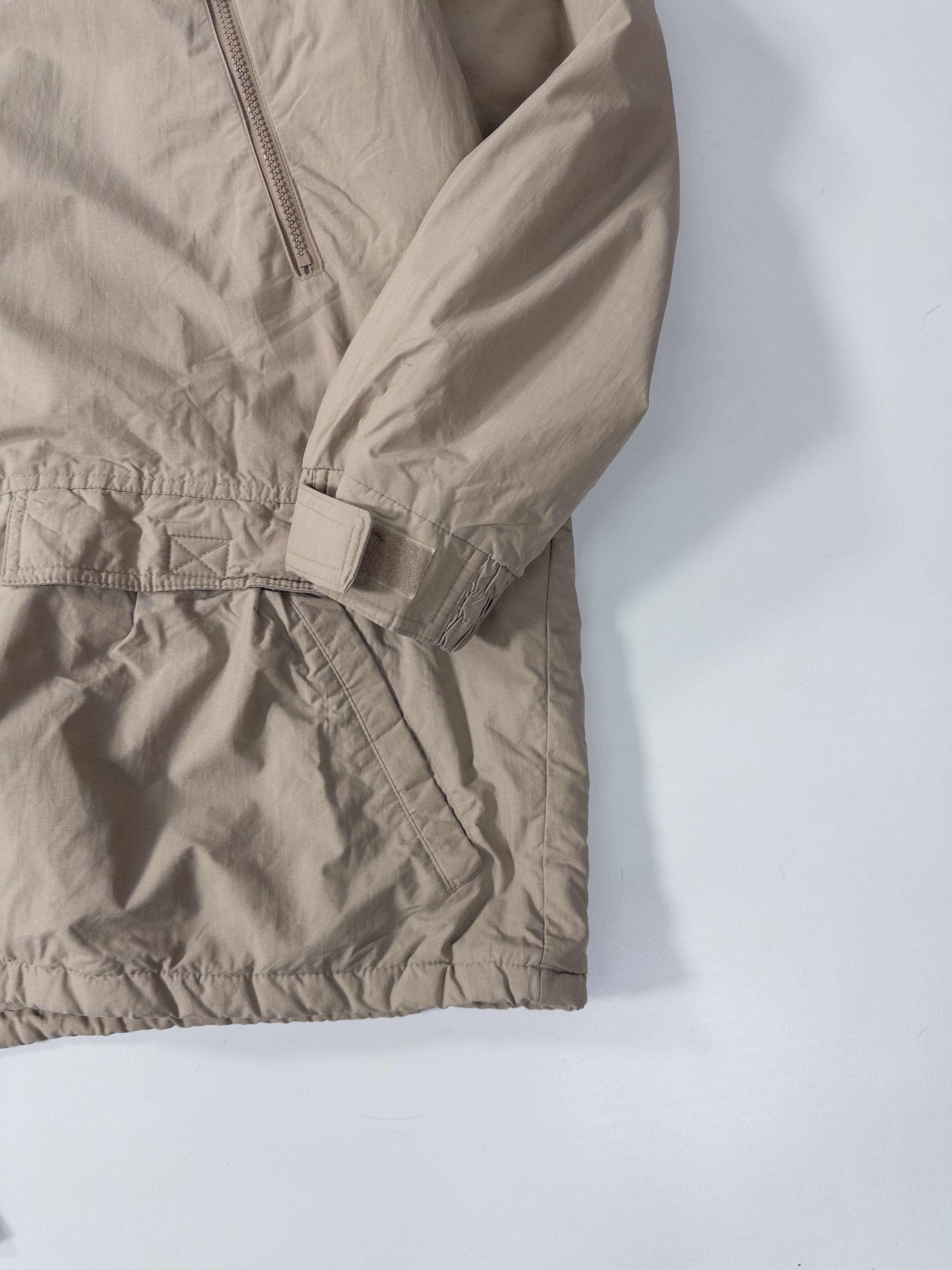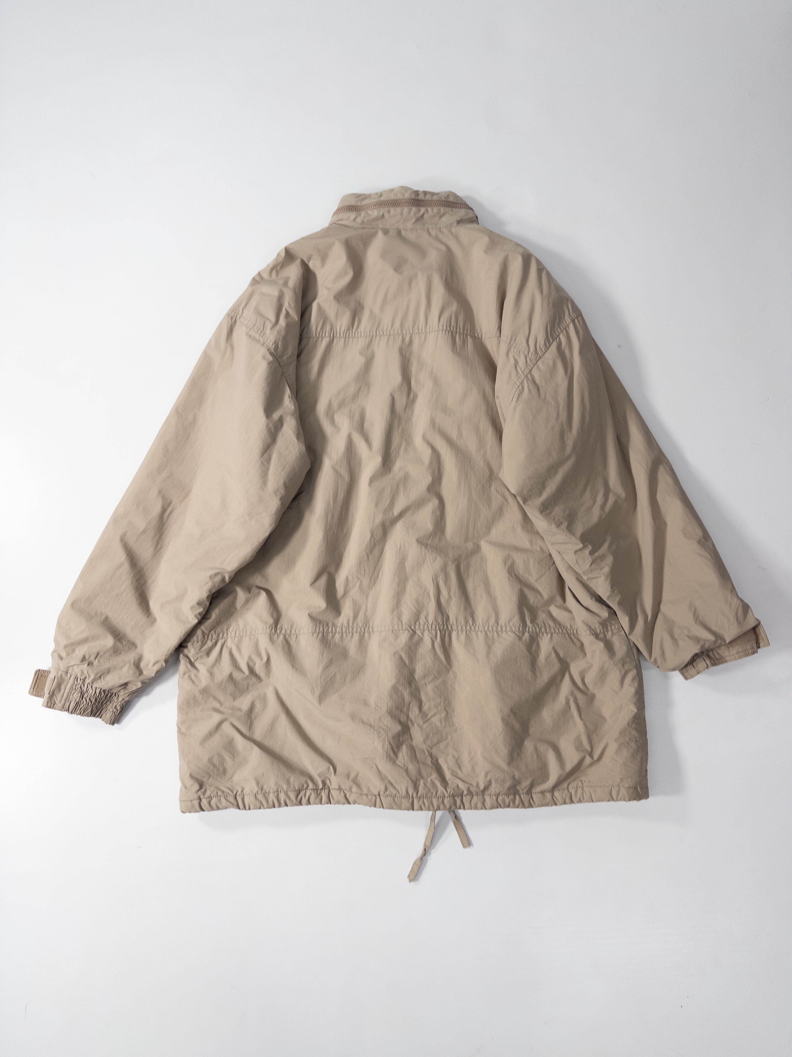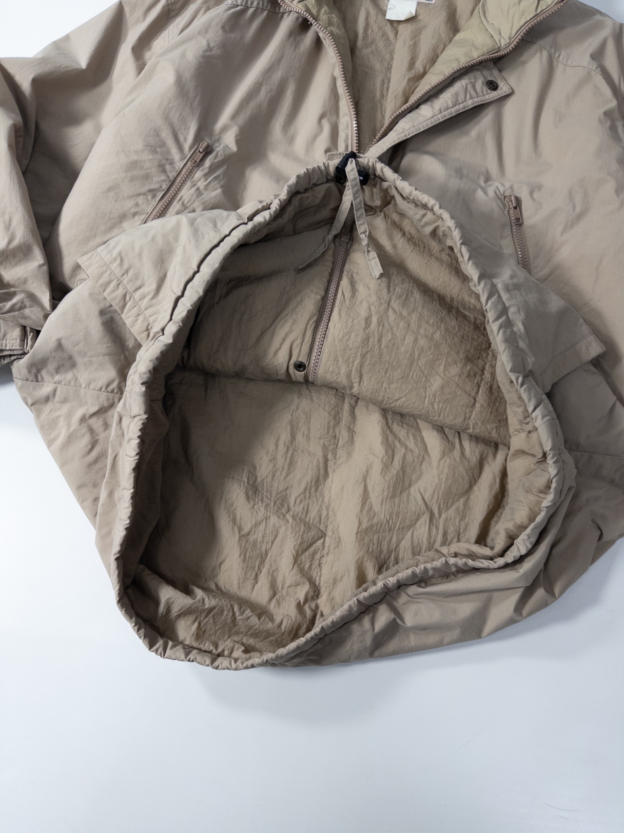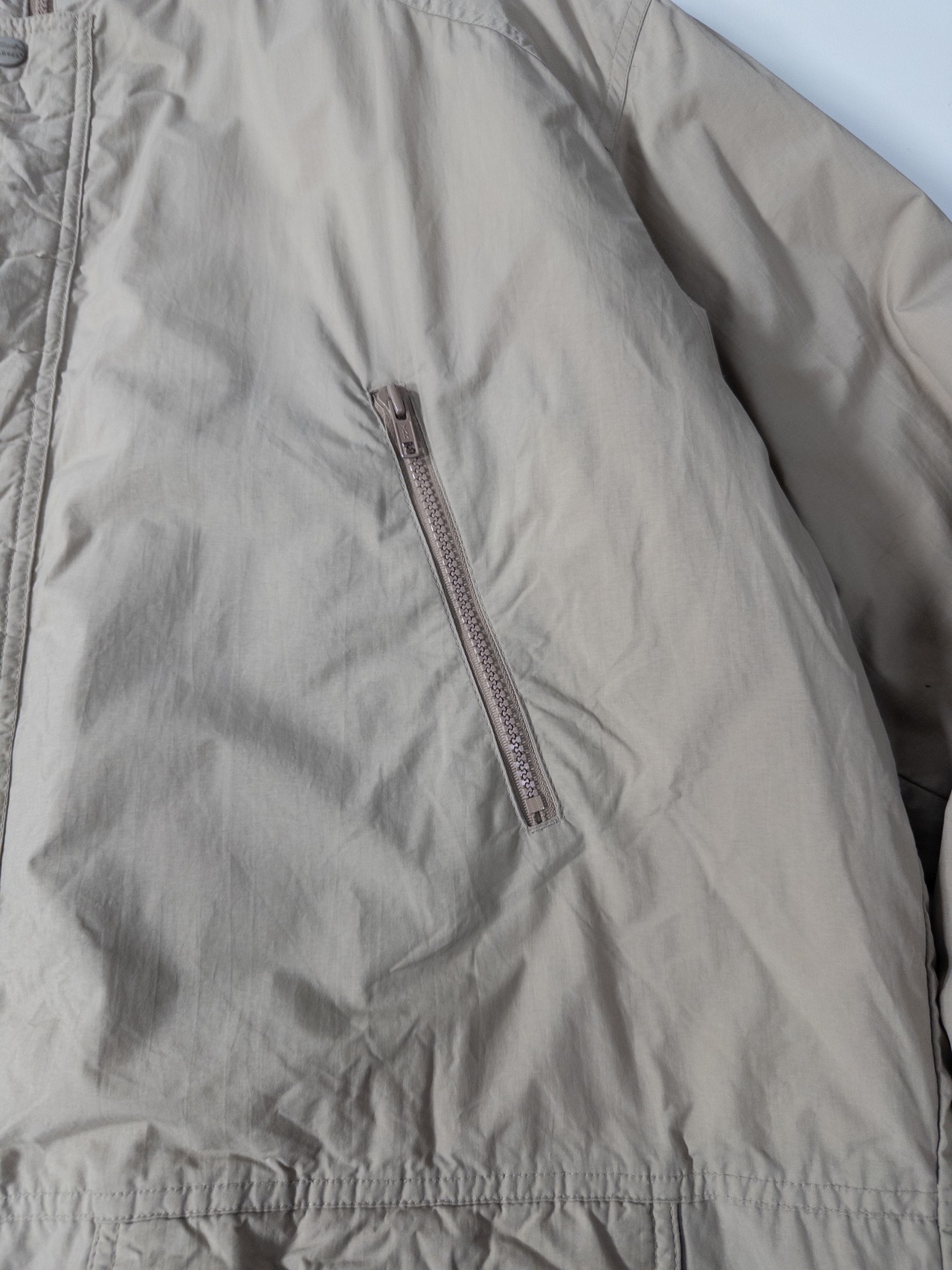 90s前後のナイロン特有の“パリッとしすぎない”質感で、着ると身体をやわらかく包む丸いシルエットに。ミリタリーのモンスターパーカーを連想させる、ゆったり落ちるアームと長めの着丈が魅力です。