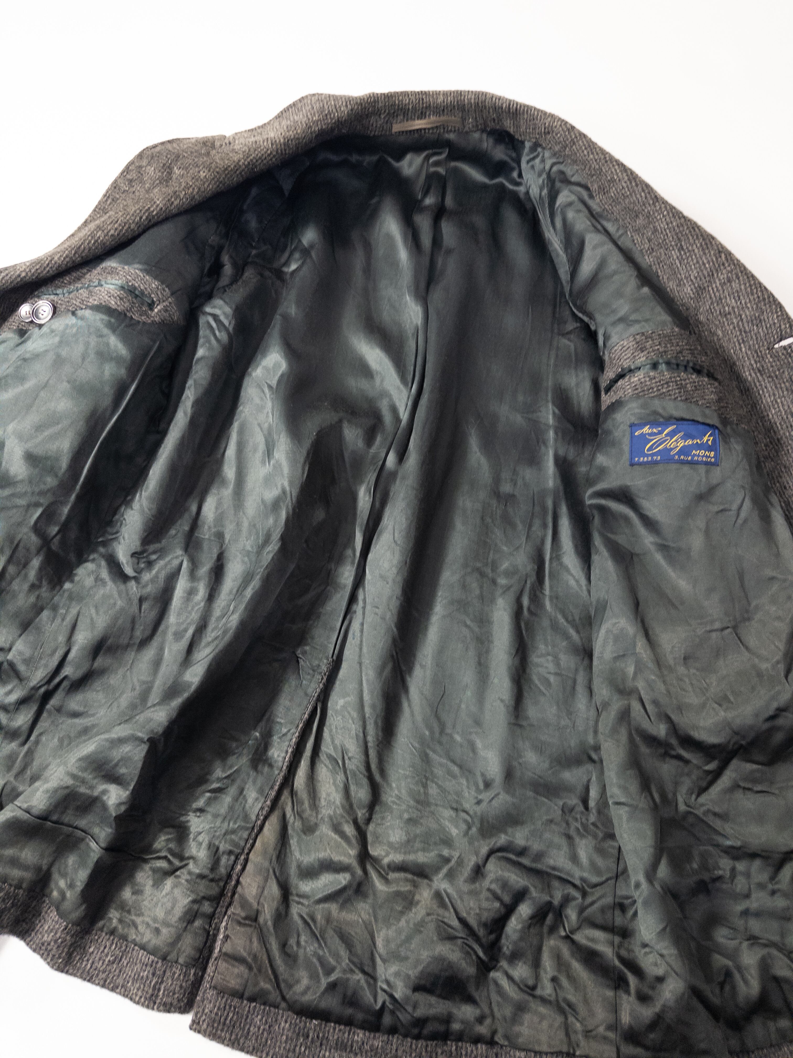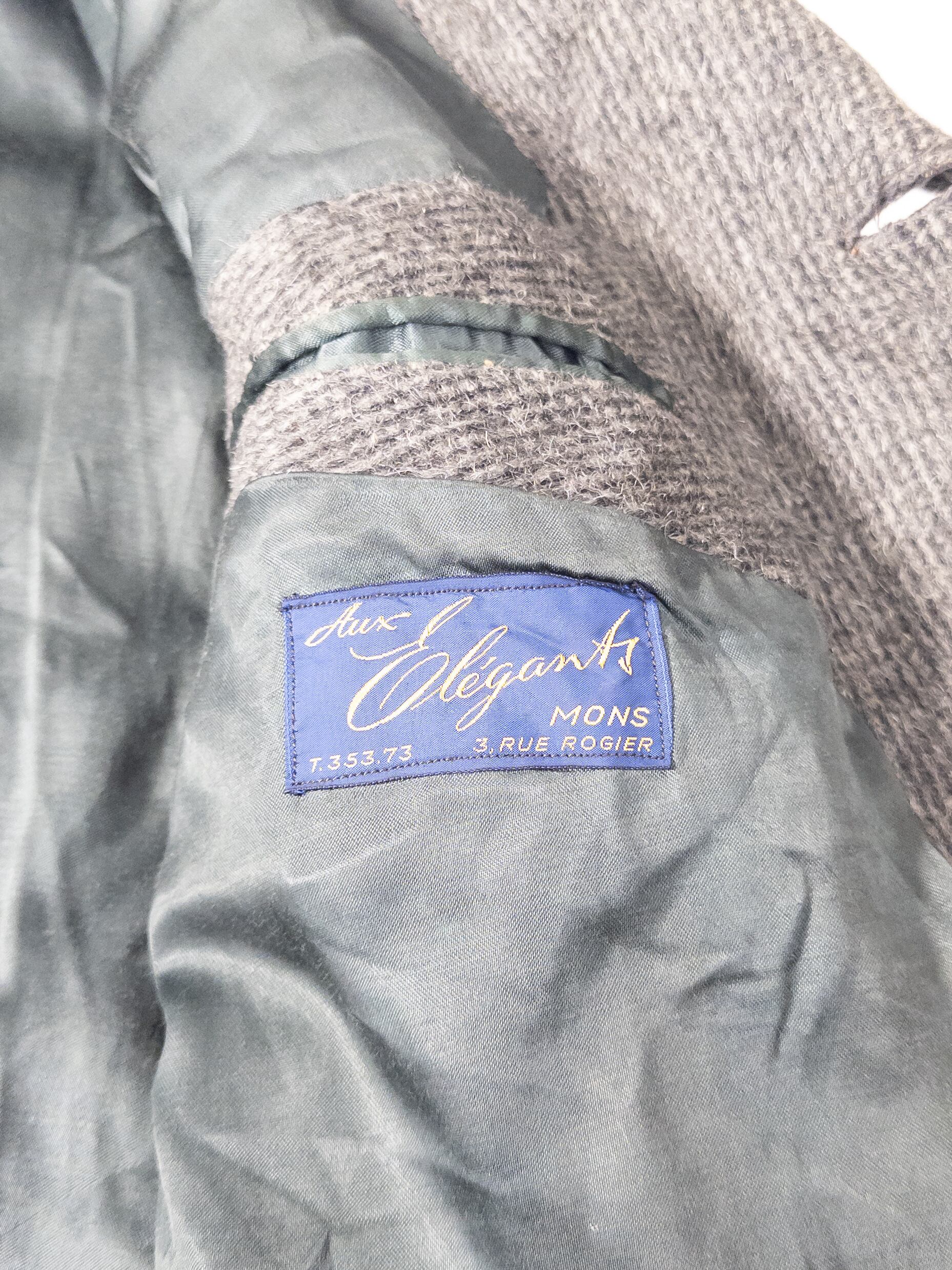ベルギーの紳士服店「Aux Élégants」による 工房仕立て の一着で、当時のヨーロッパに多かった“小規模テーラーの良い仕事”がそのまま残っています。