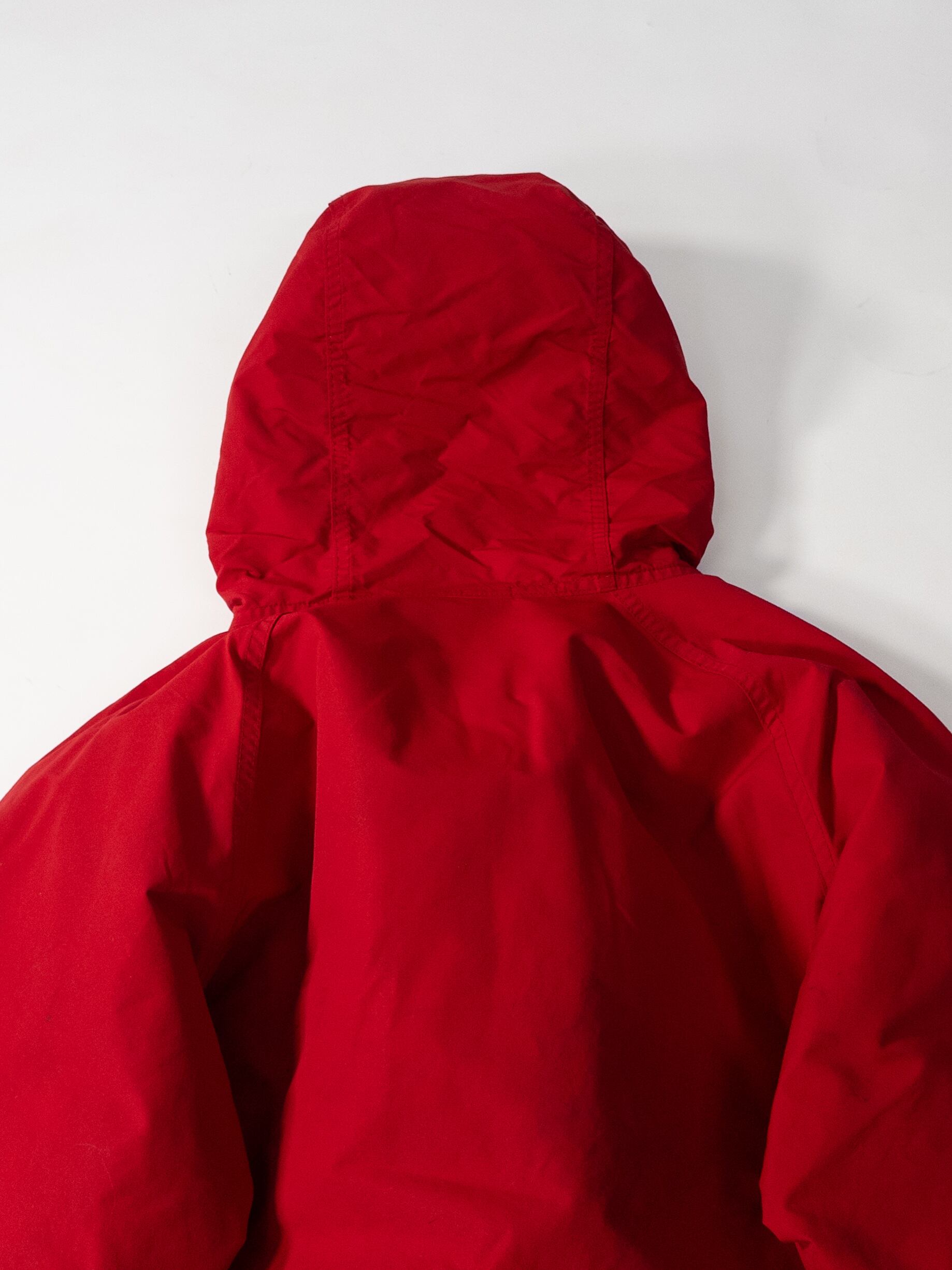 80〜90s頃のUSA製で、フード一体型の丸いシルエットと少し長めの着丈が、ミリタリーやワークとも違う Bean特有の品のあるアウトドア をつくっている一枚。