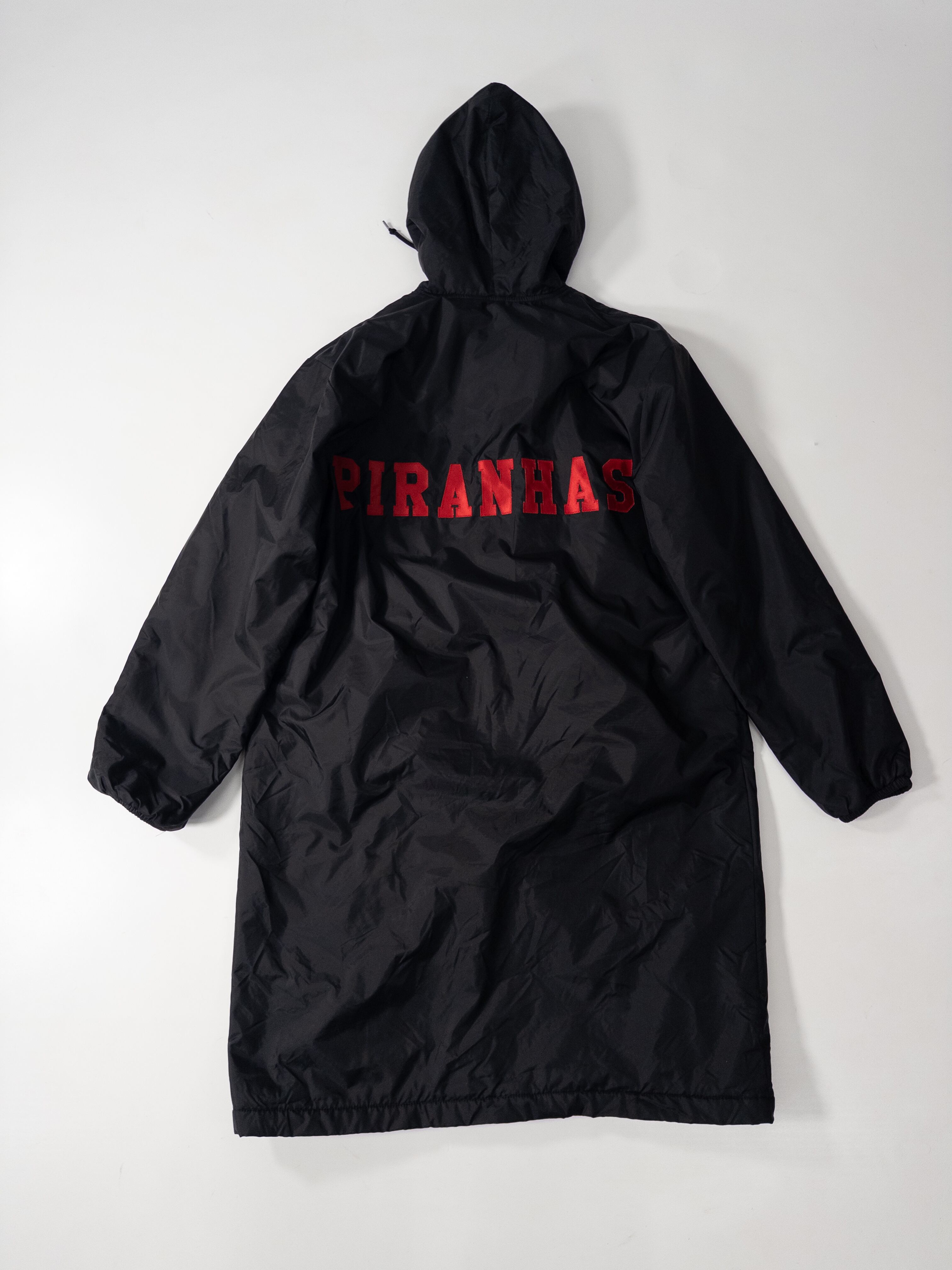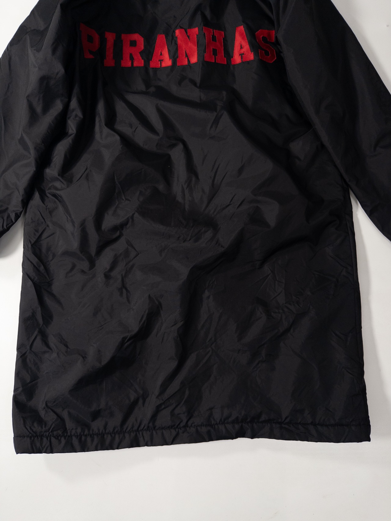 胸元の「Strong」刺繍、バックの「PIRANHAS」ロゴも含めて、