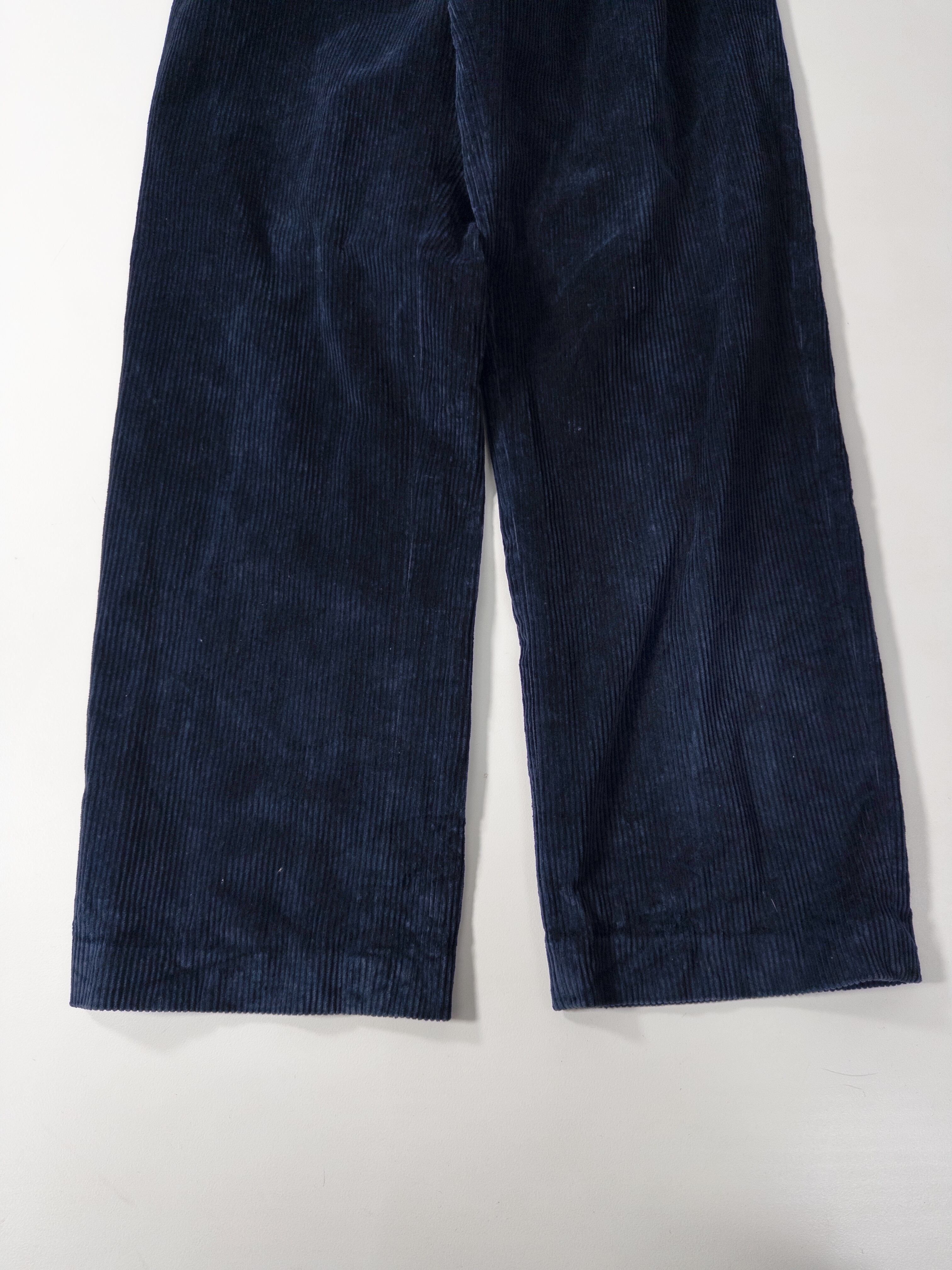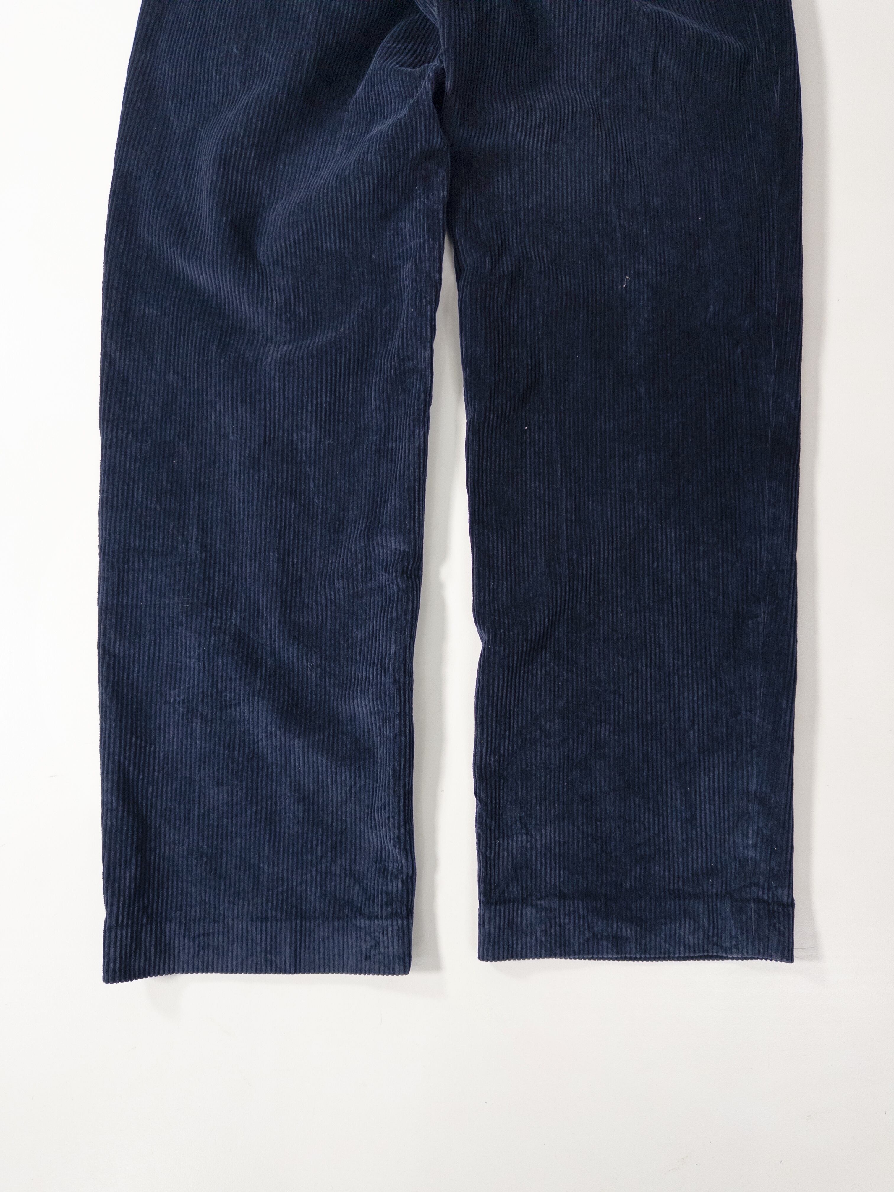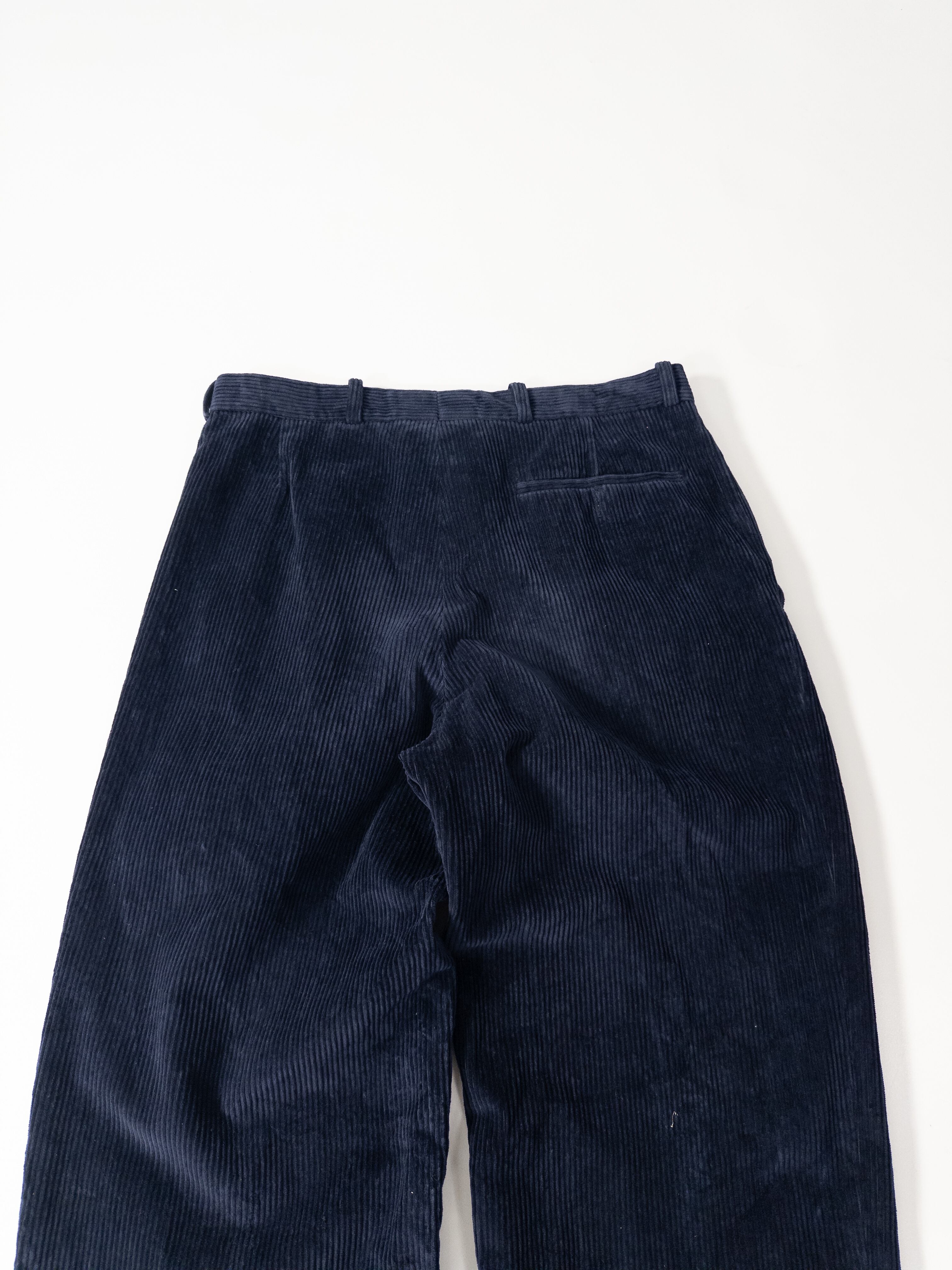 深いネイビーの色味と太畝の表情がきれいな、ポルトガル製コーデュロイパンツ。