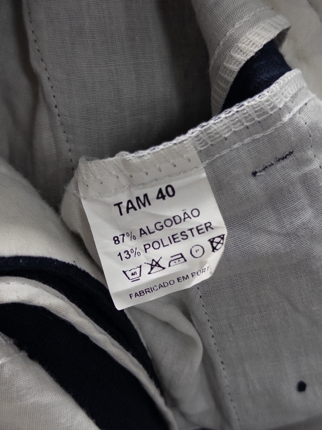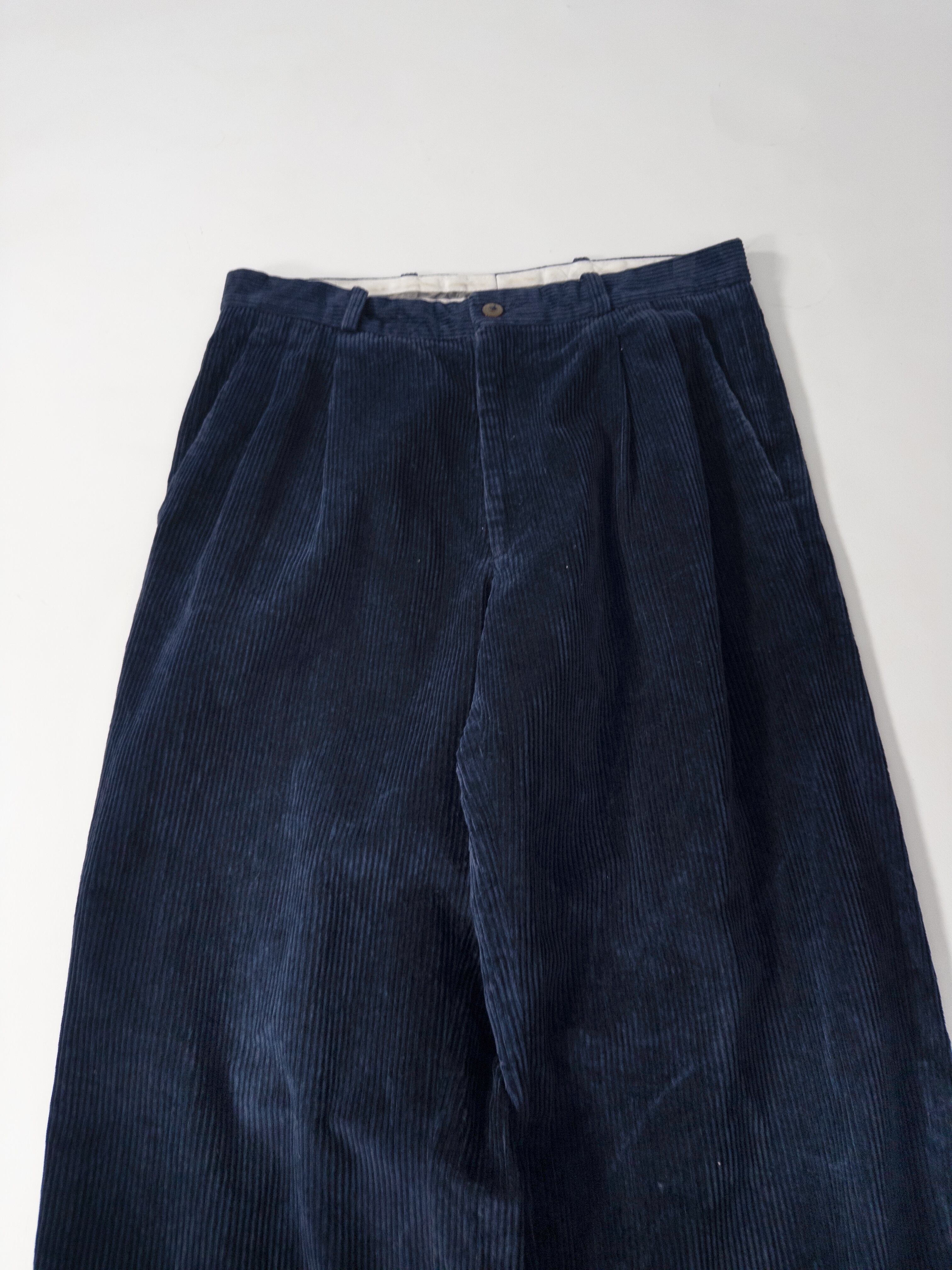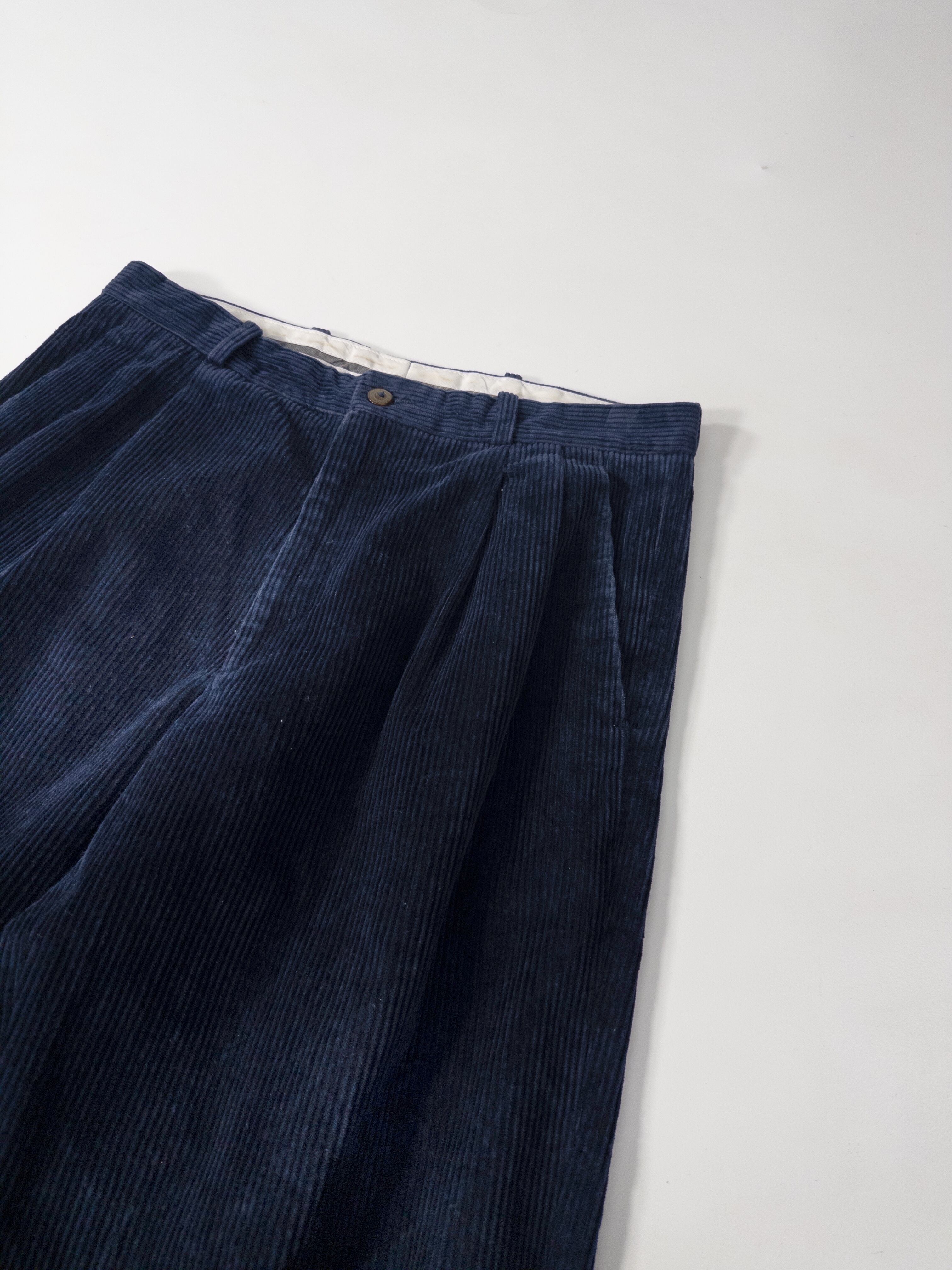深いネイビーの色味と太畝の表情がきれいな、ポルトガル製コーデュロイパンツ。