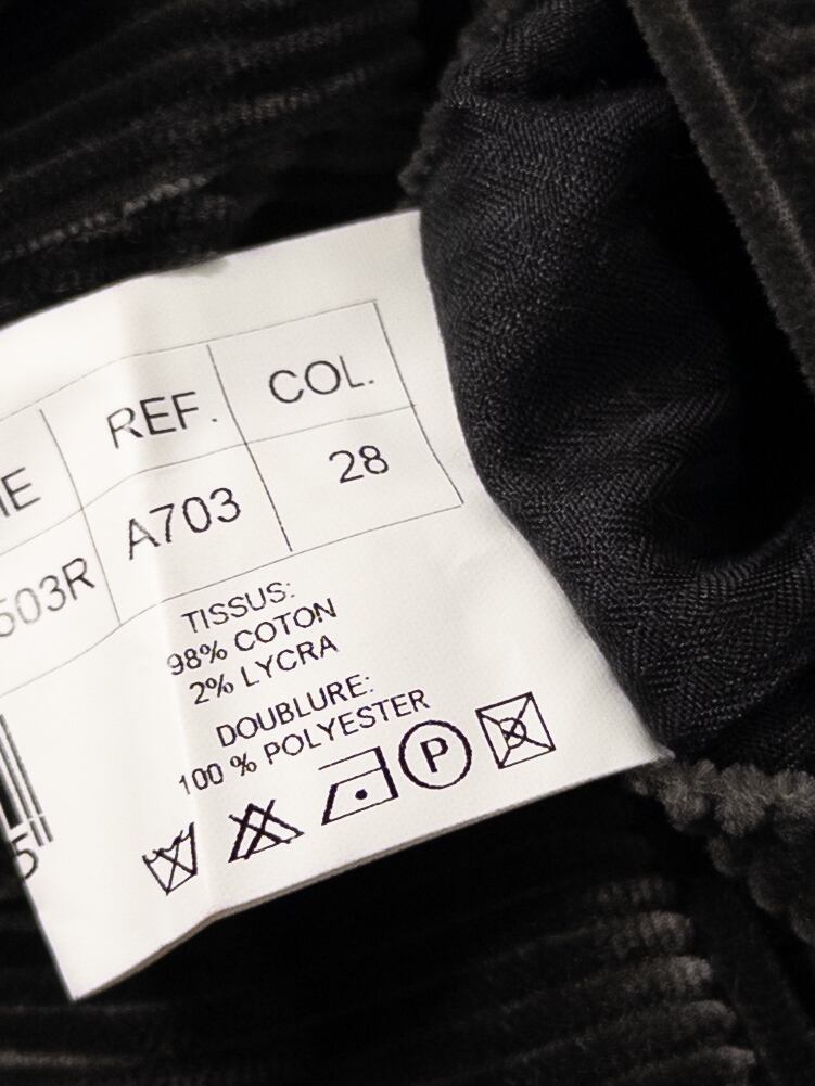 フランス語表記のタグが付く、ユーロ仕立てのコーデュロイパンツ。