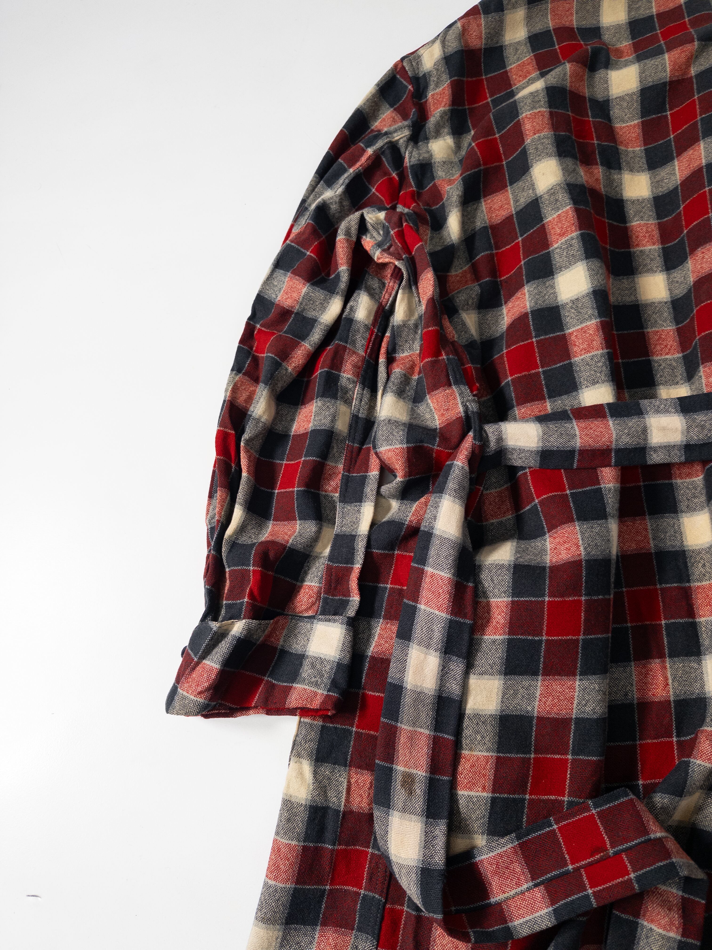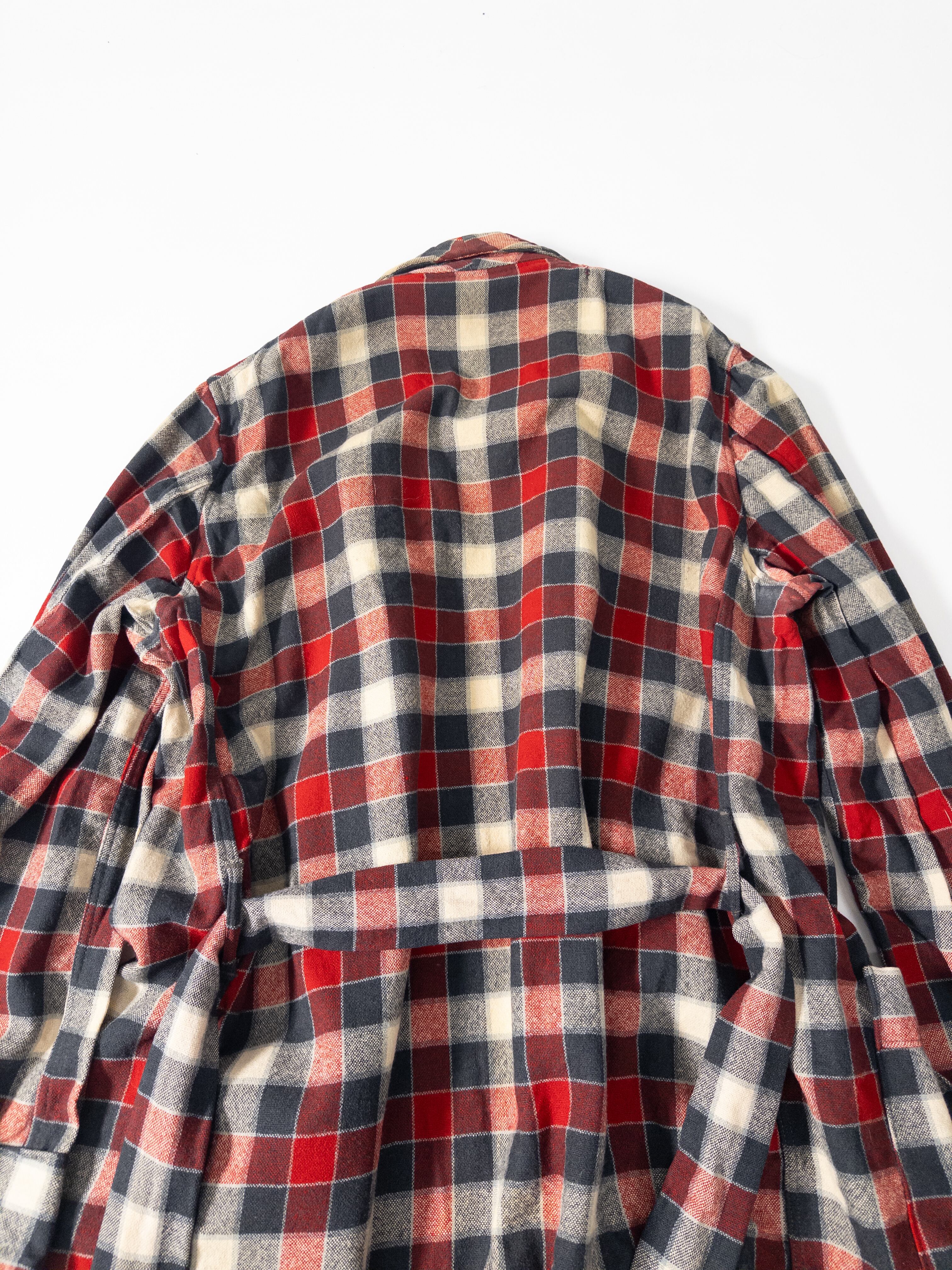 当時のホームウェアらしいリラックス感を残しつつ、今の街着に自然と馴染むチェック配色が魅力の一枚です。