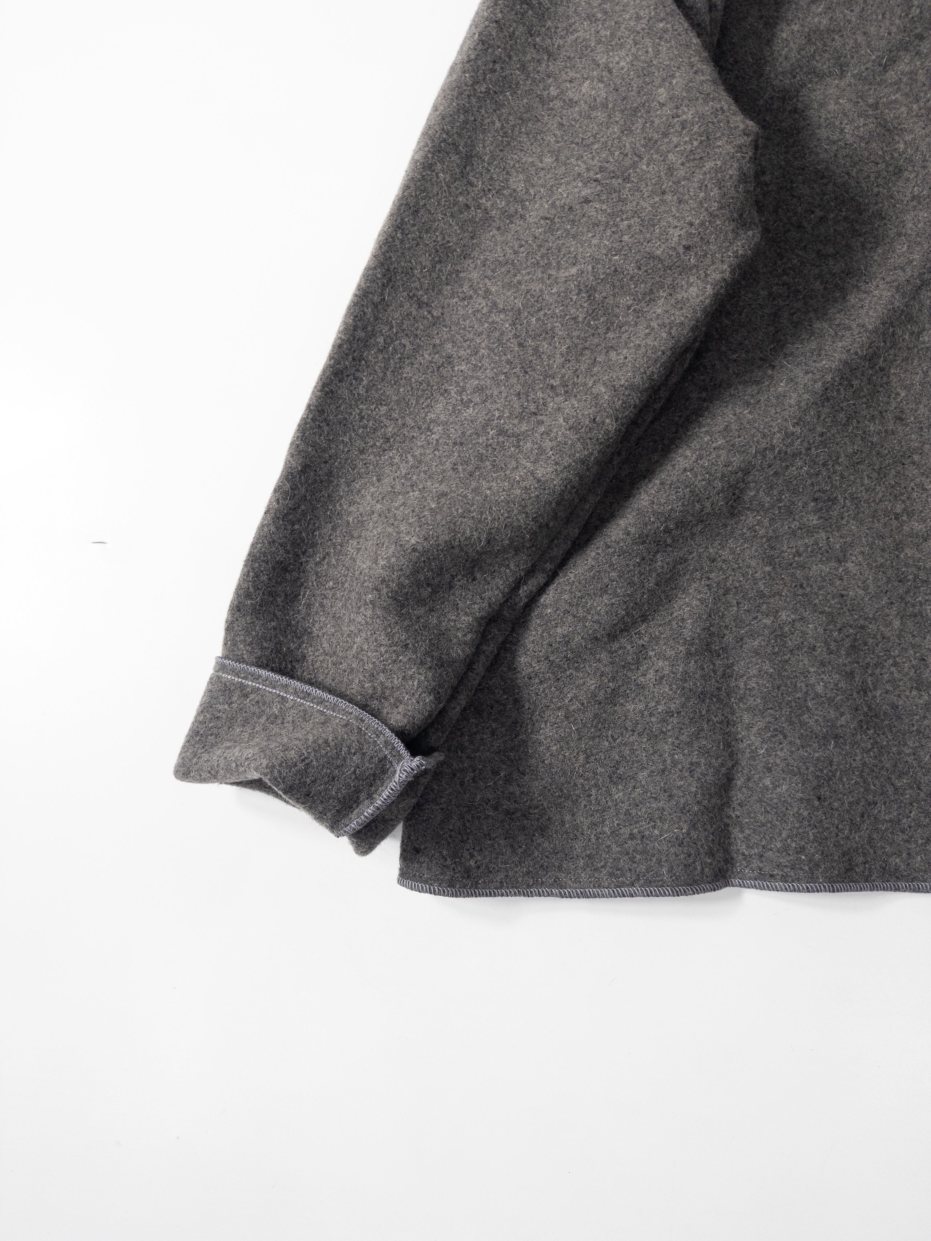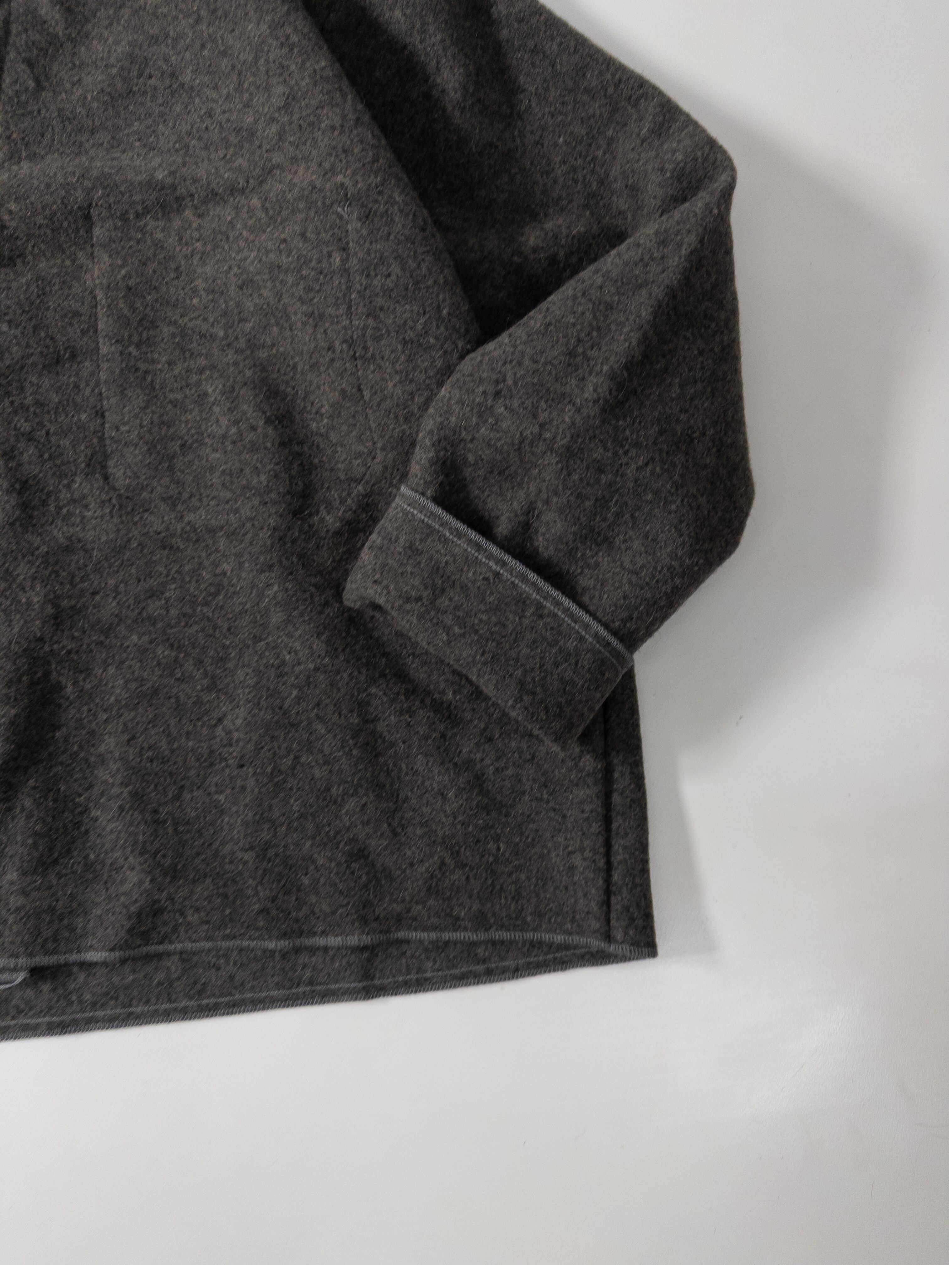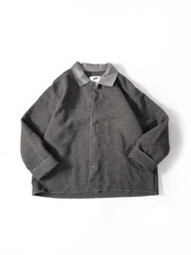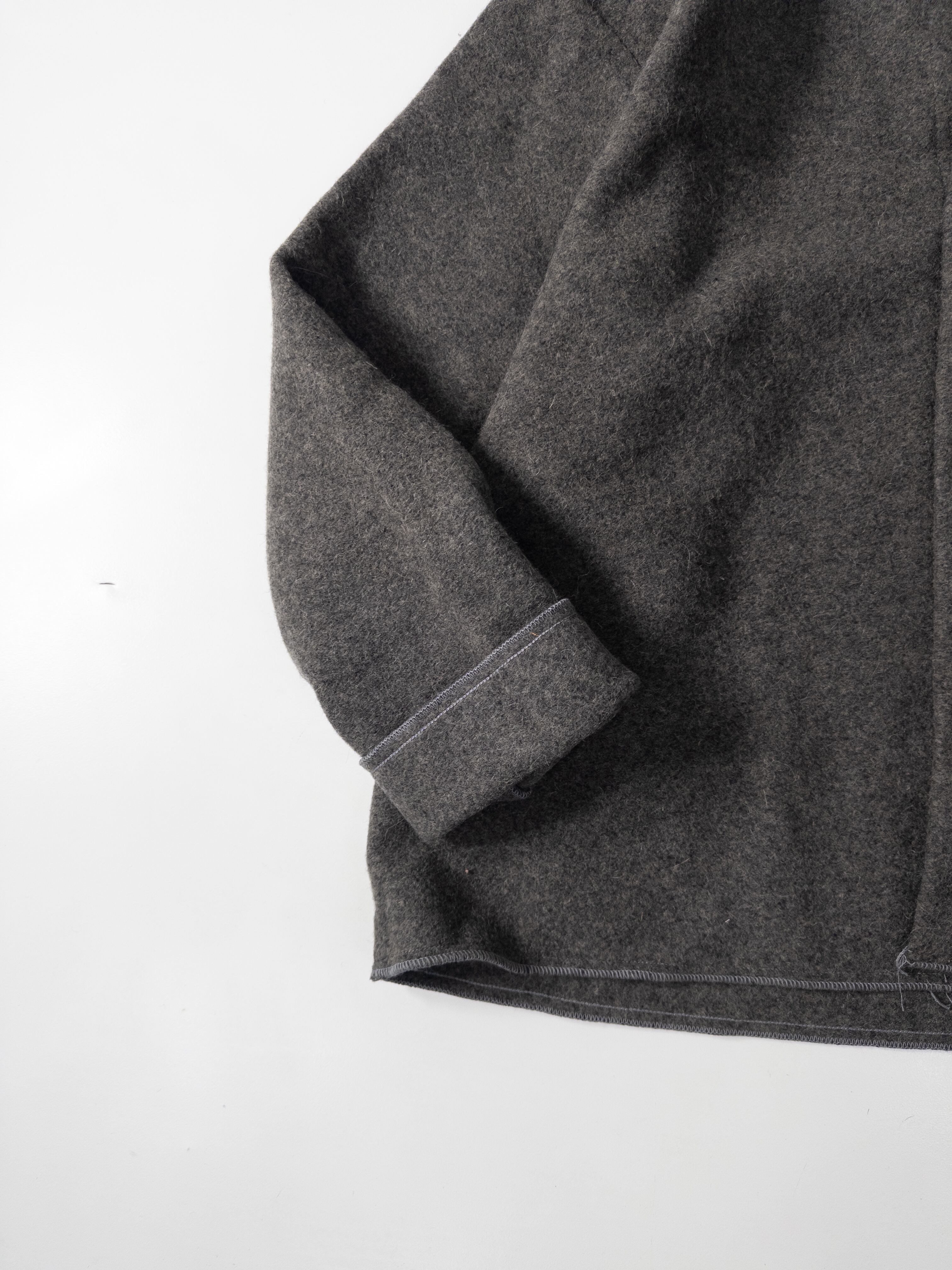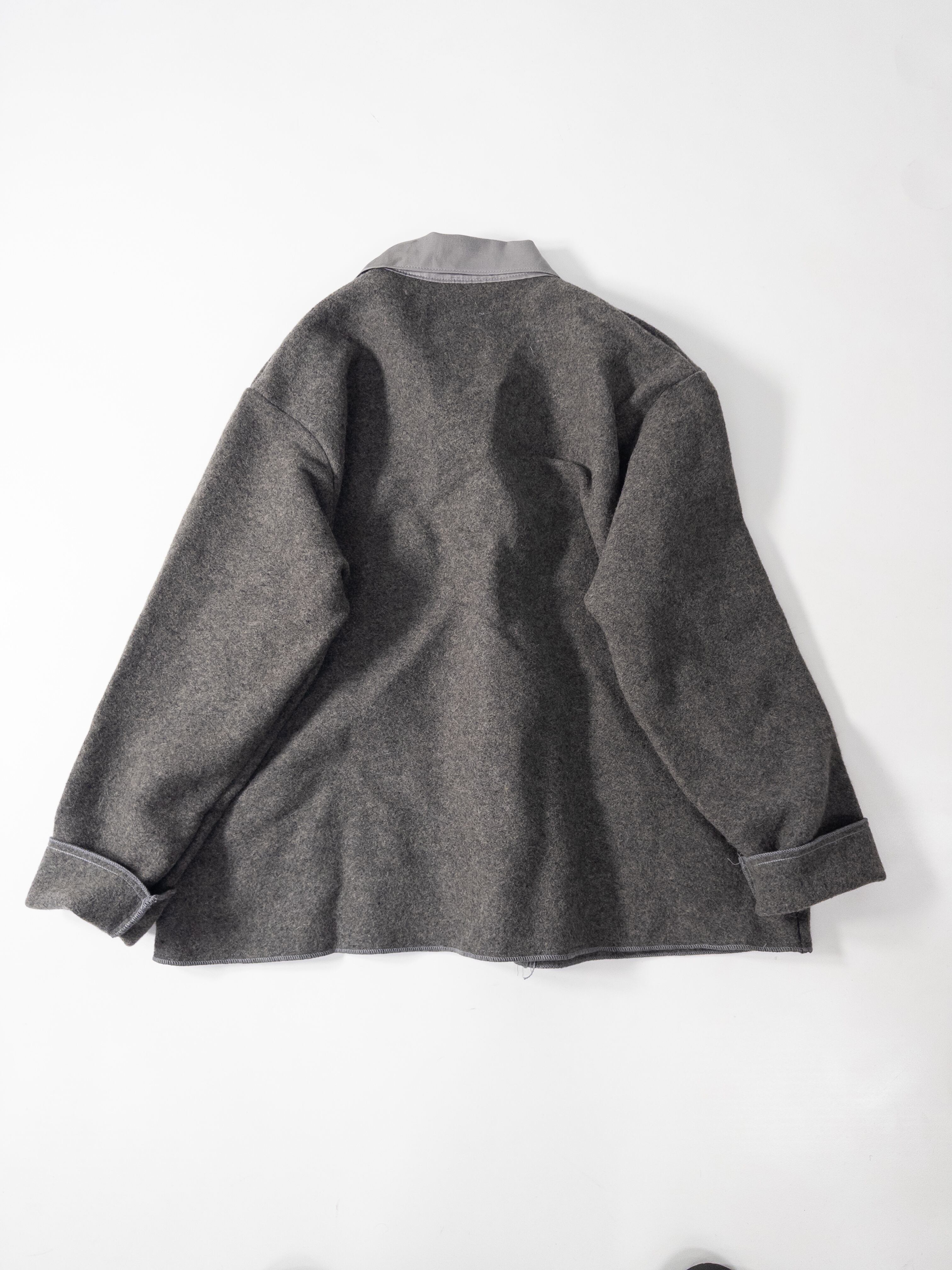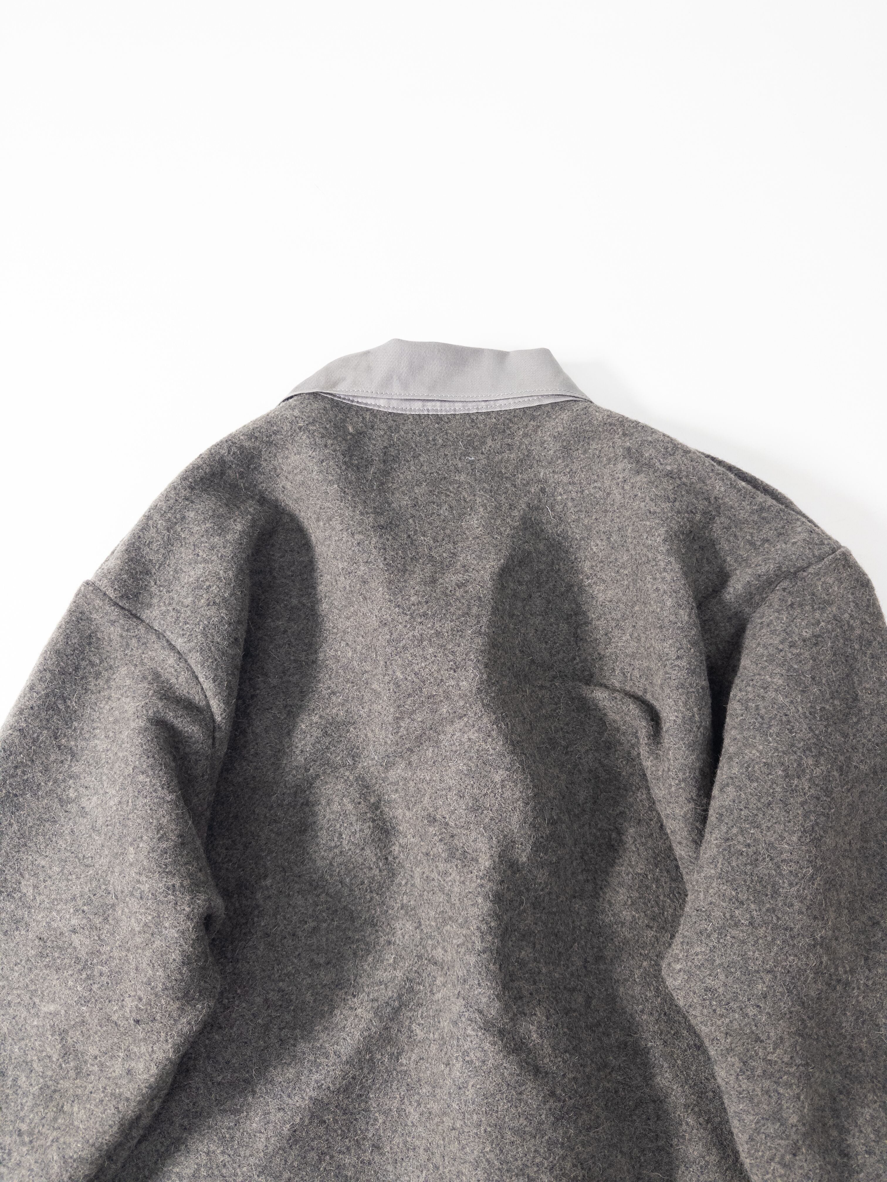 肉厚で起毛感の強いウールメルトンに、コントラストになる グレーのミリタリータッチな襟。