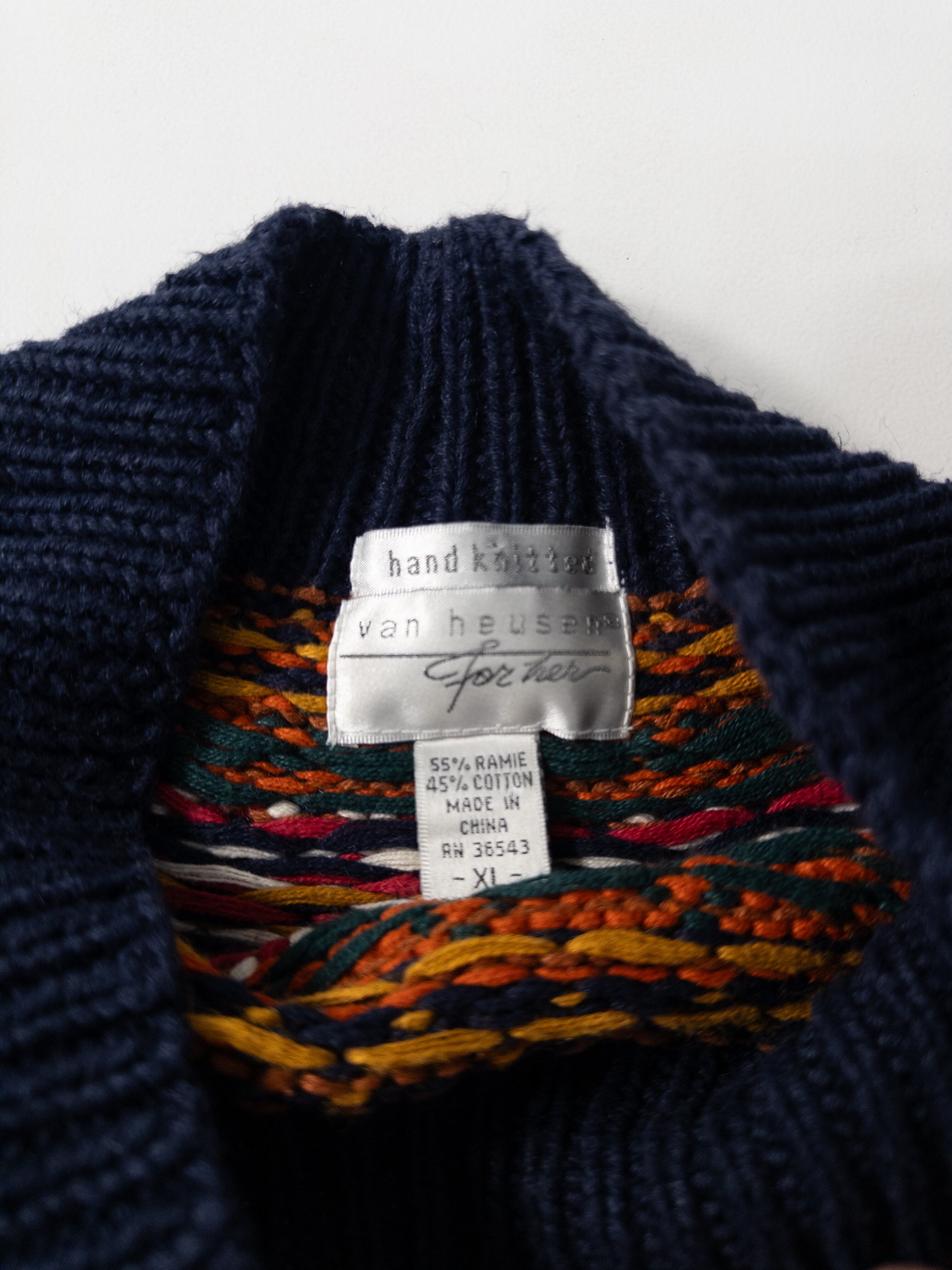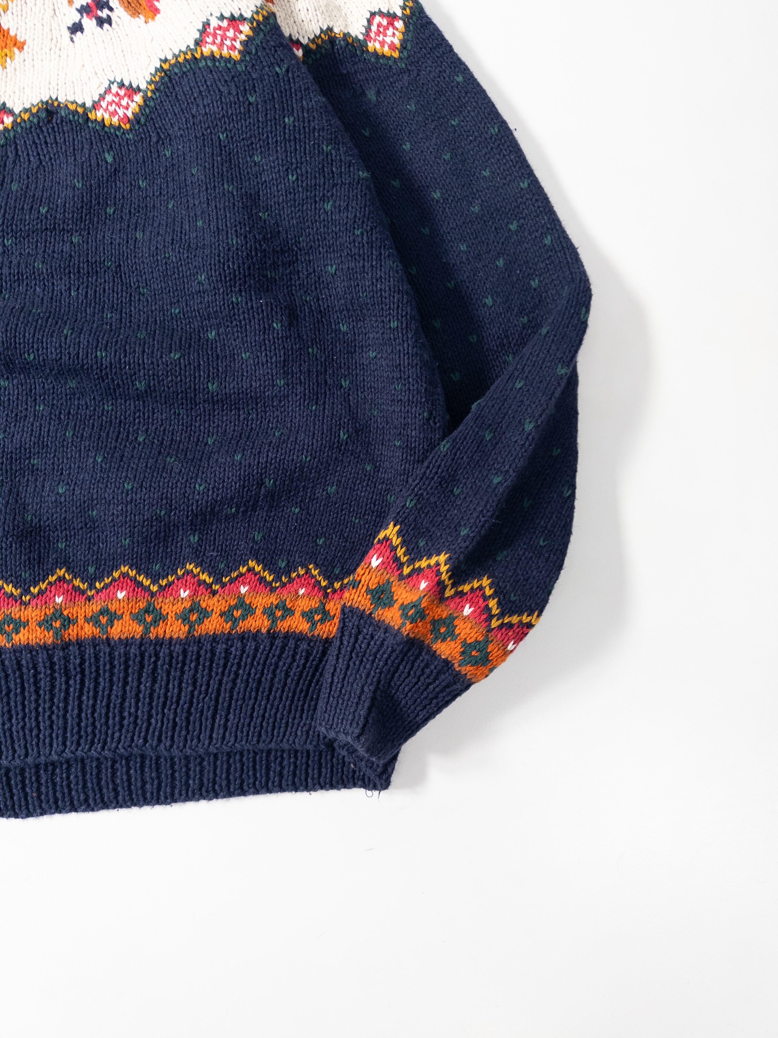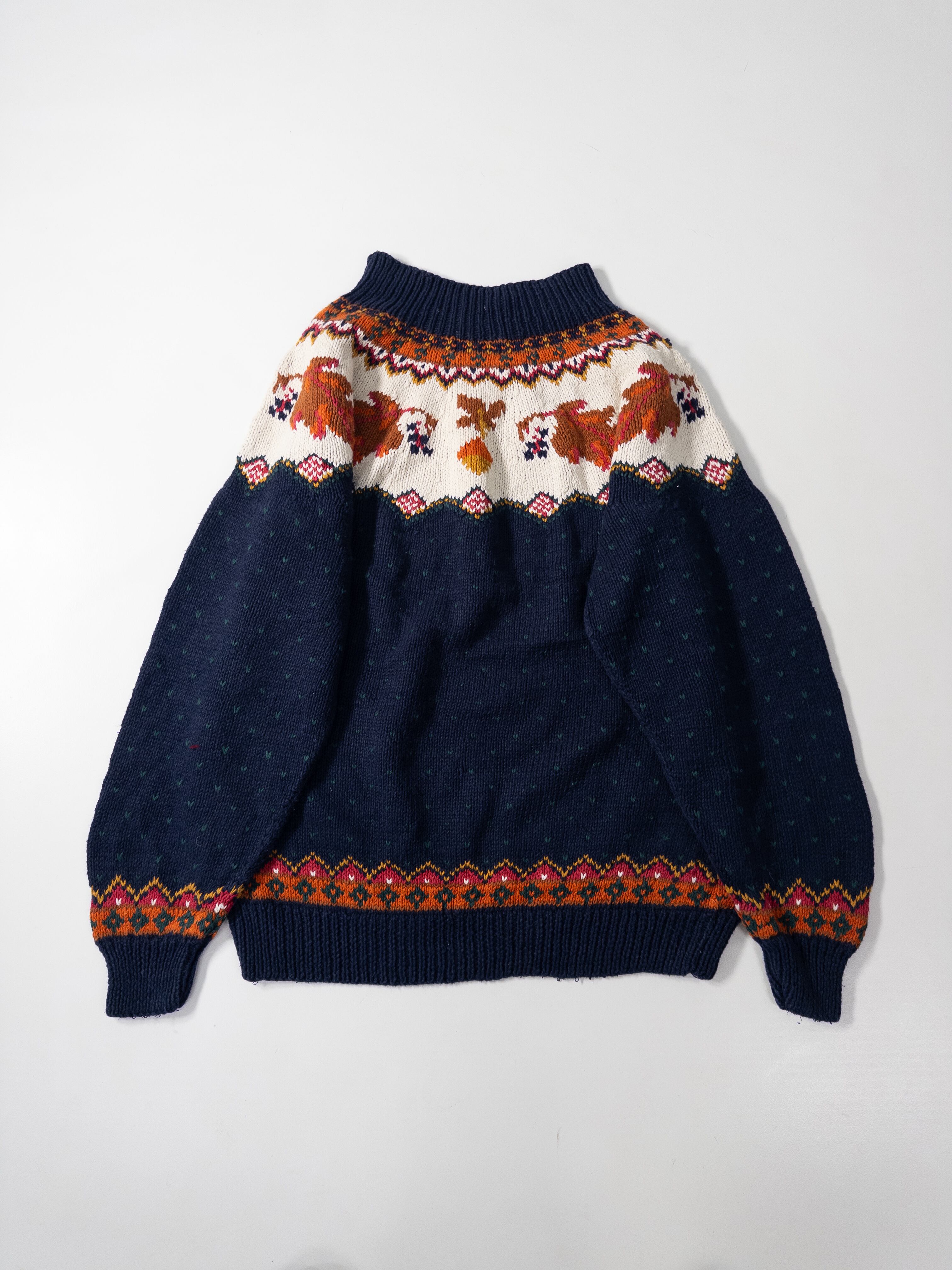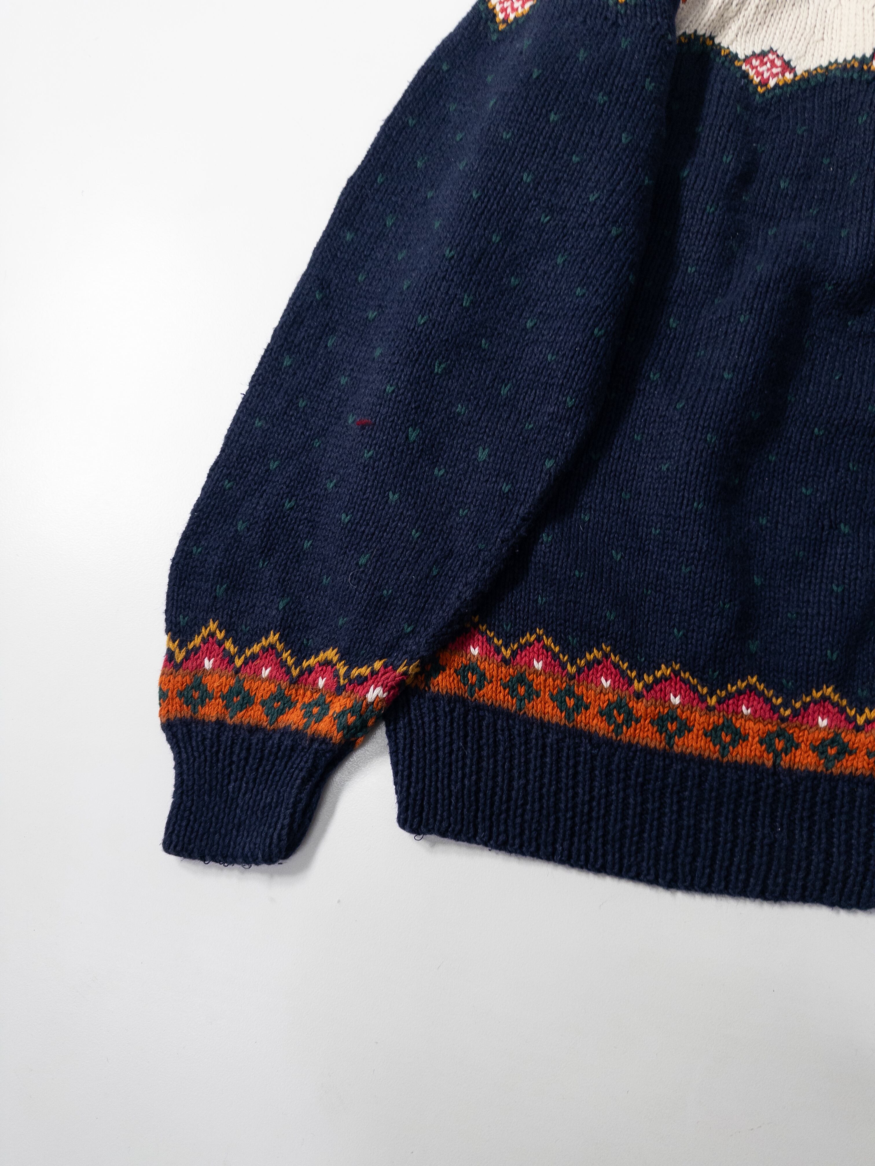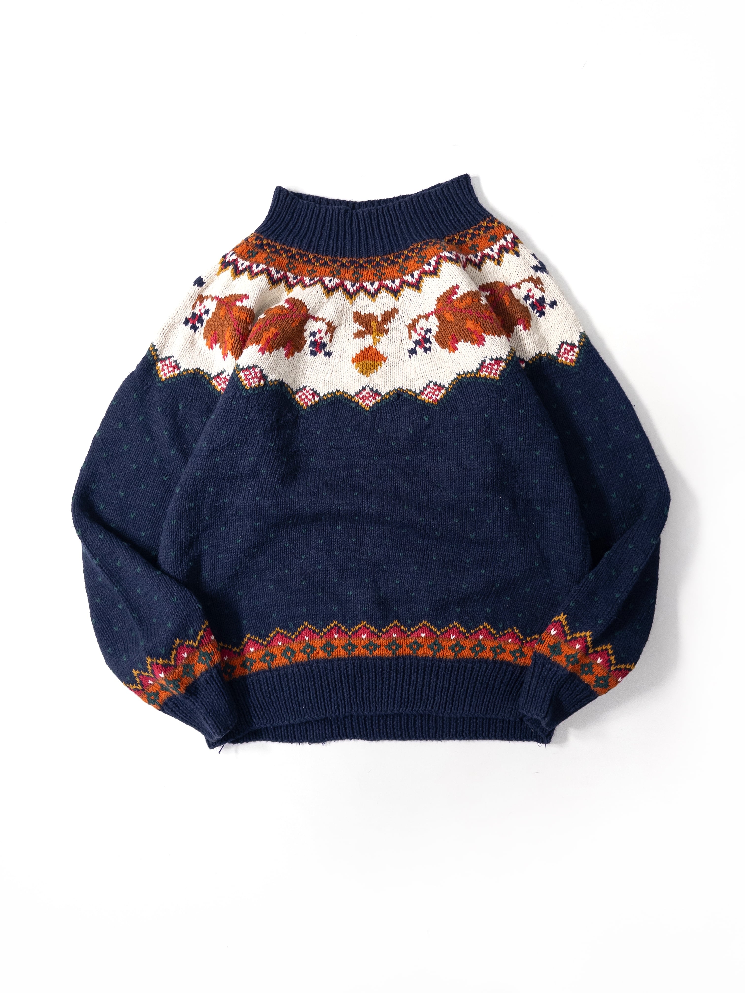 ノルディックの文脈を保ちながら、秋の枯葉みたいな暖色が差し込むハンドニット。