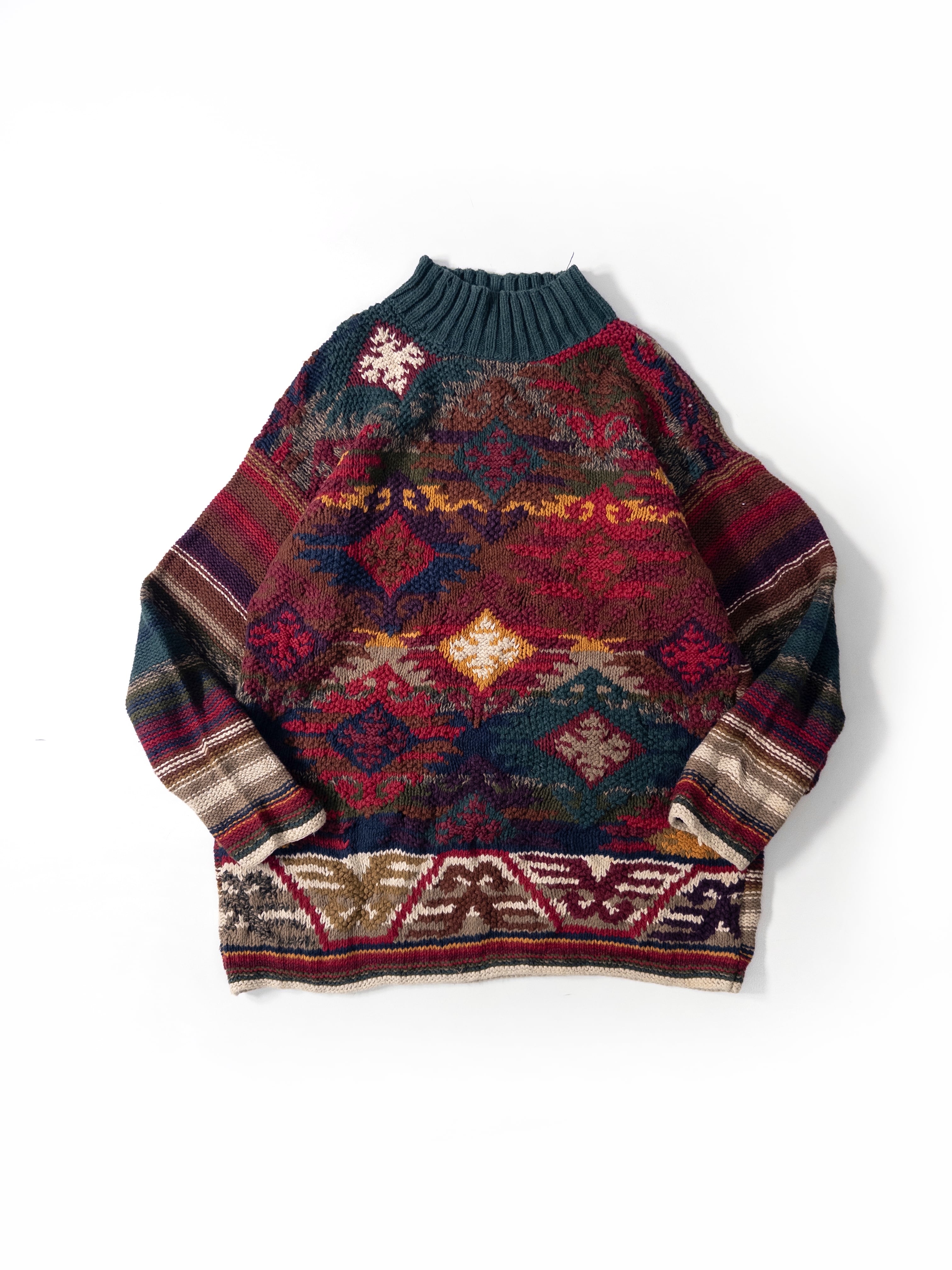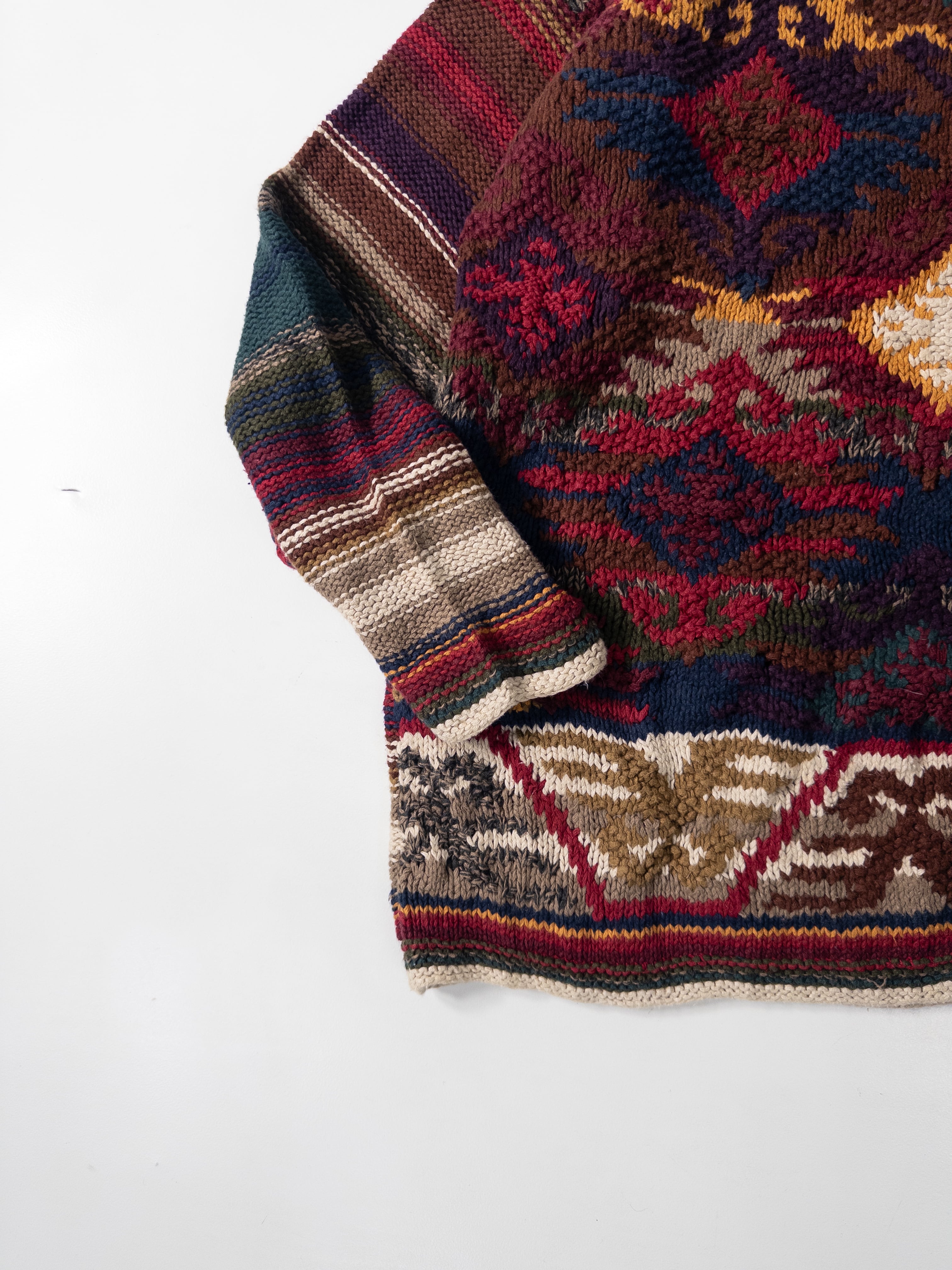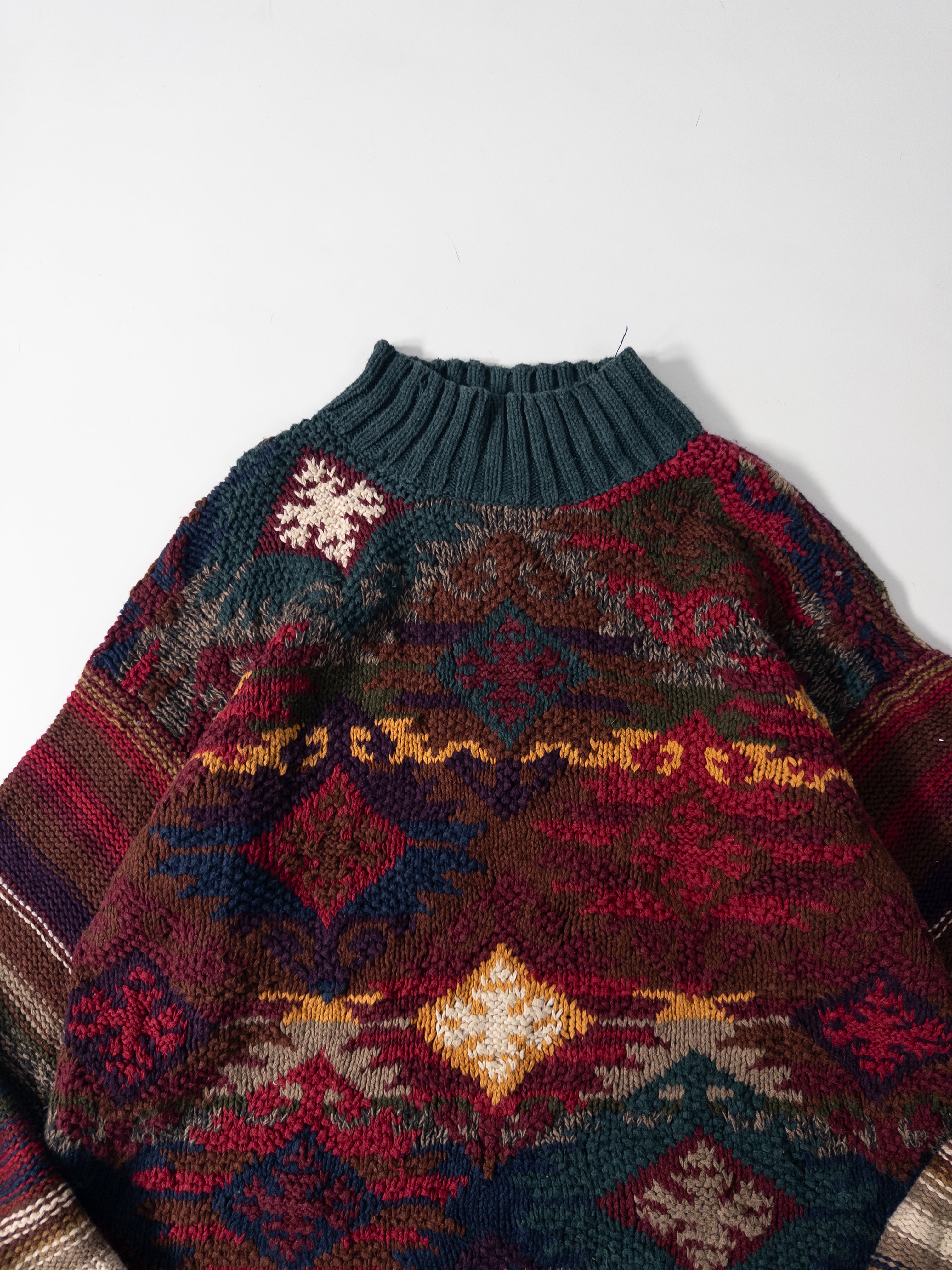 表と裏でまったく違う顔を持つ、二面性のあるネイティブジャカードニット。