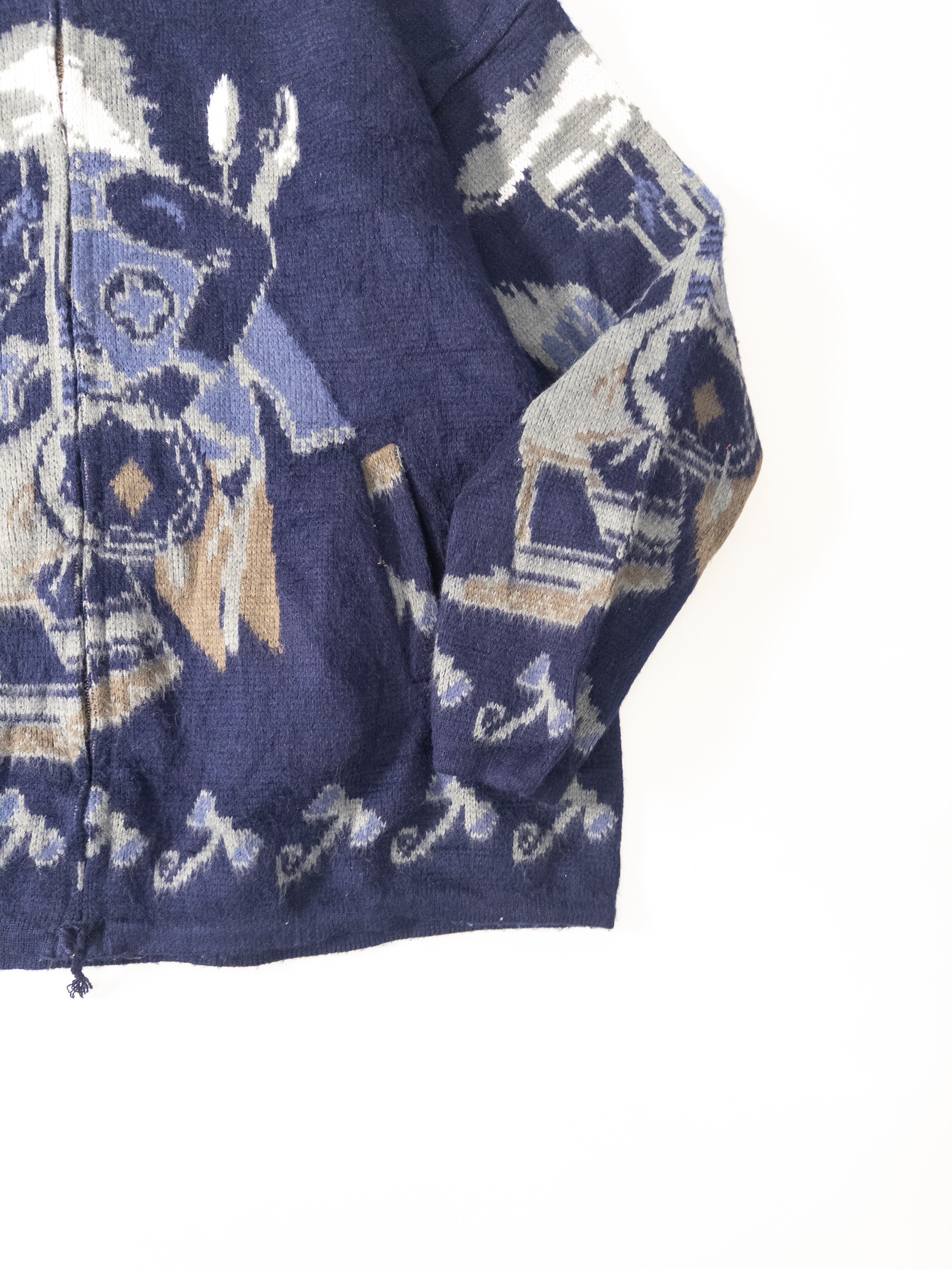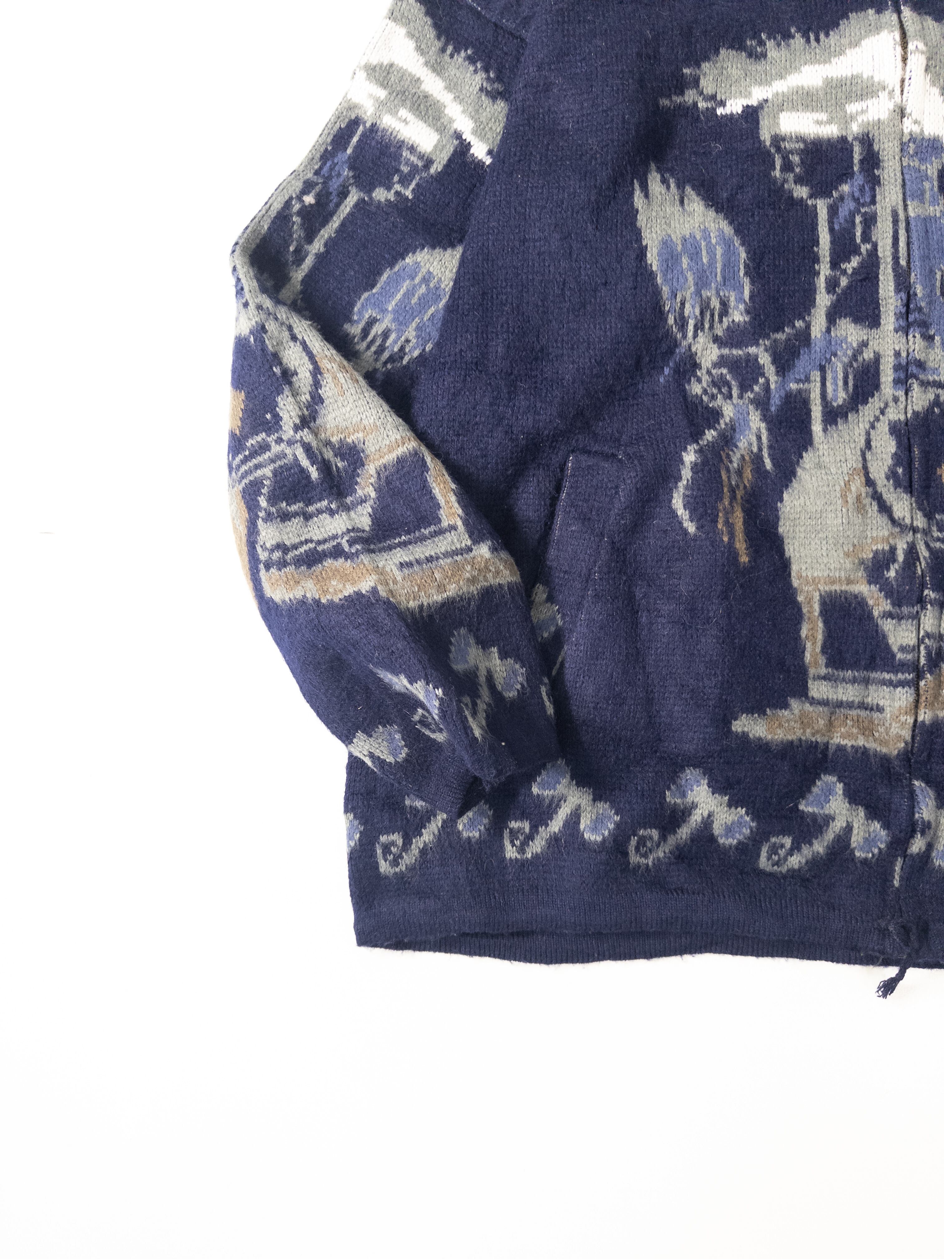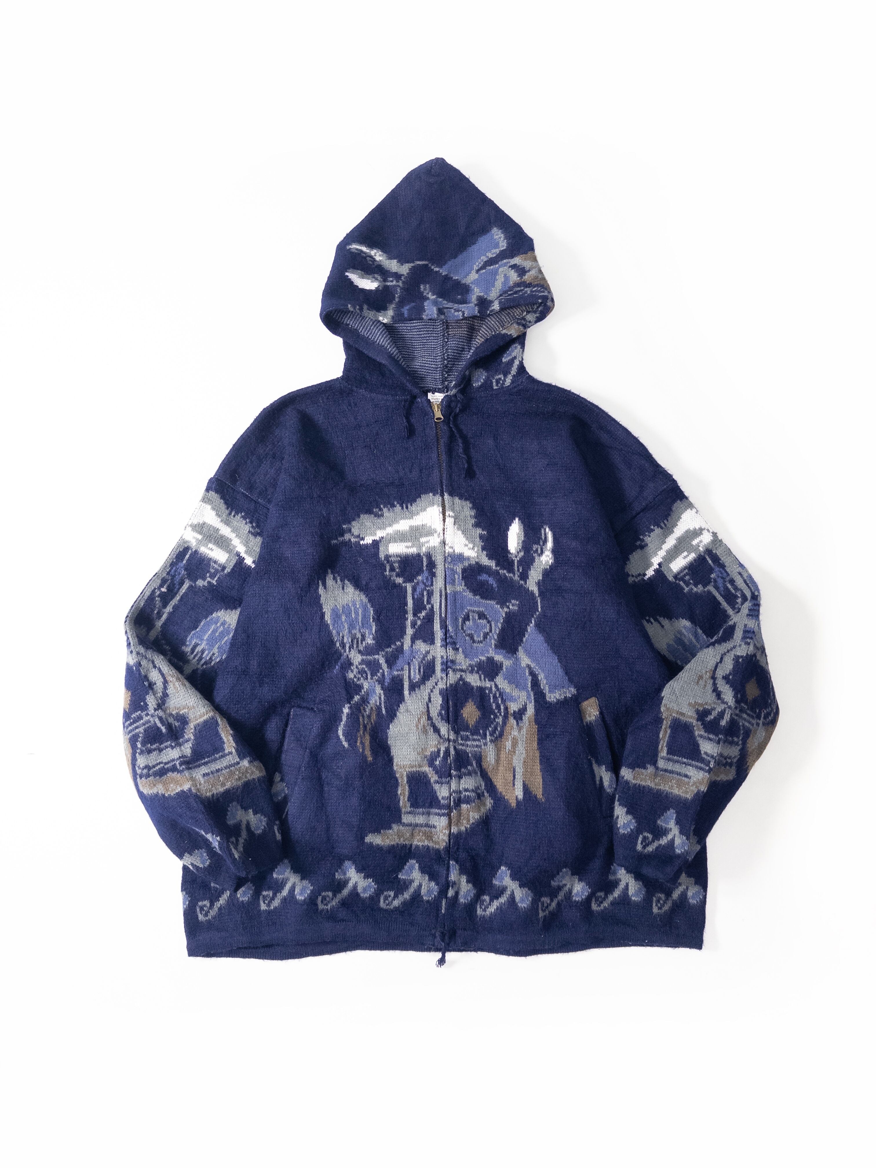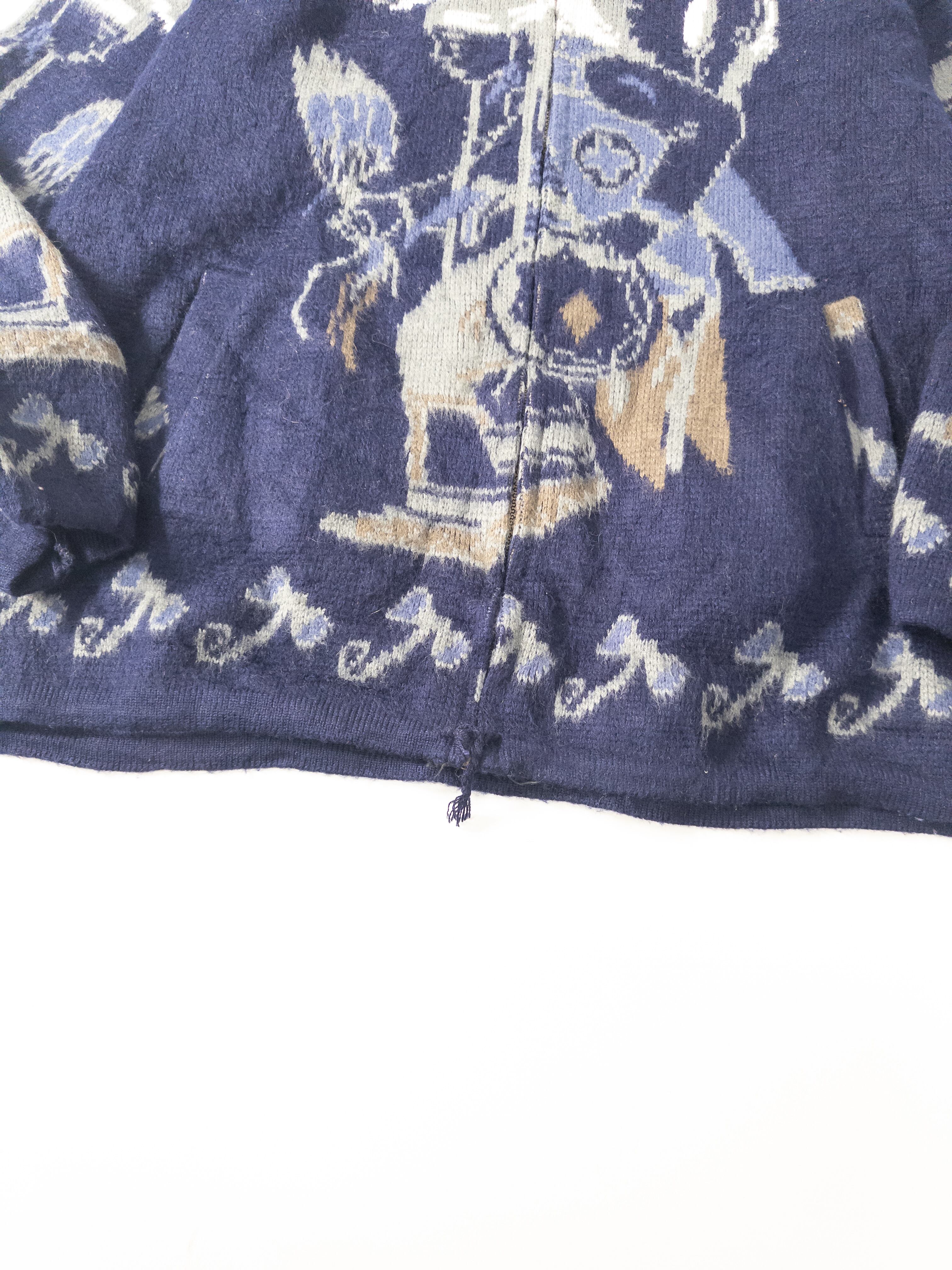 90s Ecuador Pattern Wool Blend Zip Hoodie