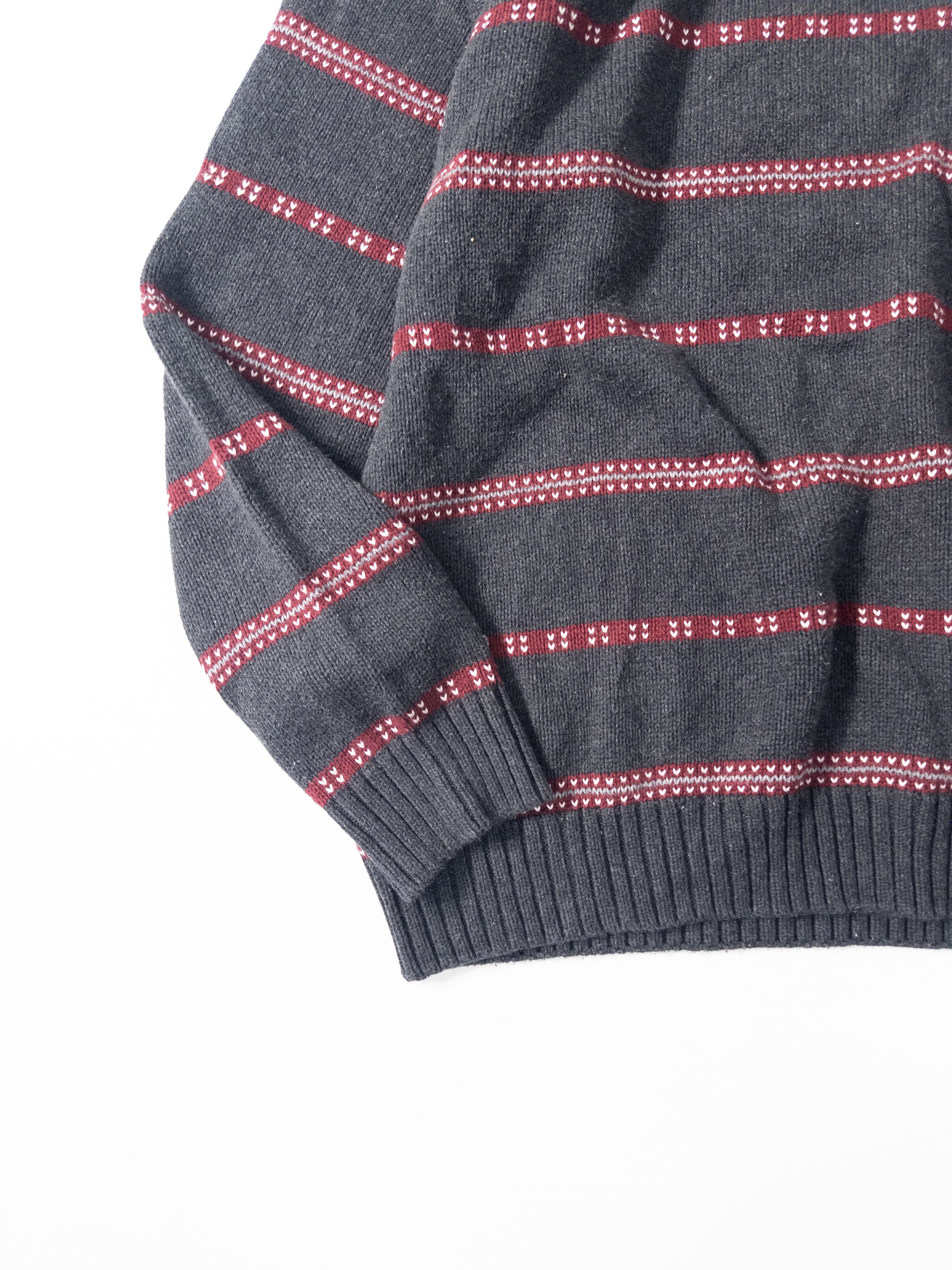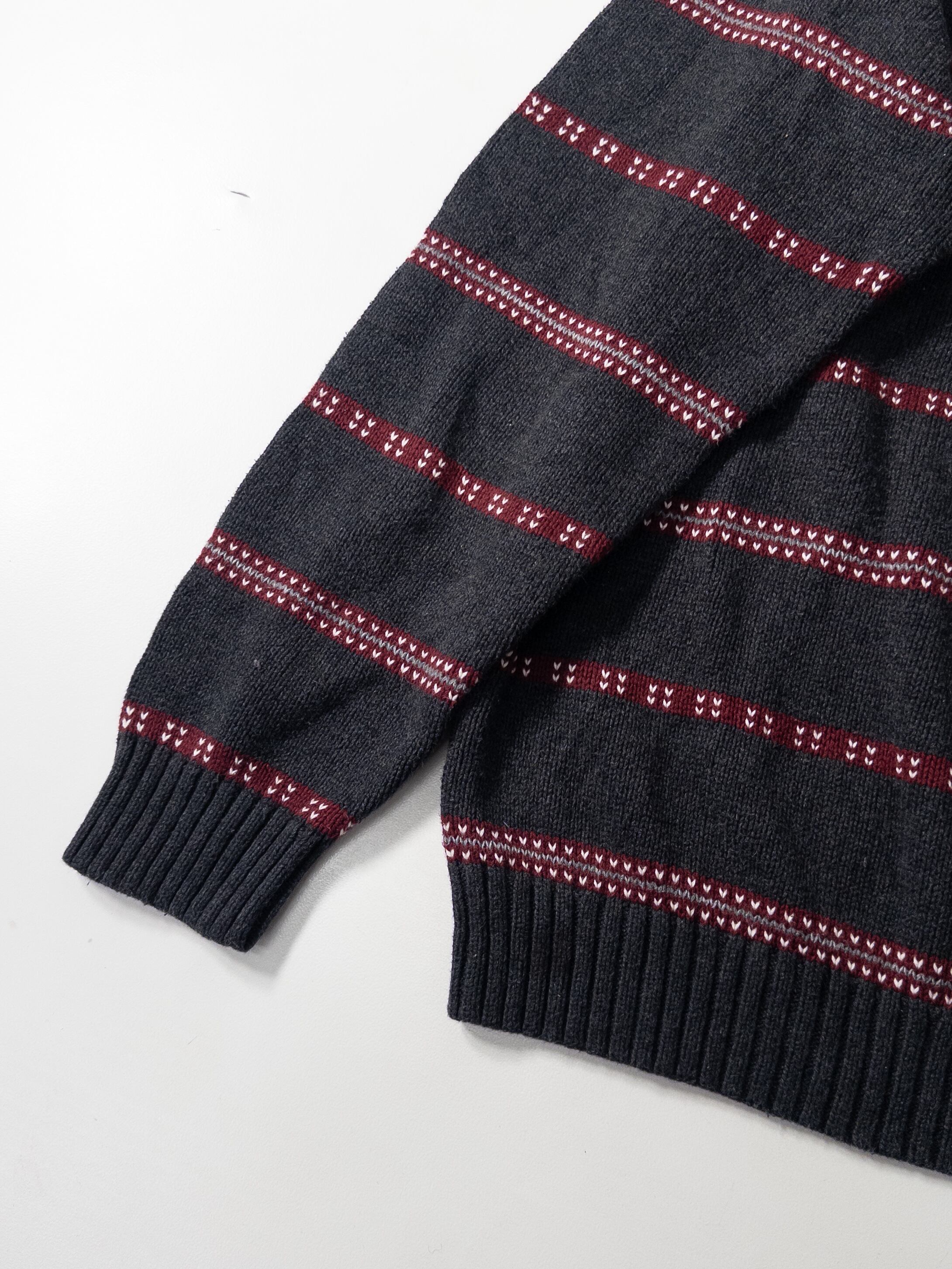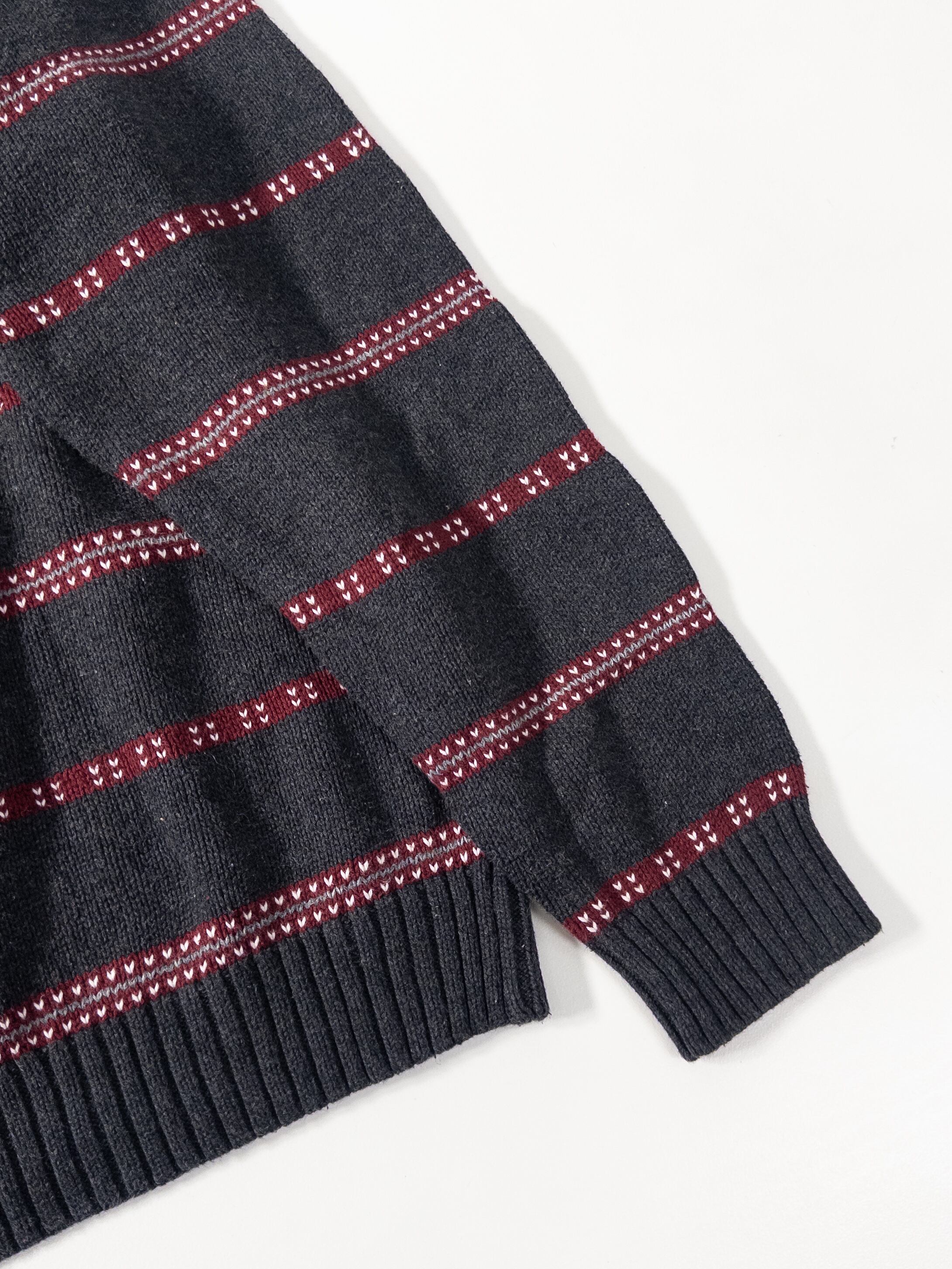 チャコールグレーに、赤と白の細かなピッチを重ねた