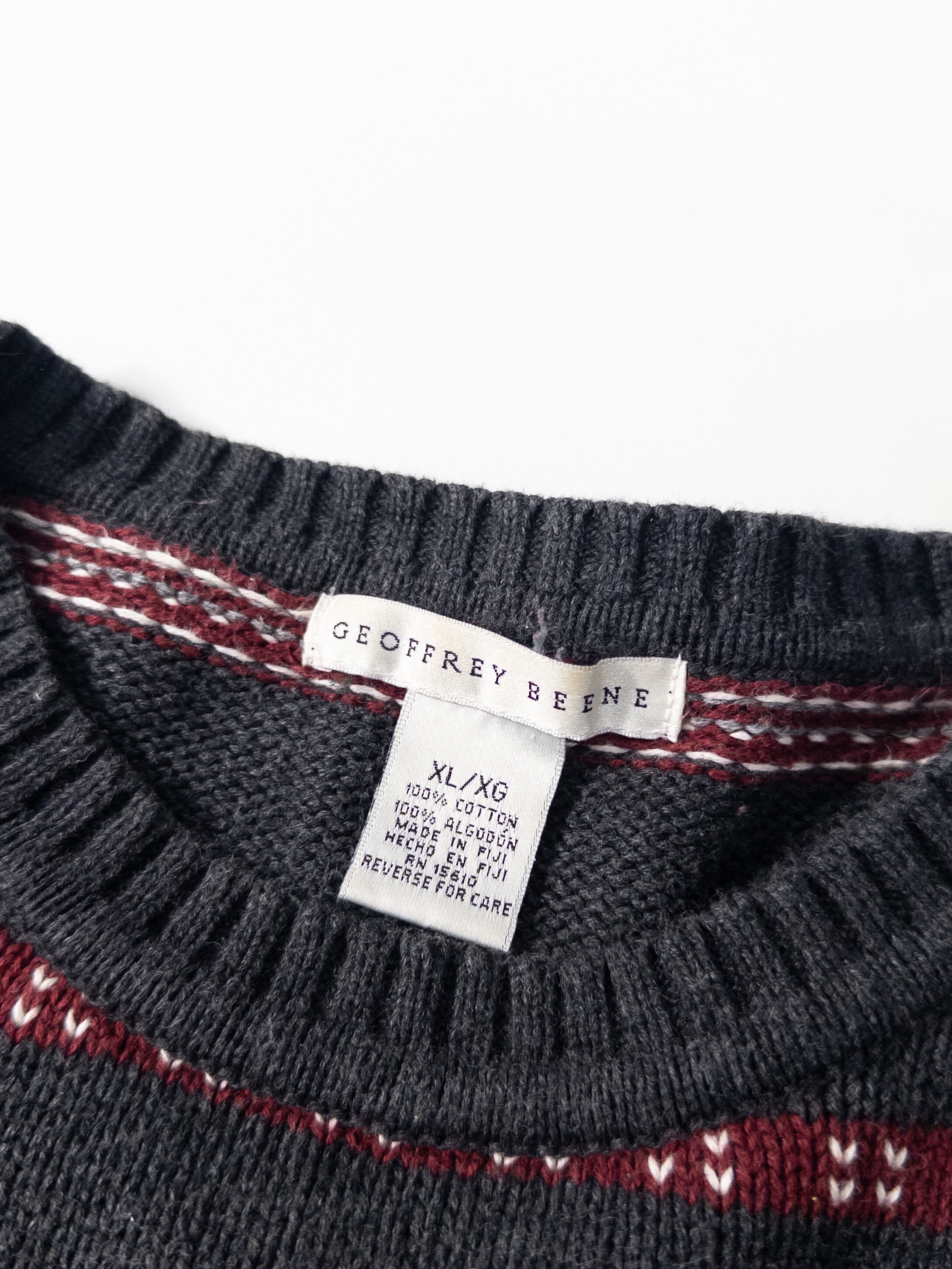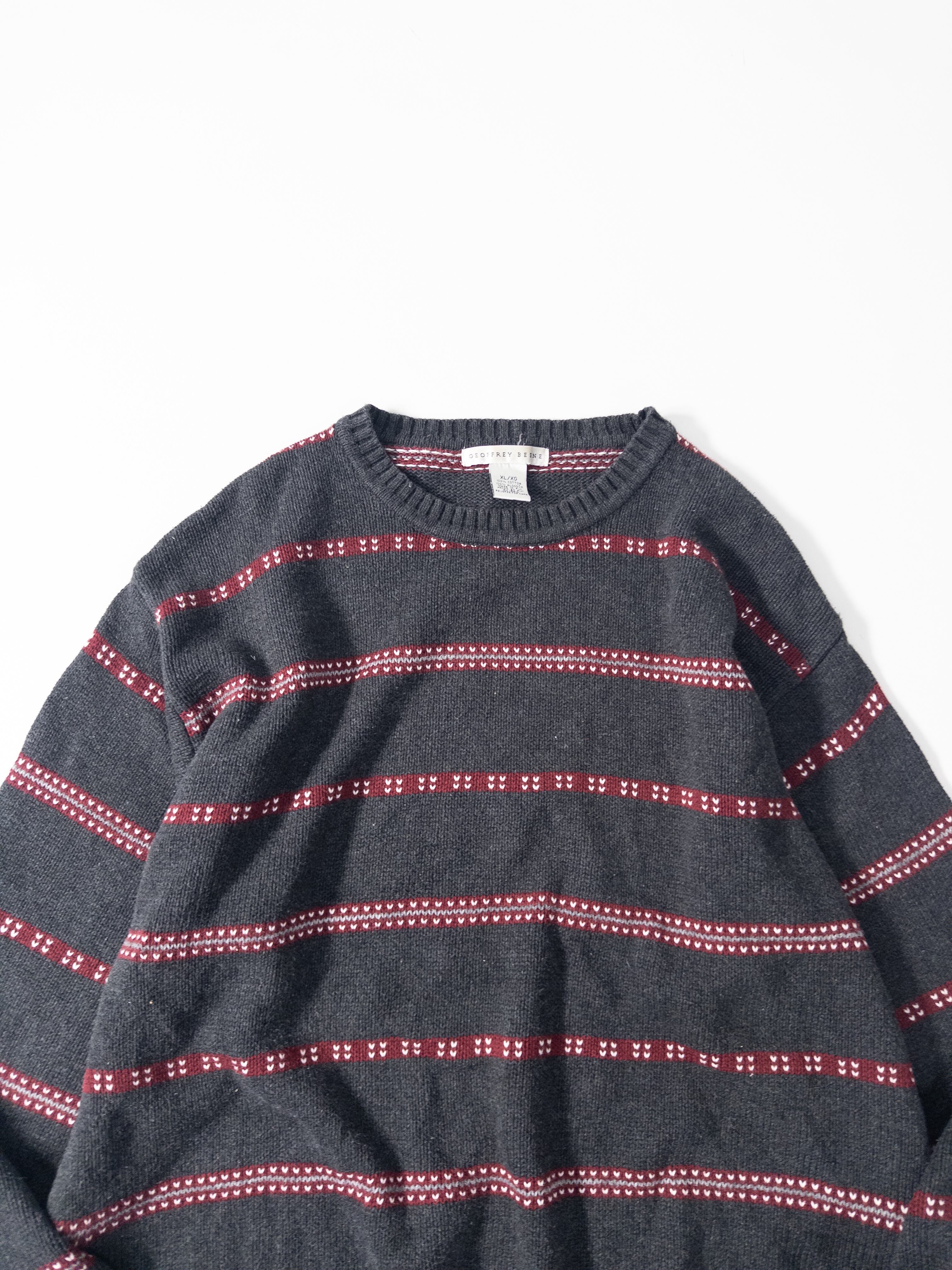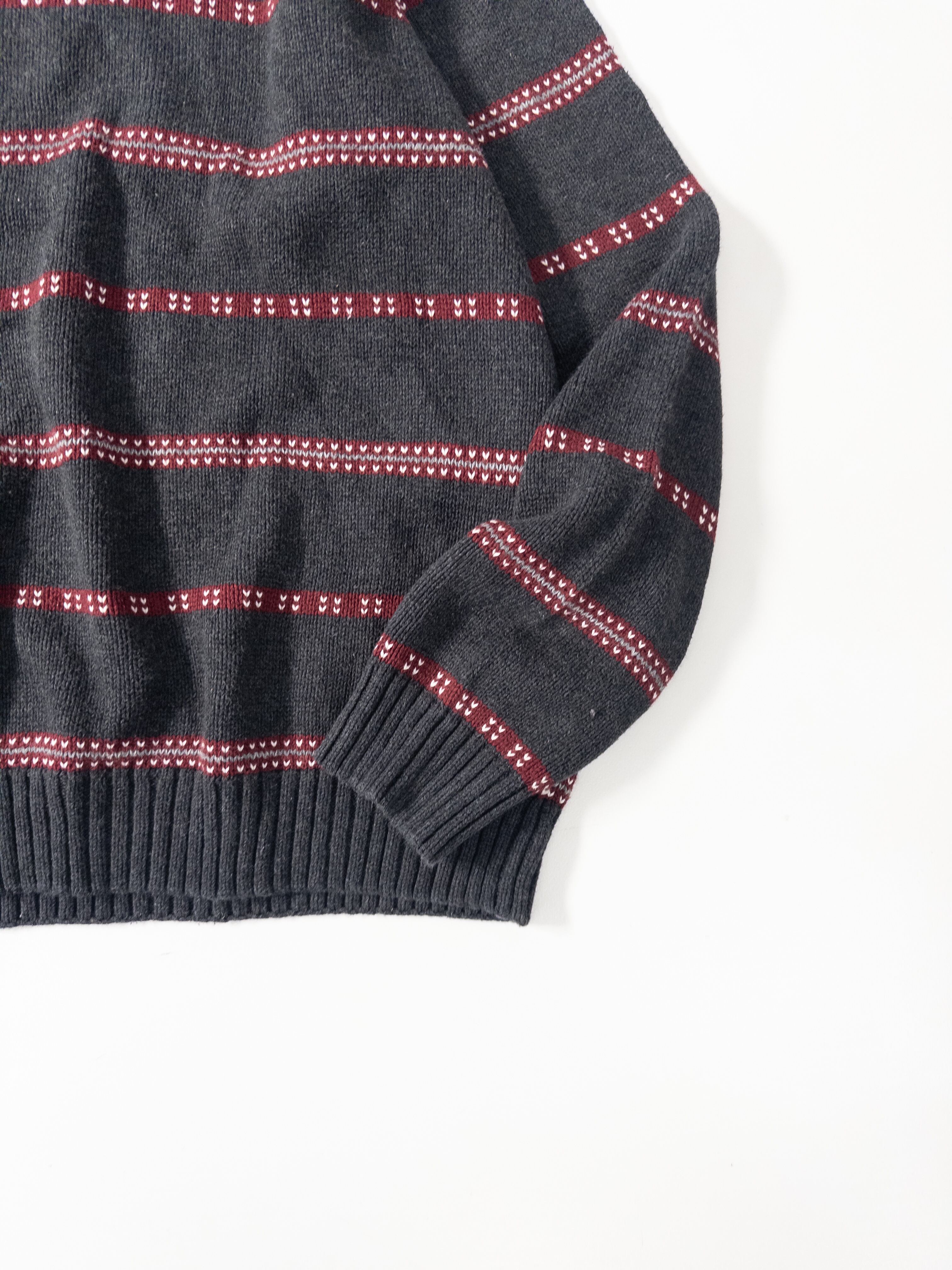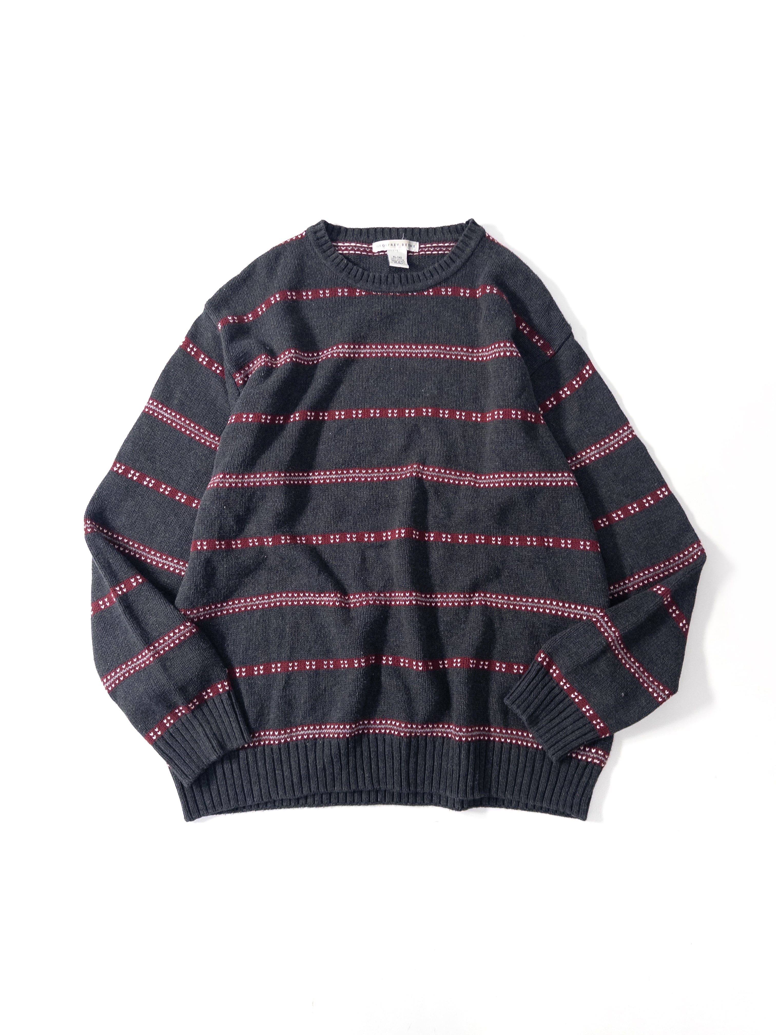 チャコールグレーに、赤と白の細かなピッチを重ねた