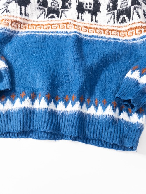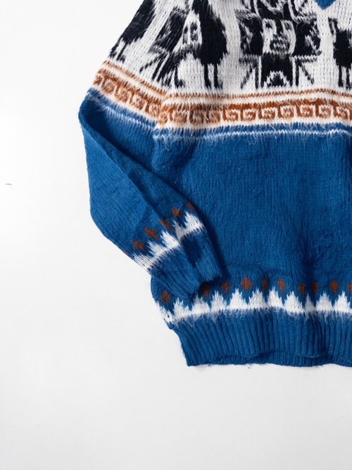 エクアドルの民芸ニットらしい、ラマ(アルパカ)モチーフを帯状にあしらった一枚。
