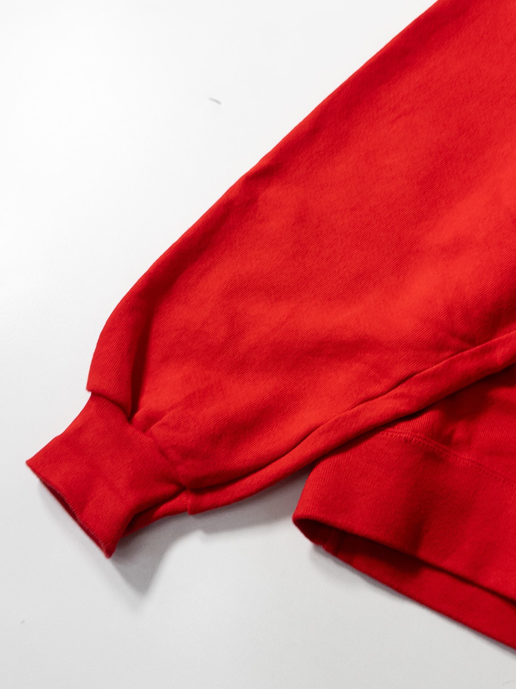 レッドのトーンも派手すぎず鈍さがあって、ミリタリーやデニムと混ぜたときに綺麗にハマる色。