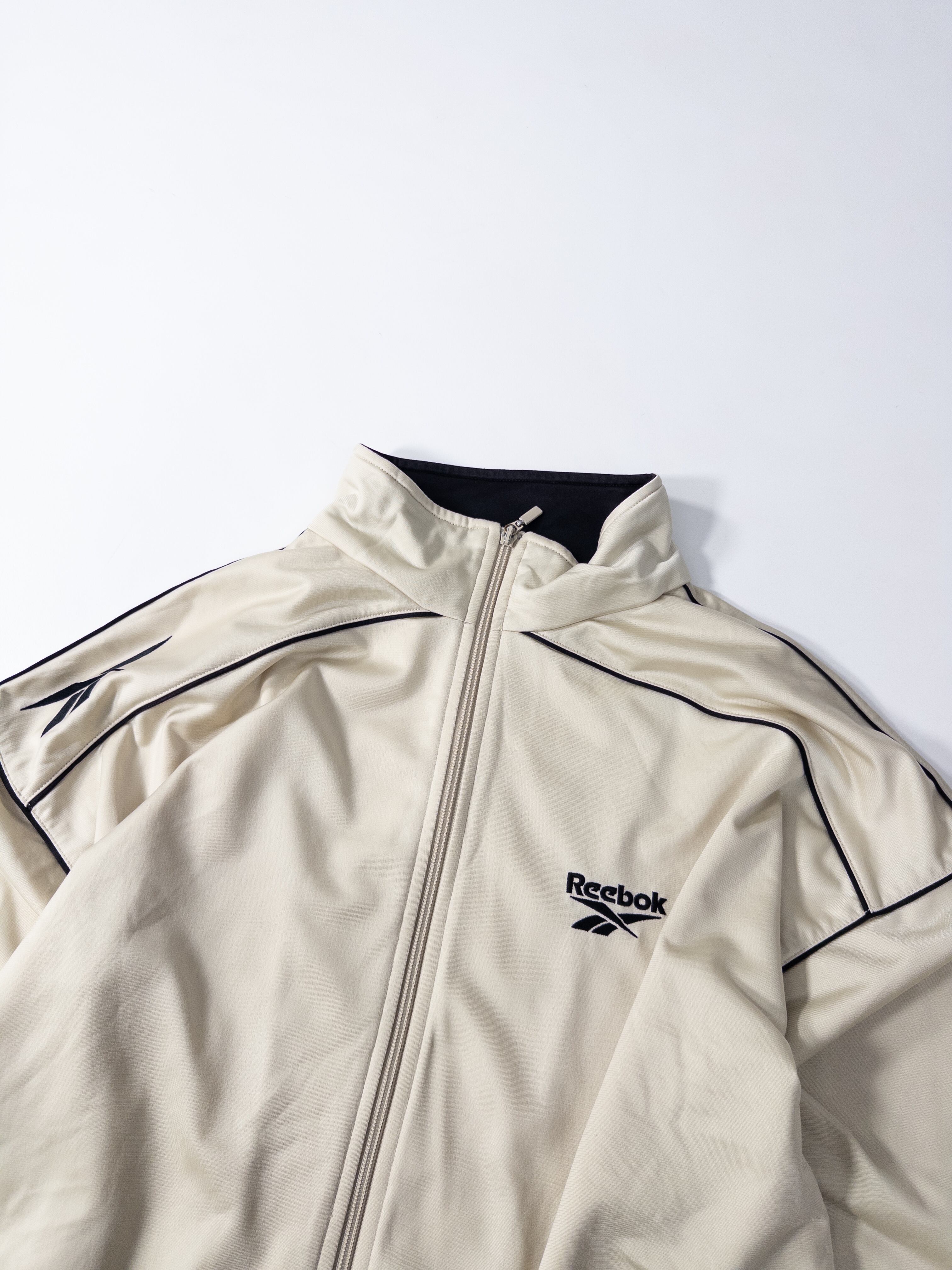 Reebok の00sムードをそのまま閉じ込めた、クリーム×ブラックのカラーバランスが上品なトラックジャケット。