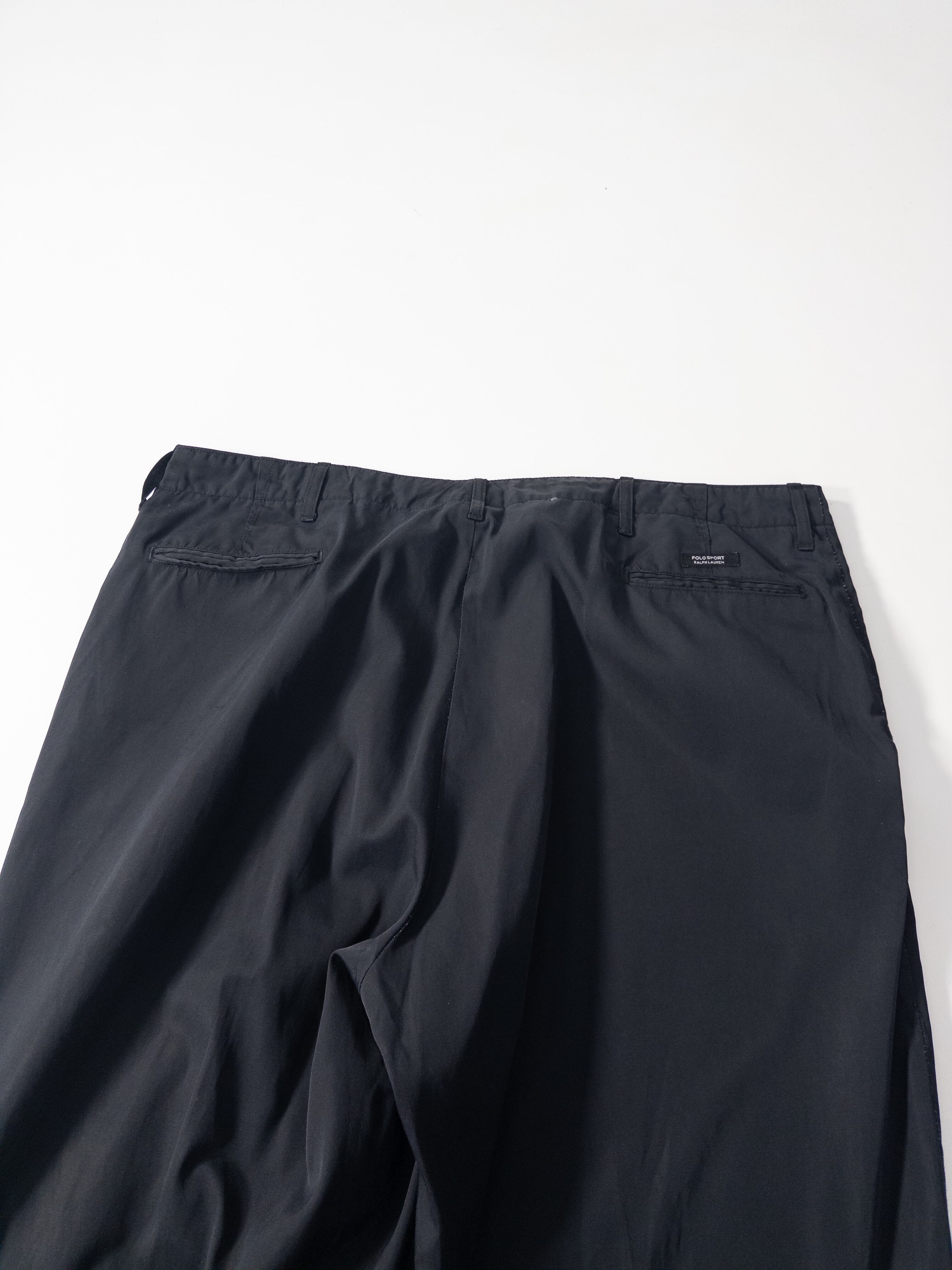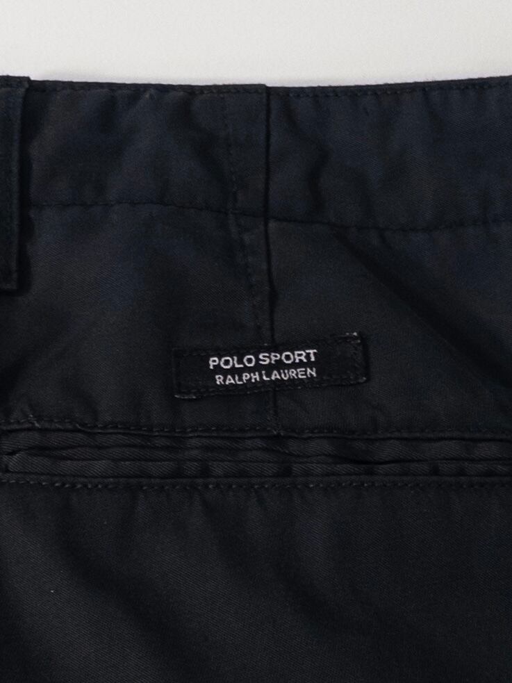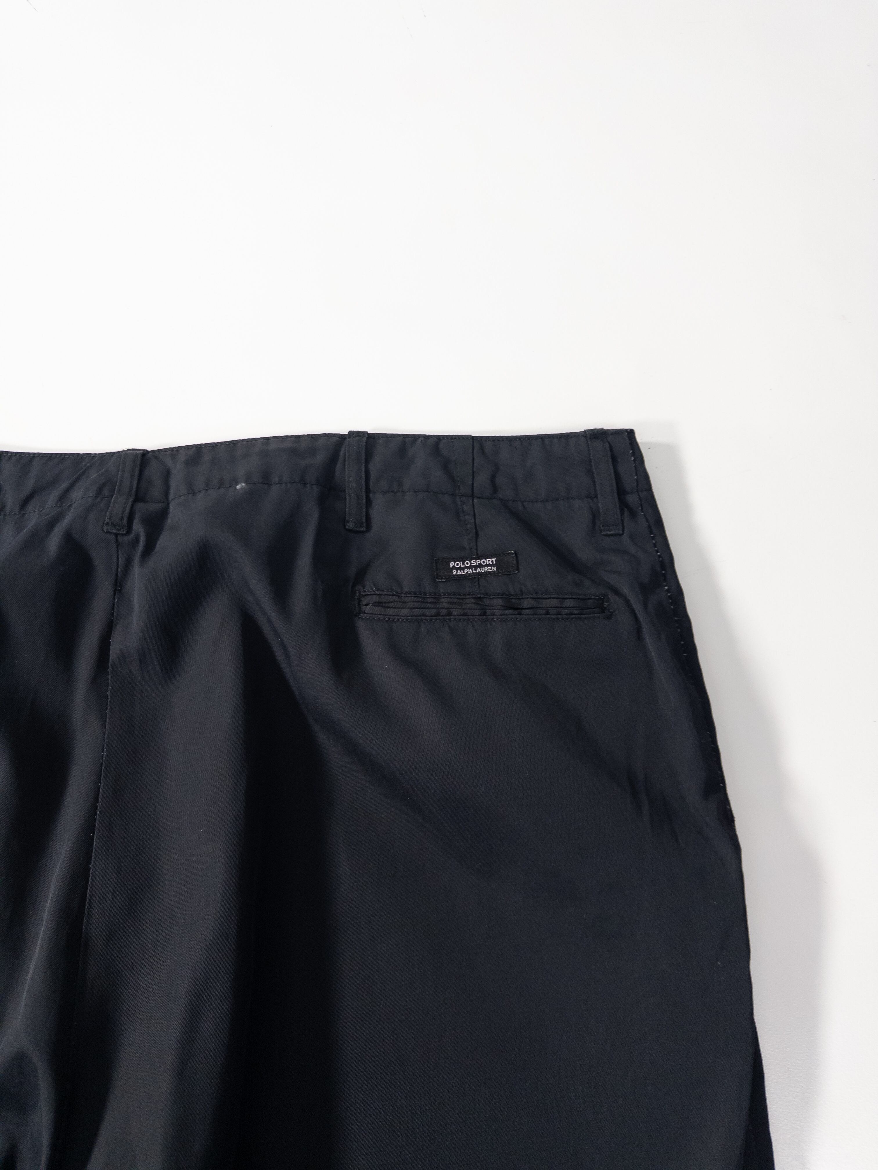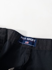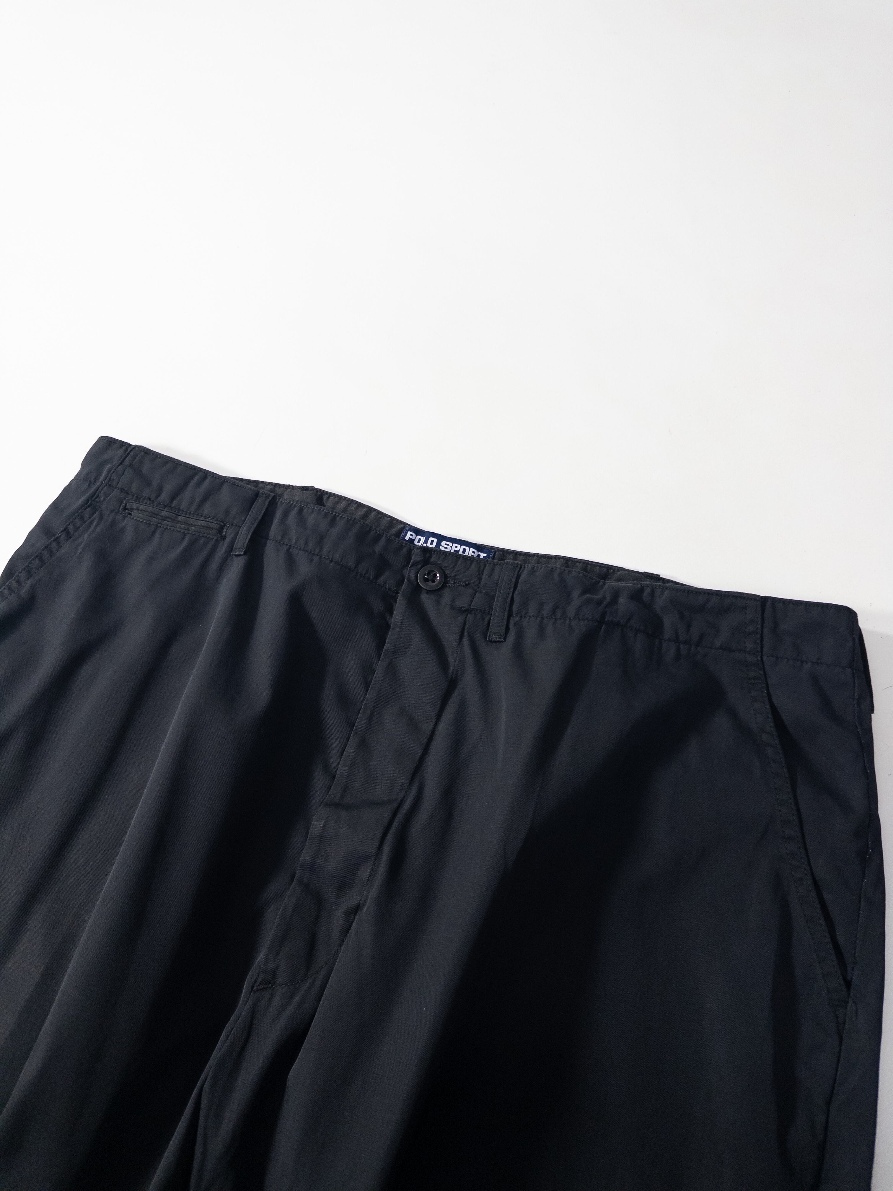 90年代のPOLO SPORTらしい、スポーツ由来の素材感をスラックスに落とし込んだ一本。ナイロン×コットンの混紡生地は、化繊特有の軽さとコットンの落ち着きを併せ持ち、見た目はスラックスでも穿き心地はかなり軽快。いわゆる「テック」ほど主張せず、あくまで日常着として成立するバランス感がPOLO SPORTらしいポイントです。