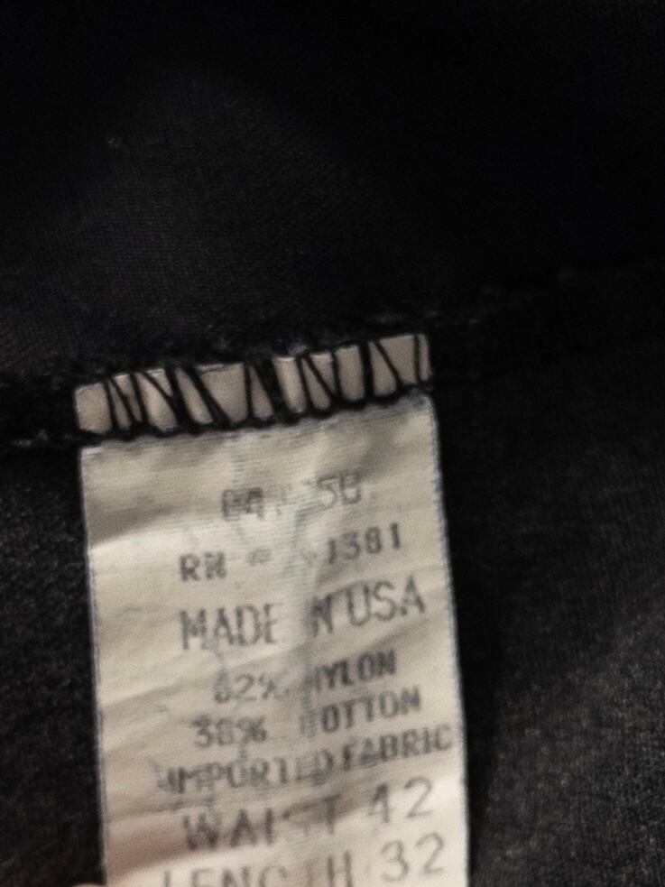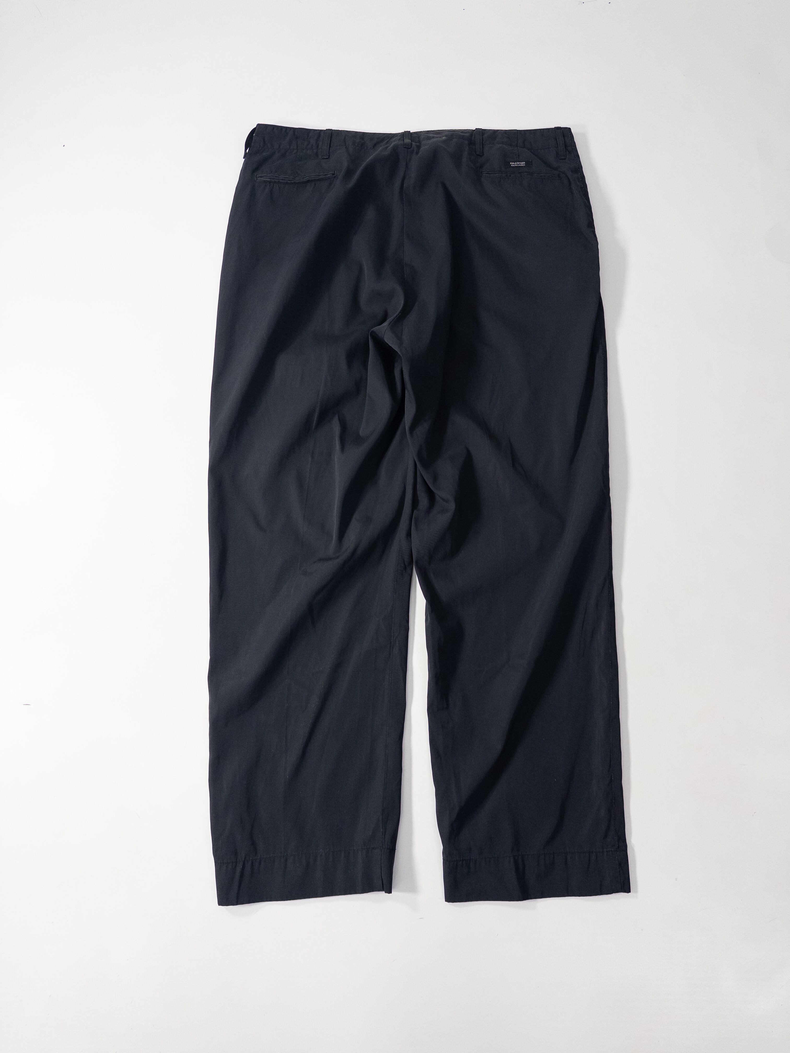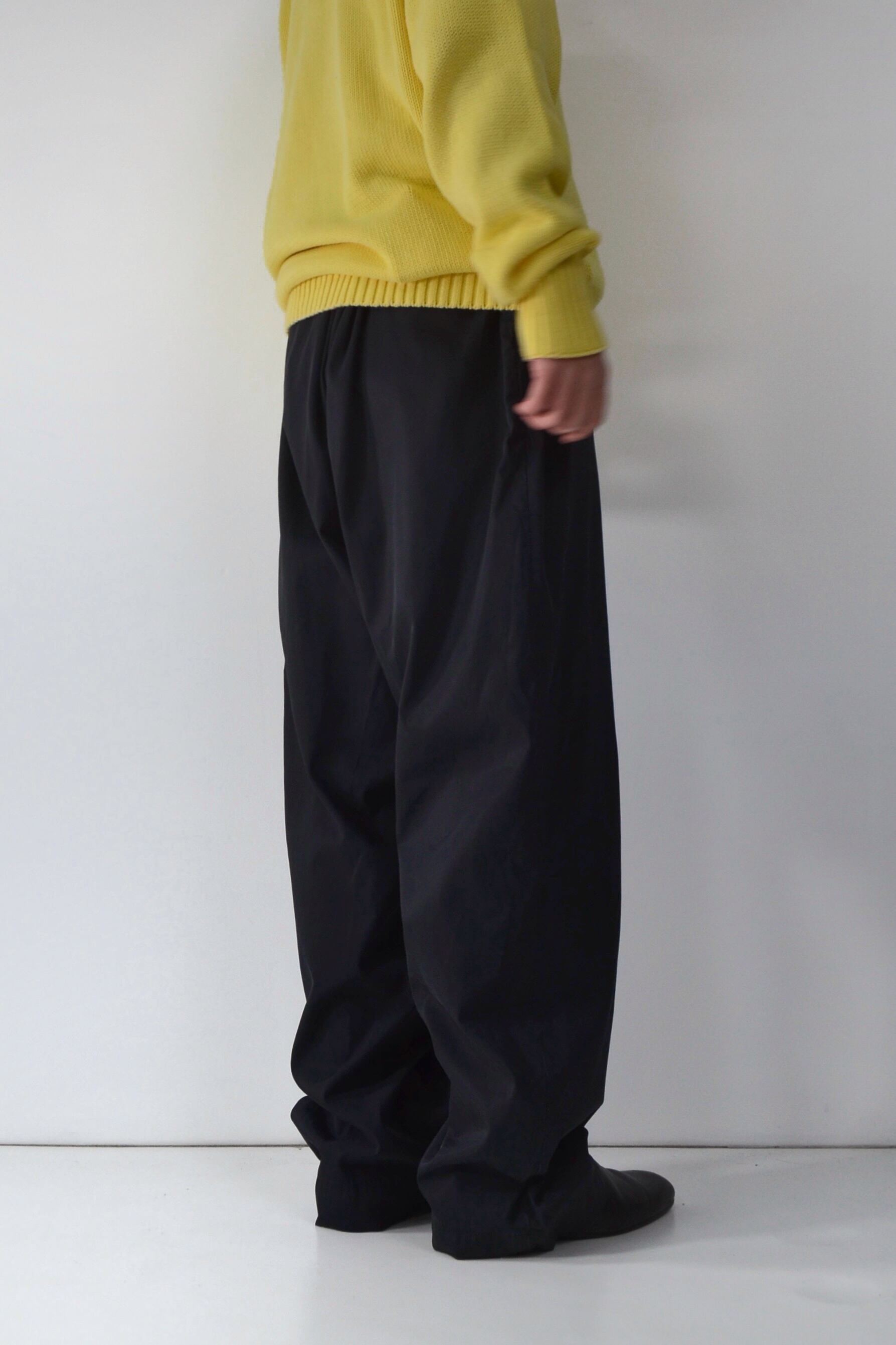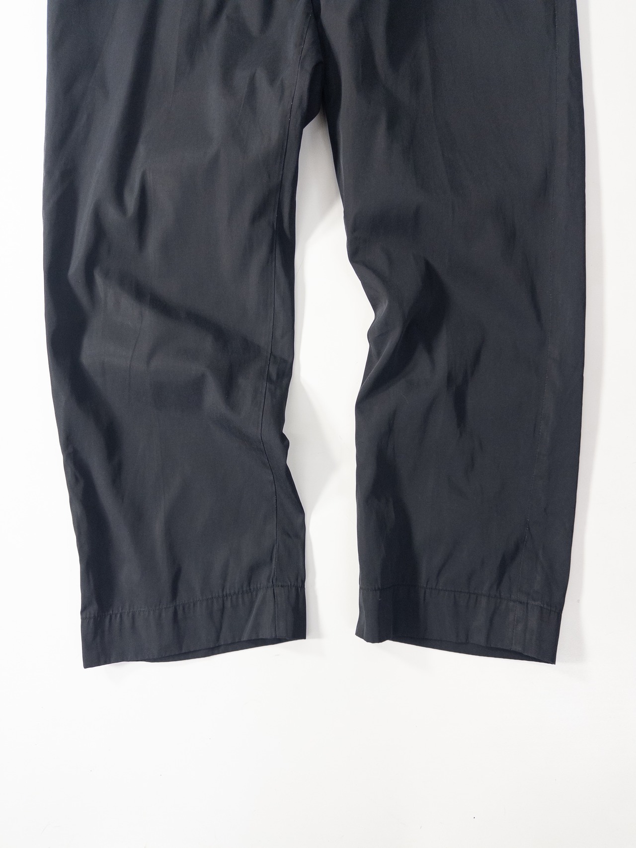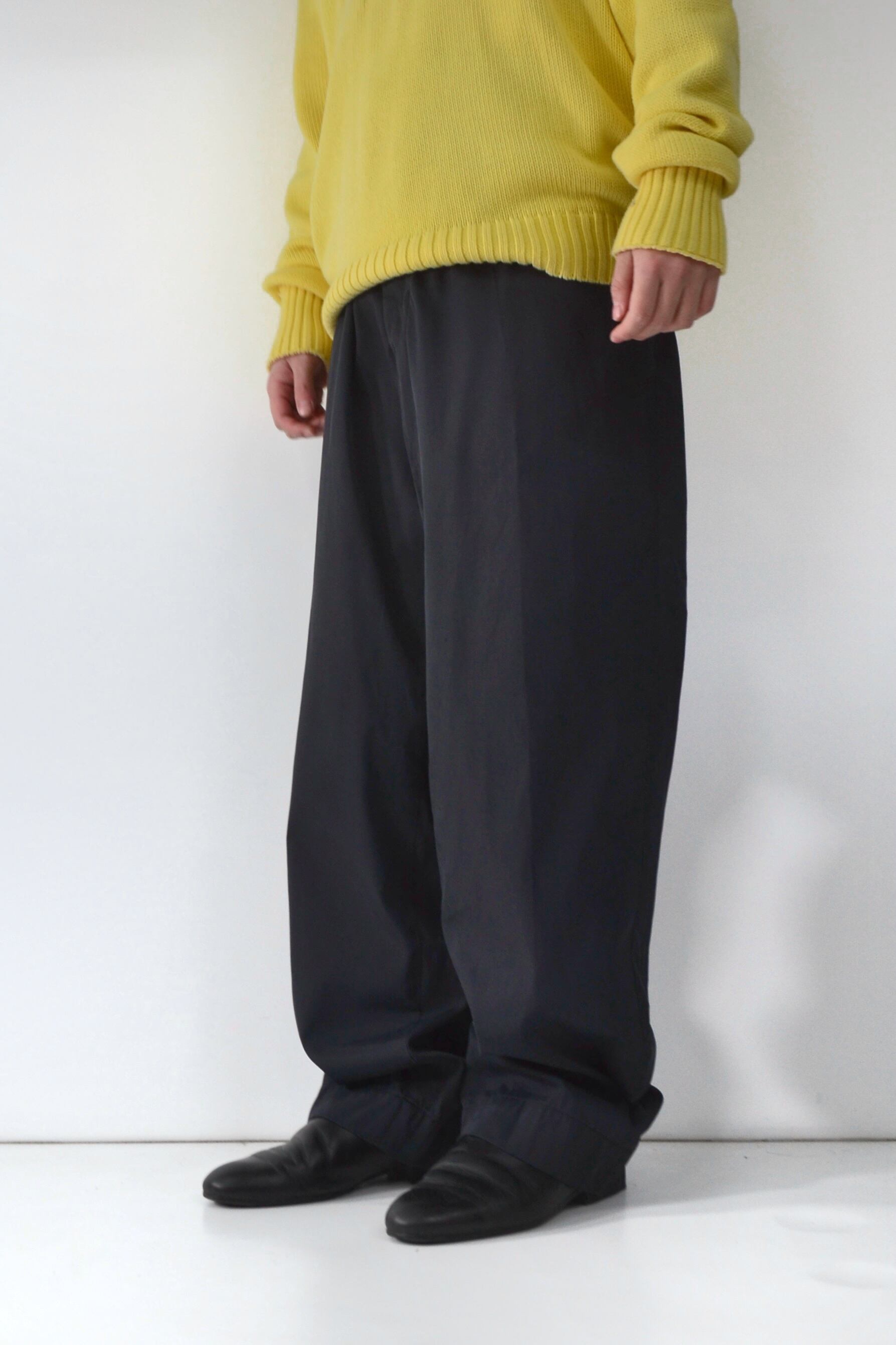 90年代のPOLO SPORTらしい、スポーツ由来の素材感をスラックスに落とし込んだ一本。ナイロン×コットンの混紡生地は、化繊特有の軽さとコットンの落ち着きを併せ持ち、見た目はスラックスでも穿き心地はかなり軽快。いわゆる「テック」ほど主張せず、あくまで日常着として成立するバランス感がPOLO SPORTらしいポイントです。