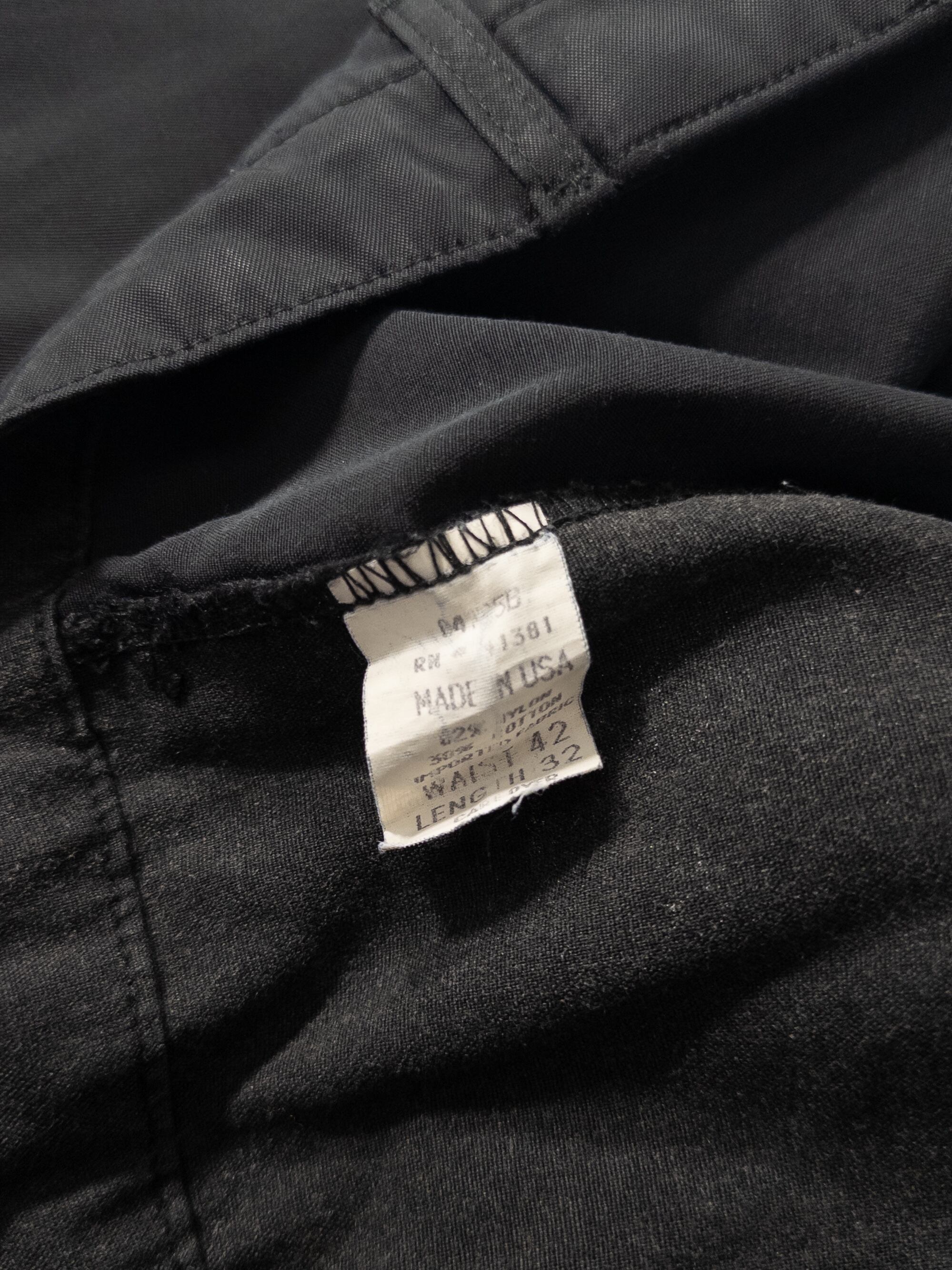 USA製の個体で、当時のアウトドア・スポーツ文脈とプレッピーが交差していた時代背景を感じさせる仕上がり。シャツやニットでクリーンにも、スウェットやフリースで外しても成立する、ちょうどいい“抜けたスラックス”です。