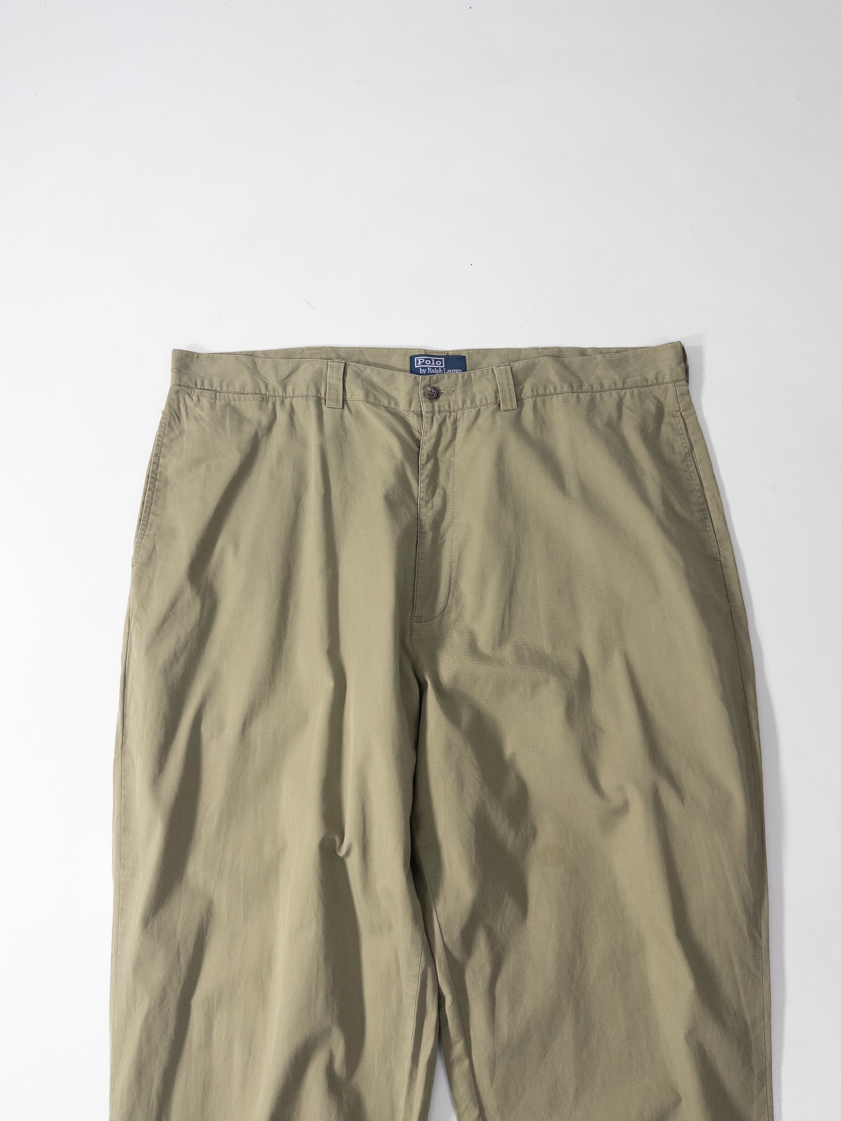あえて40インチ前後のビッグサイズを選び、ウエストを絞ってワイドに履く前提の一本。