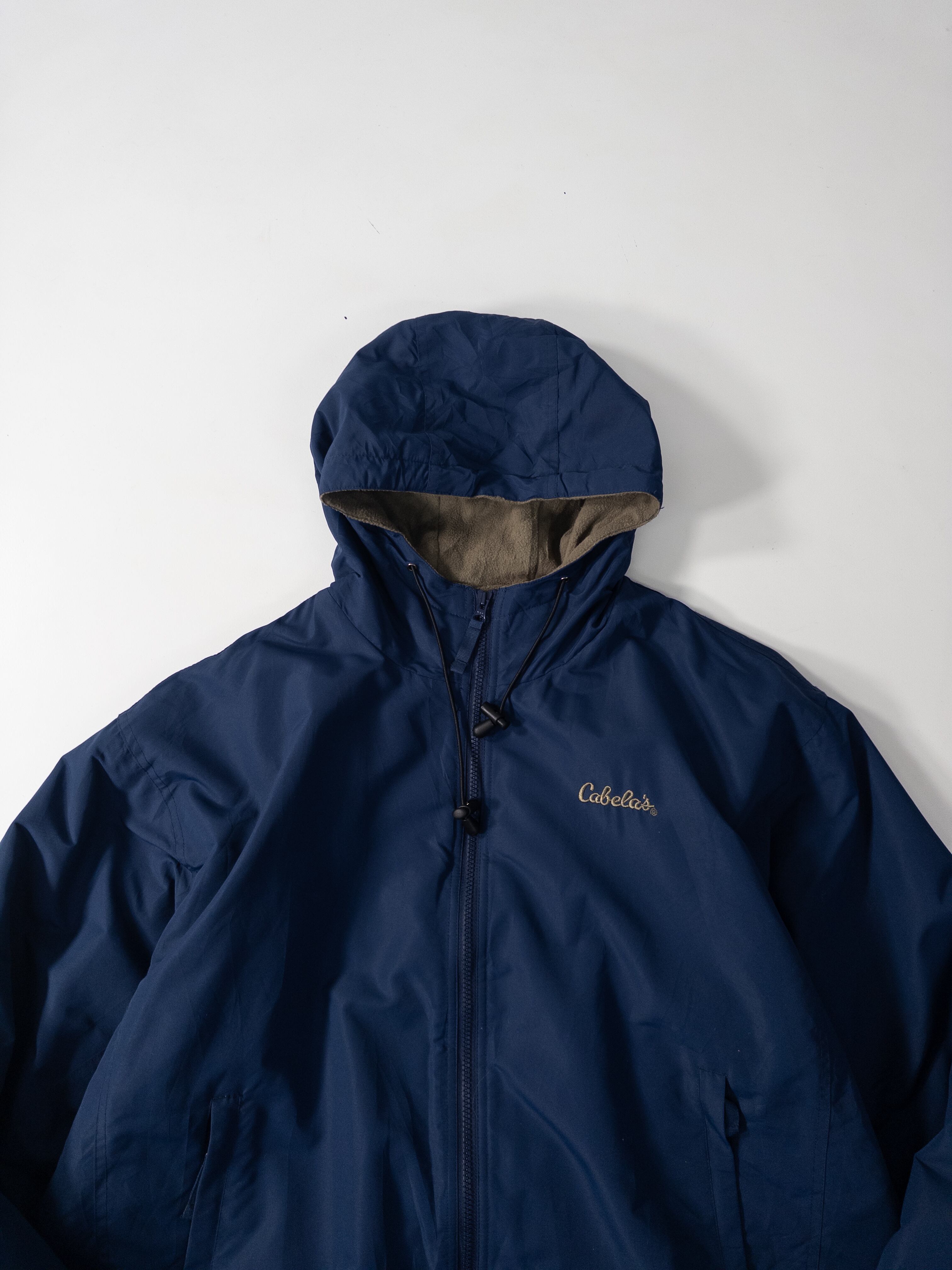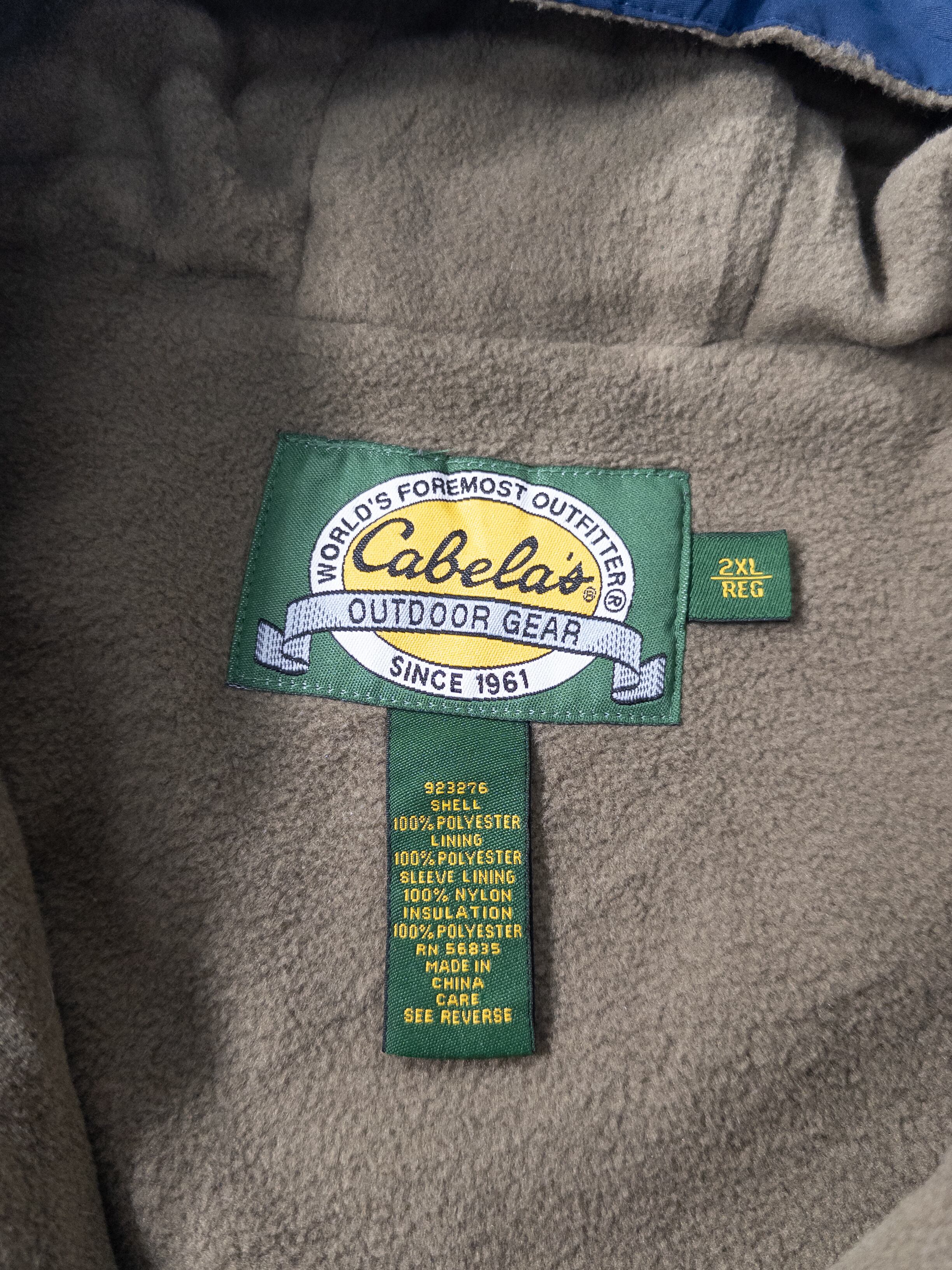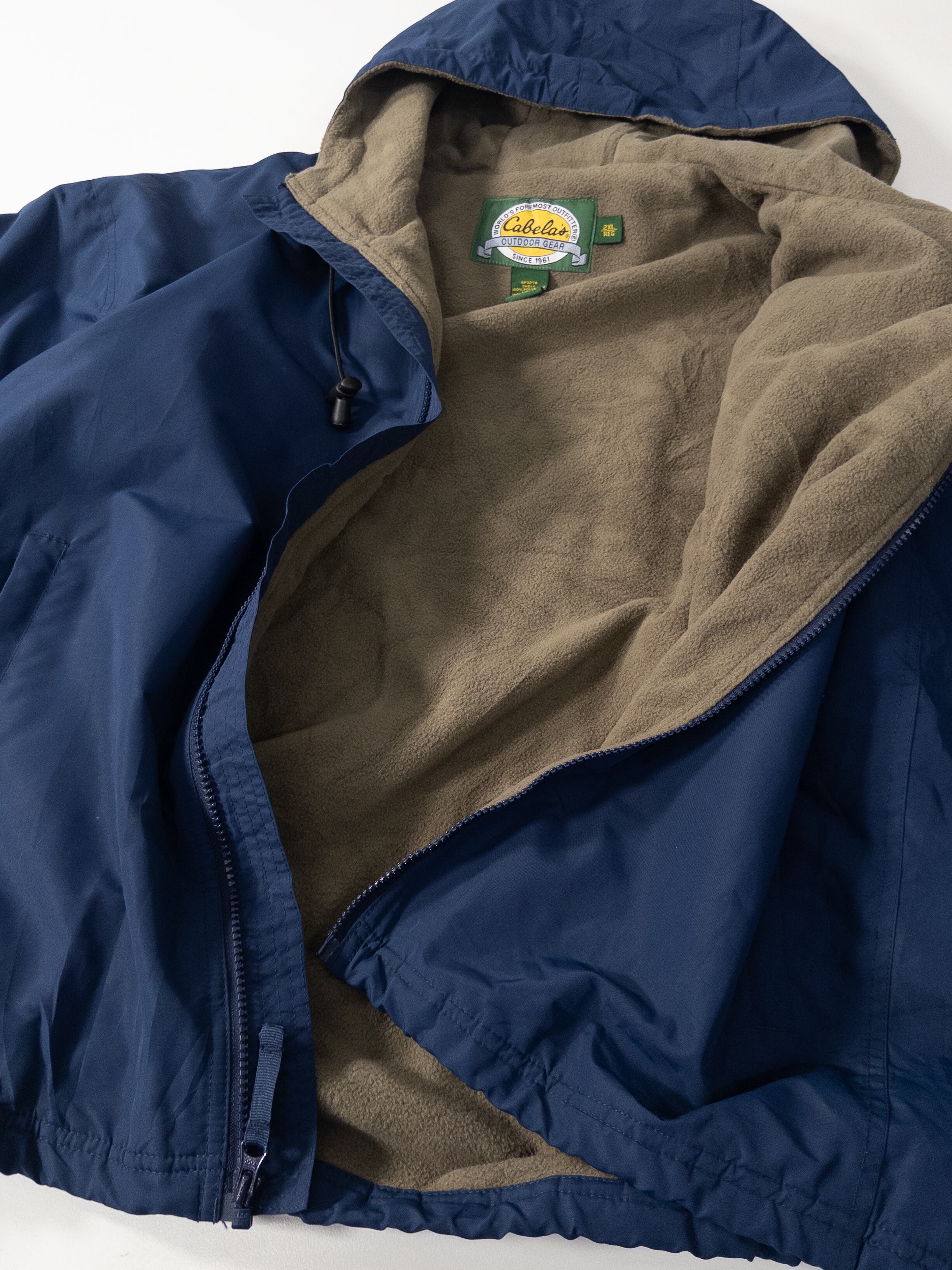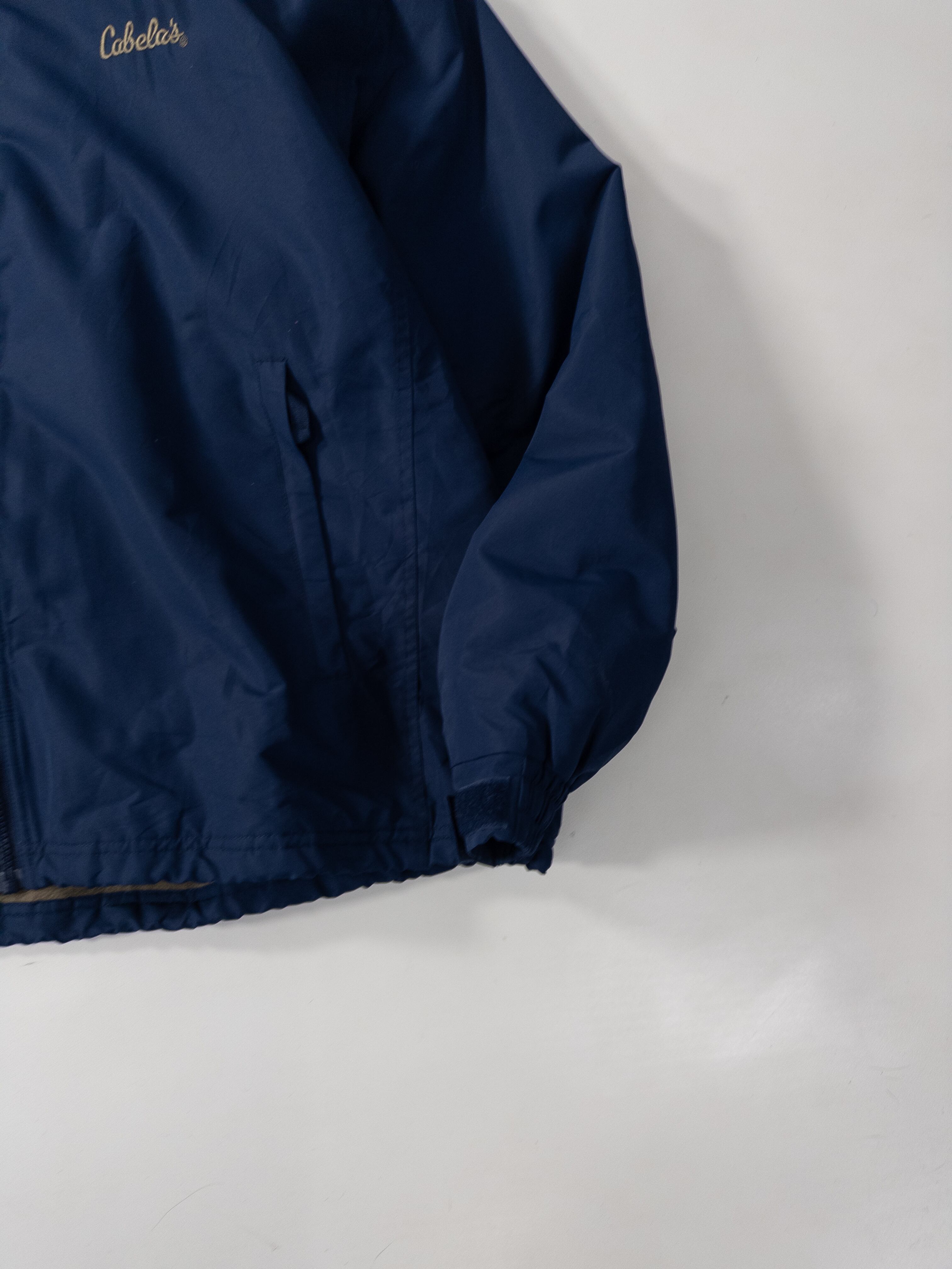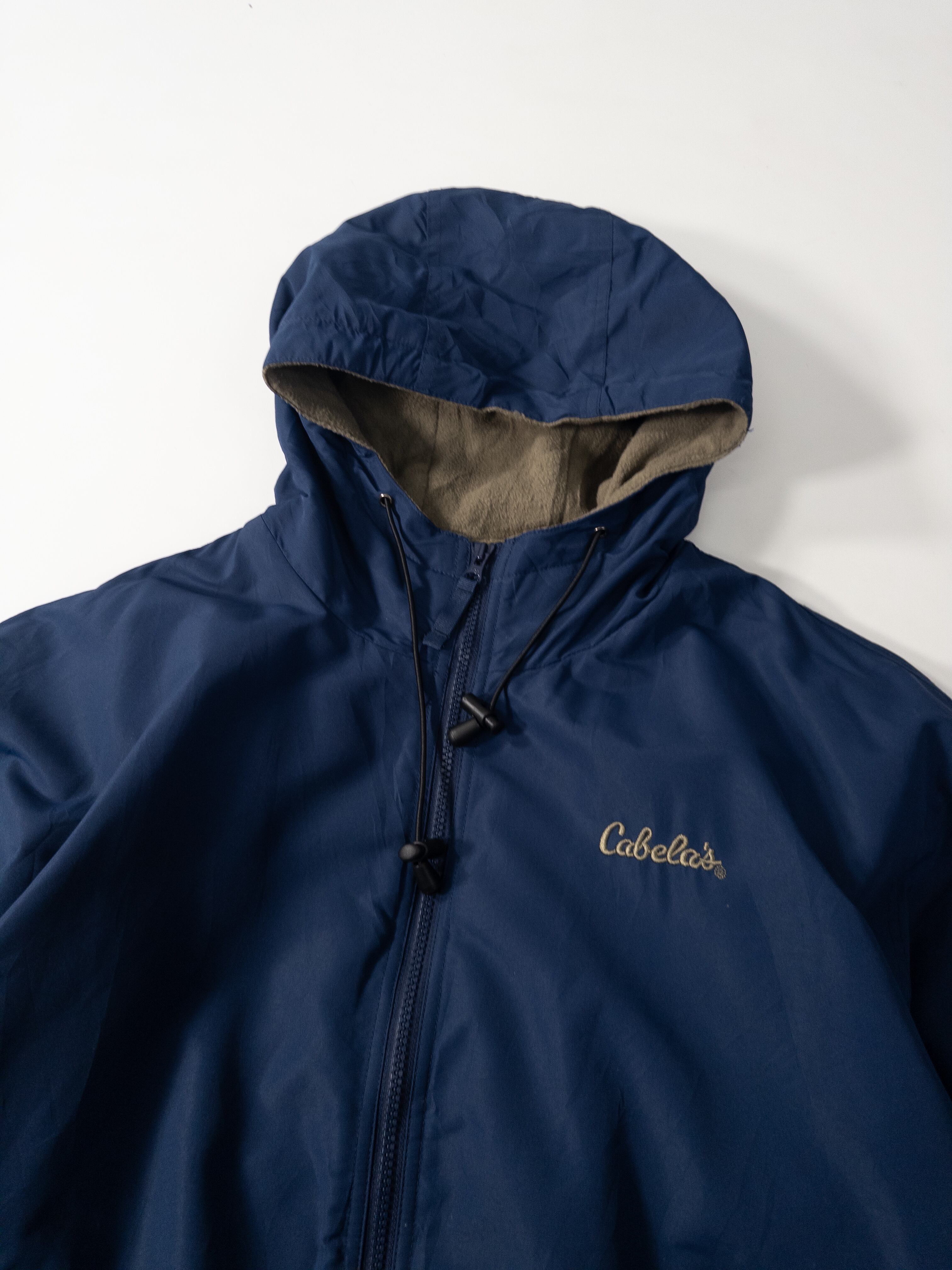 表地にはナイロンライクな質感の高密度ポリエステルシェルを使用し、軽さと防風性を両立したCabela’sらしい実用的な一着。