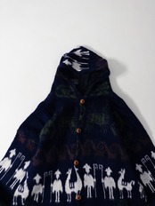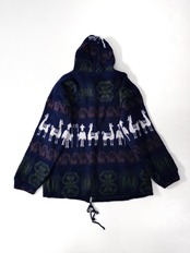 エクアドルニットを思わせるフォークロアな文様を、深いネイビーをベースにまとめたフーデッドニットジャケット。