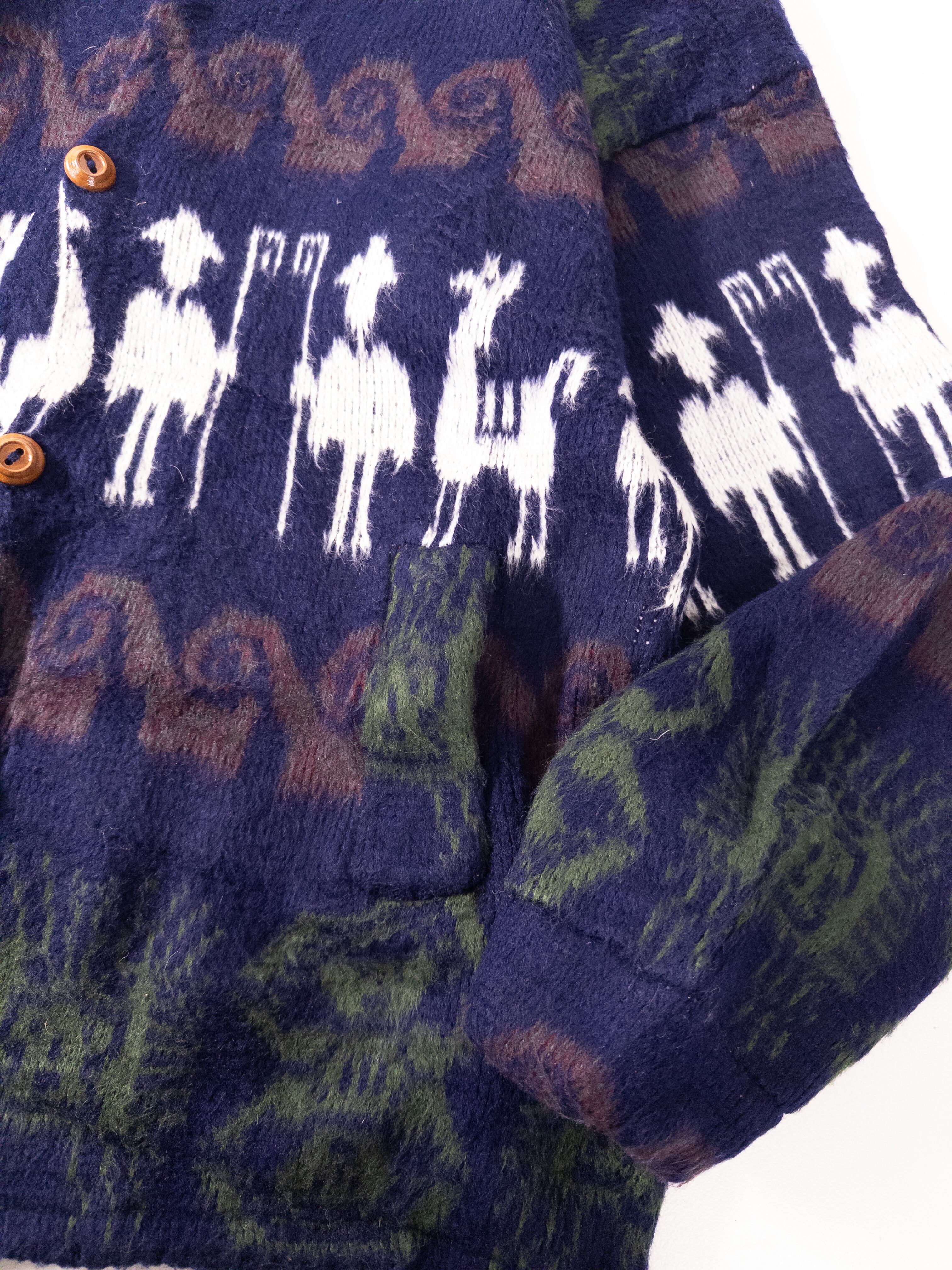 Ecuadorian Llama Pattern Knit Hooded Jacket