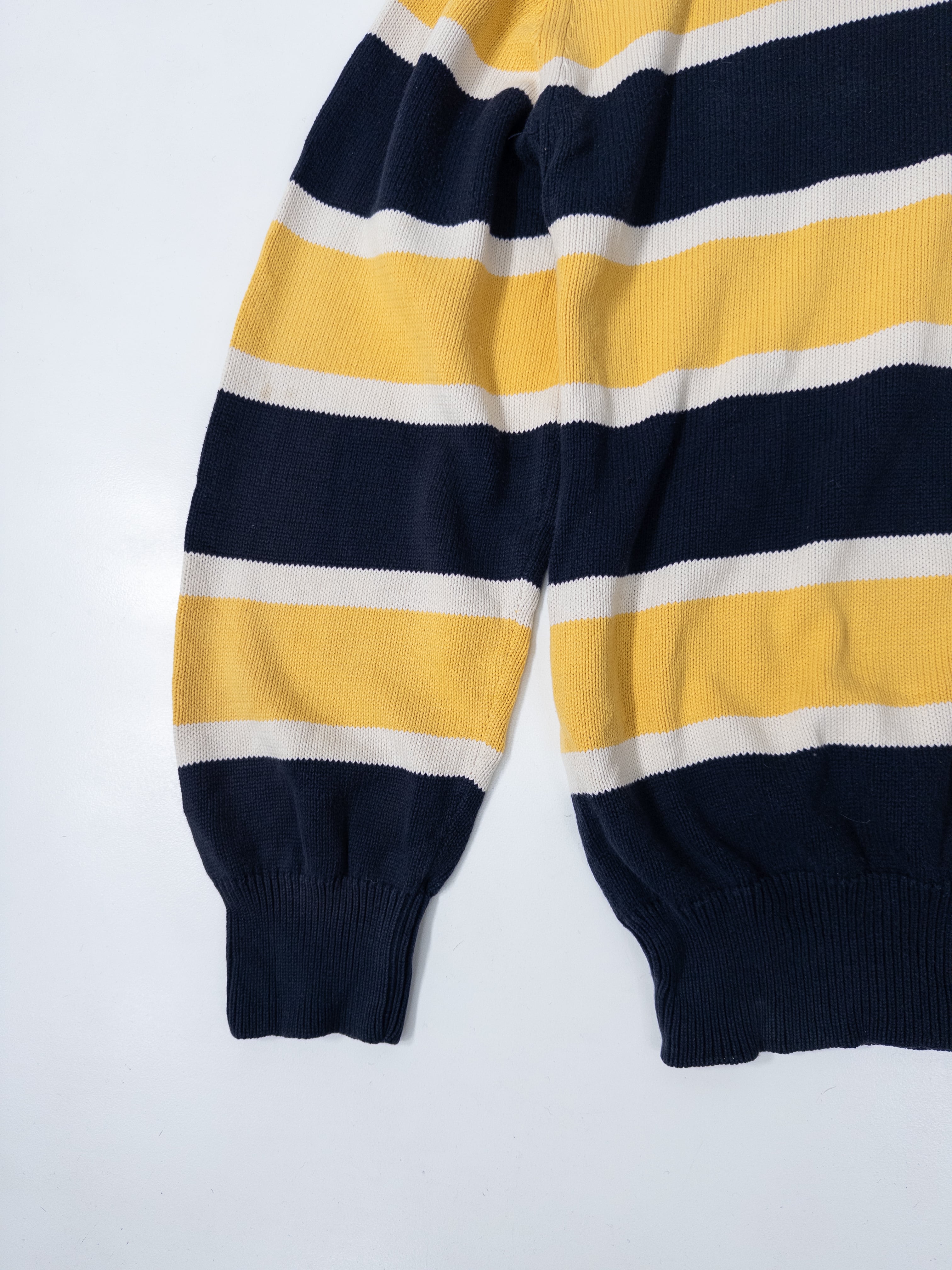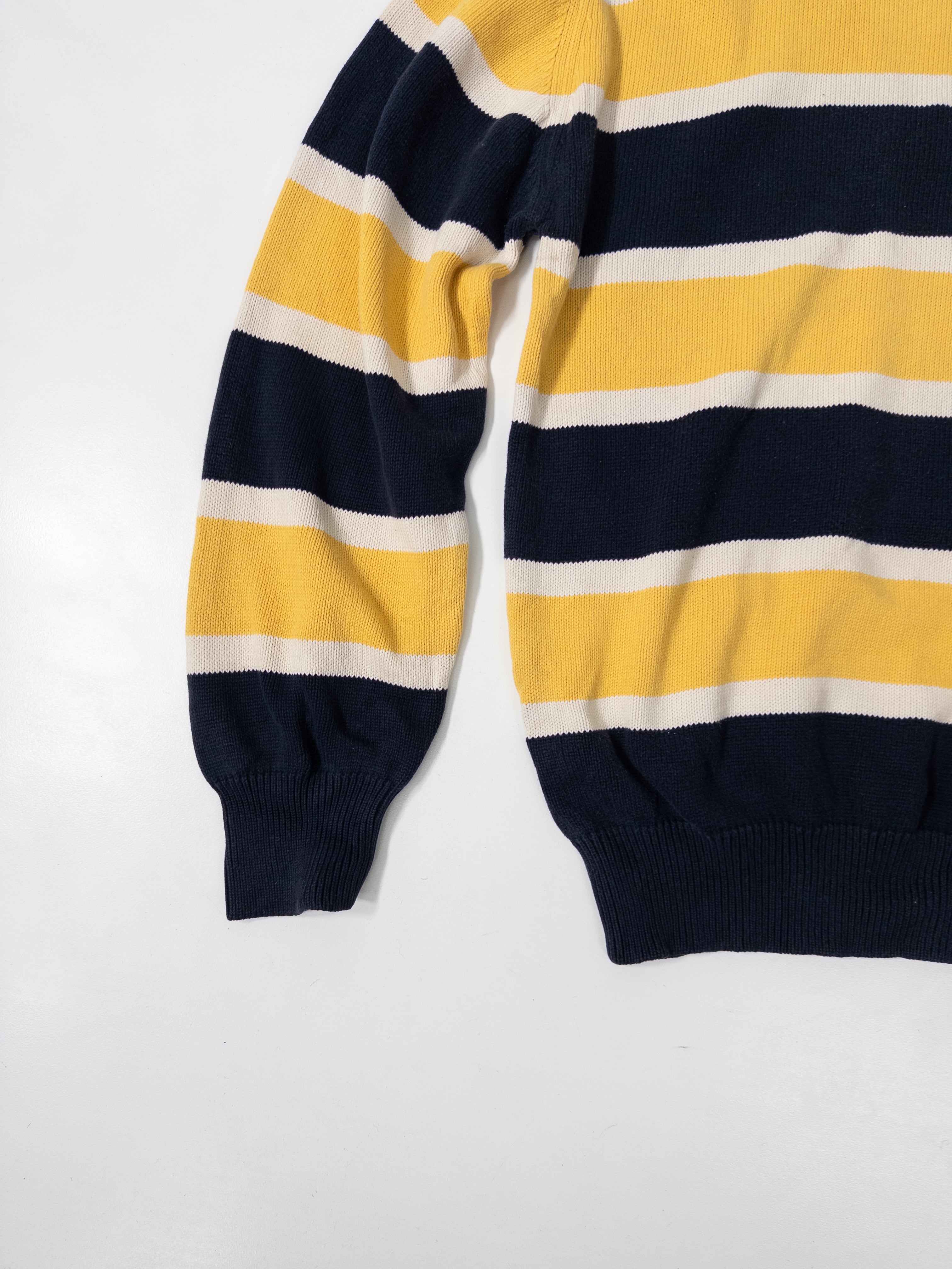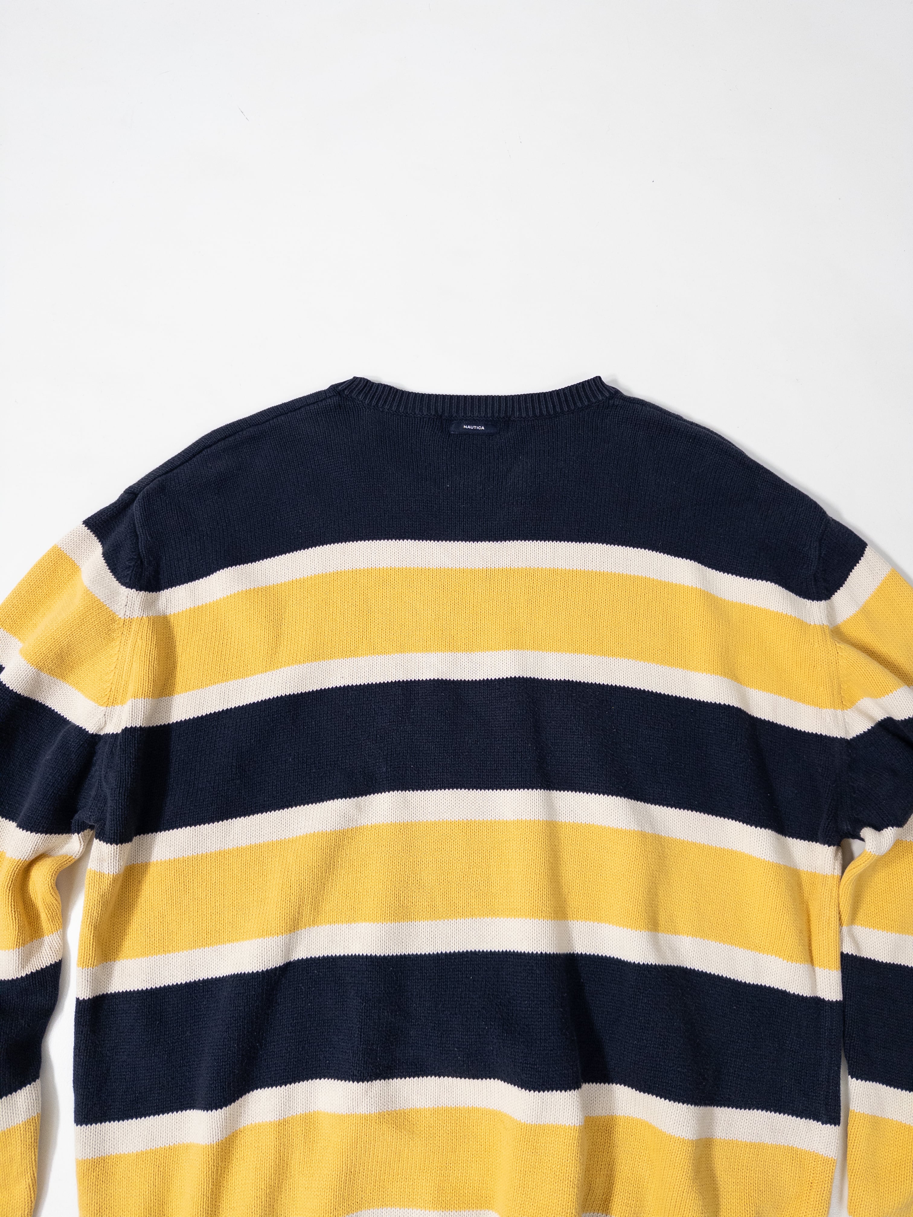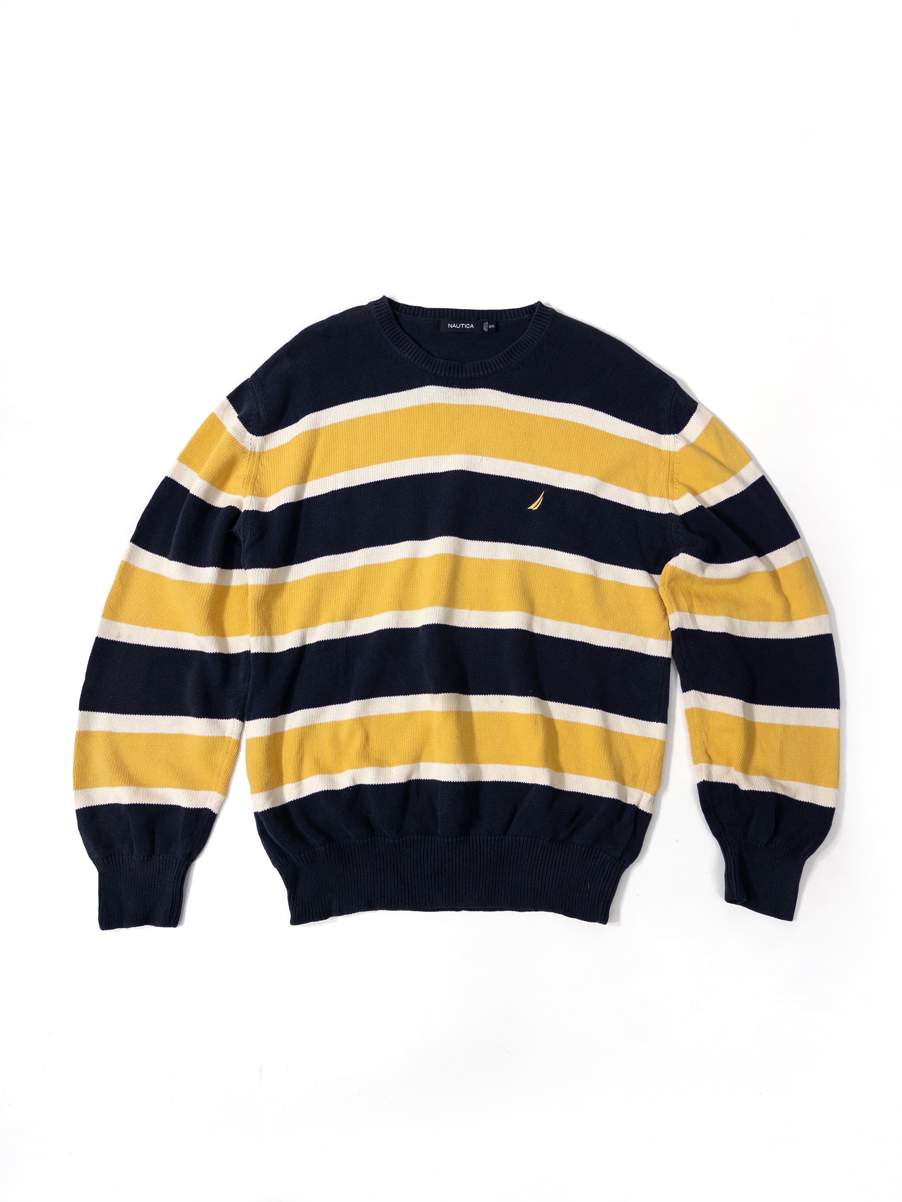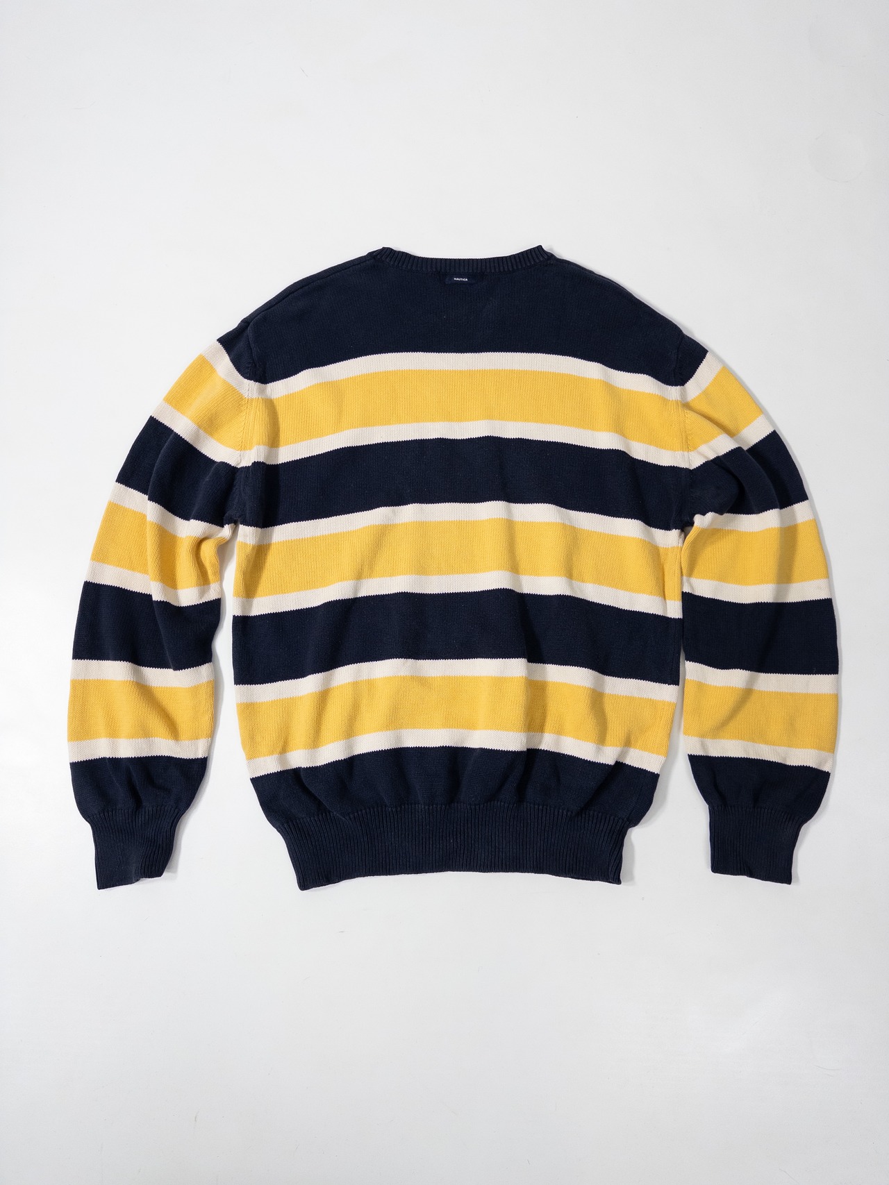 ネイビーをベースに、マスタード×ホワイトの配色が効いた一枚です。