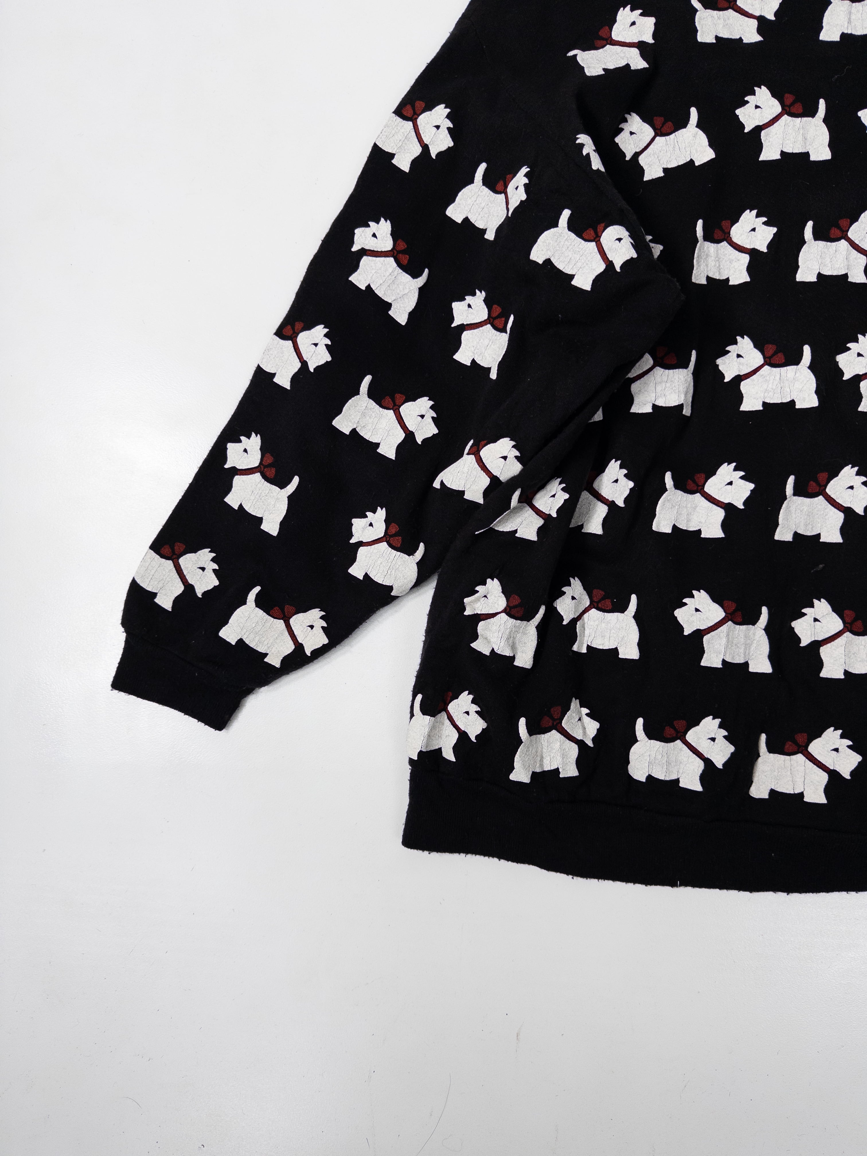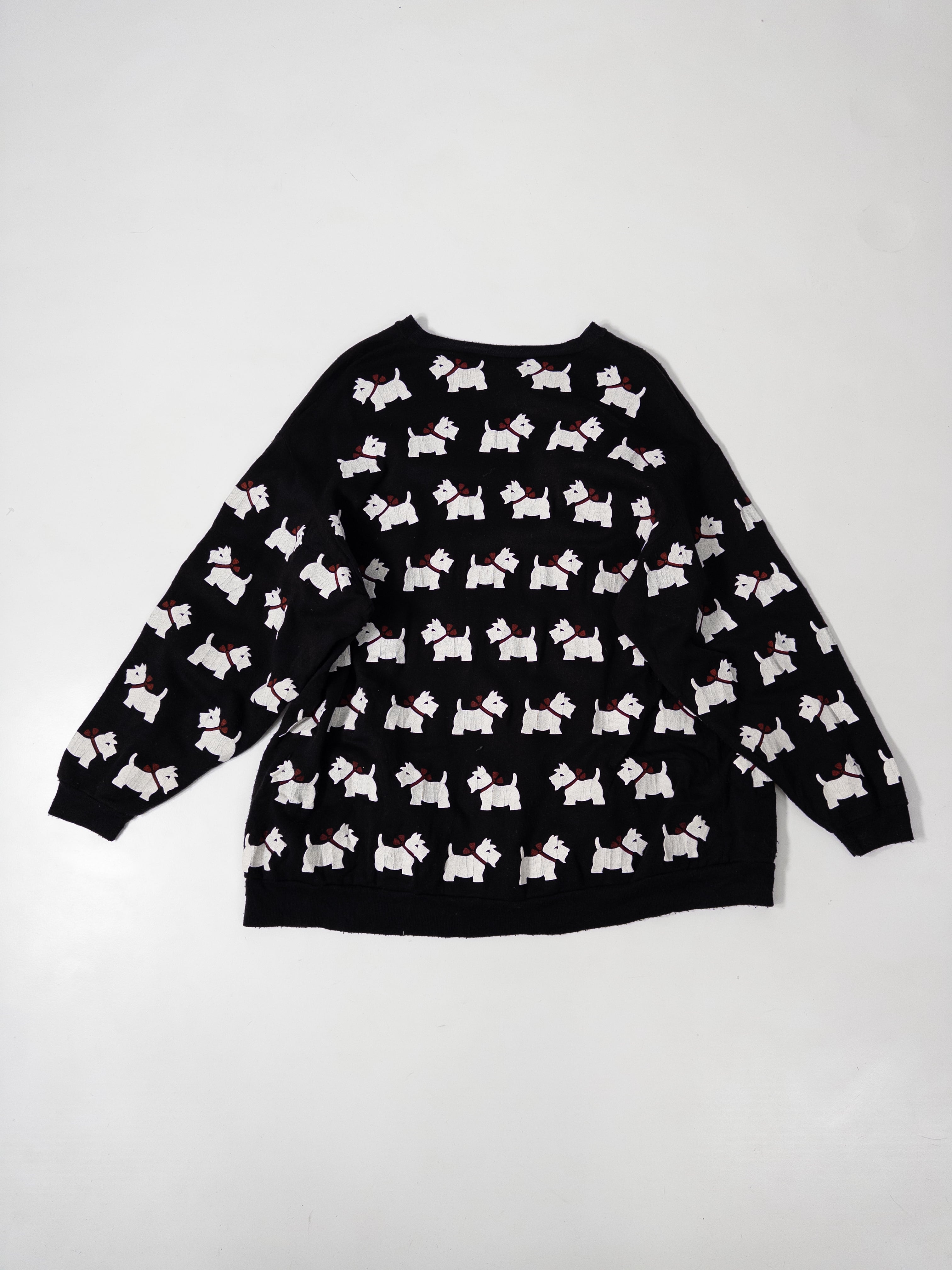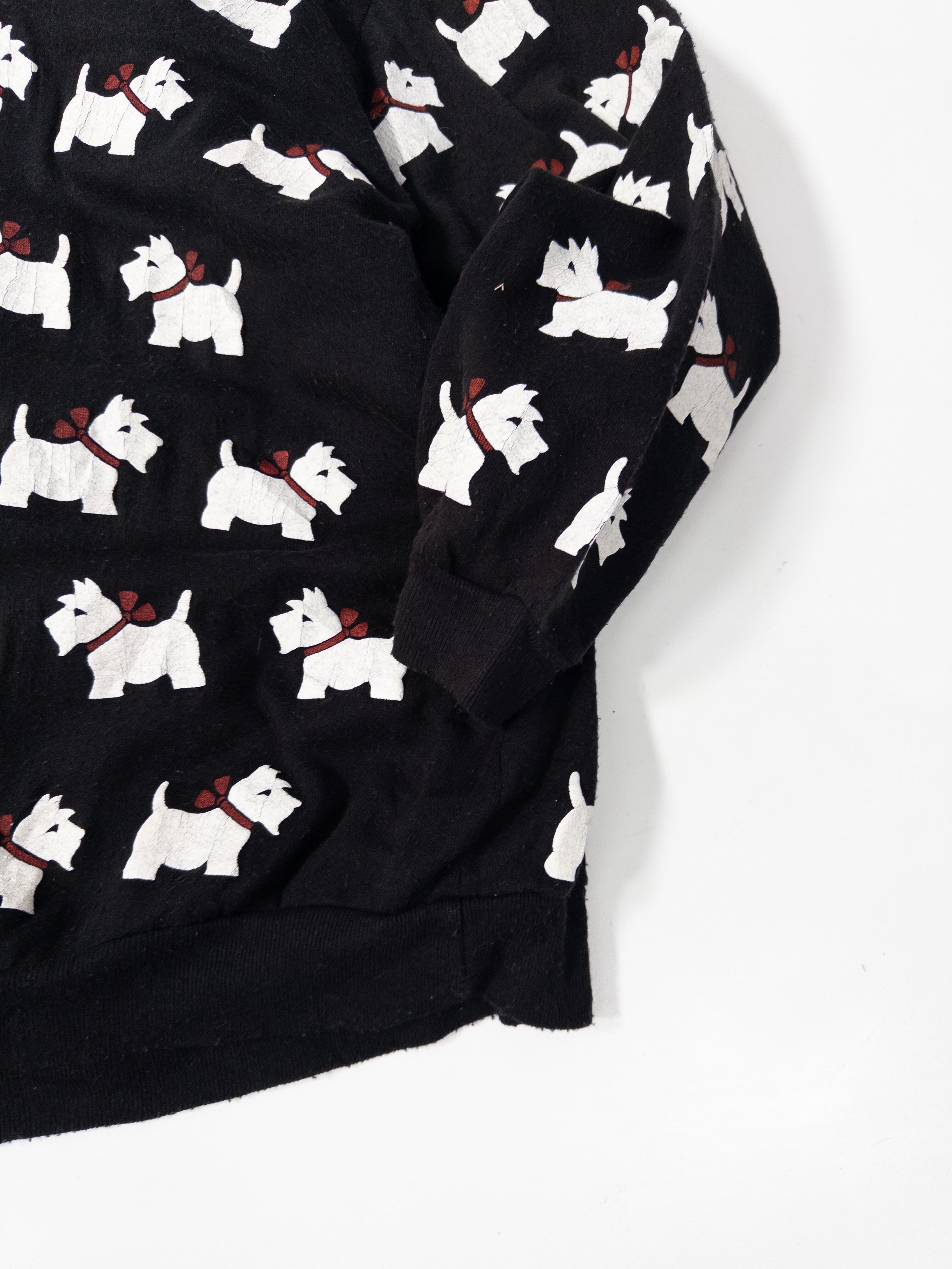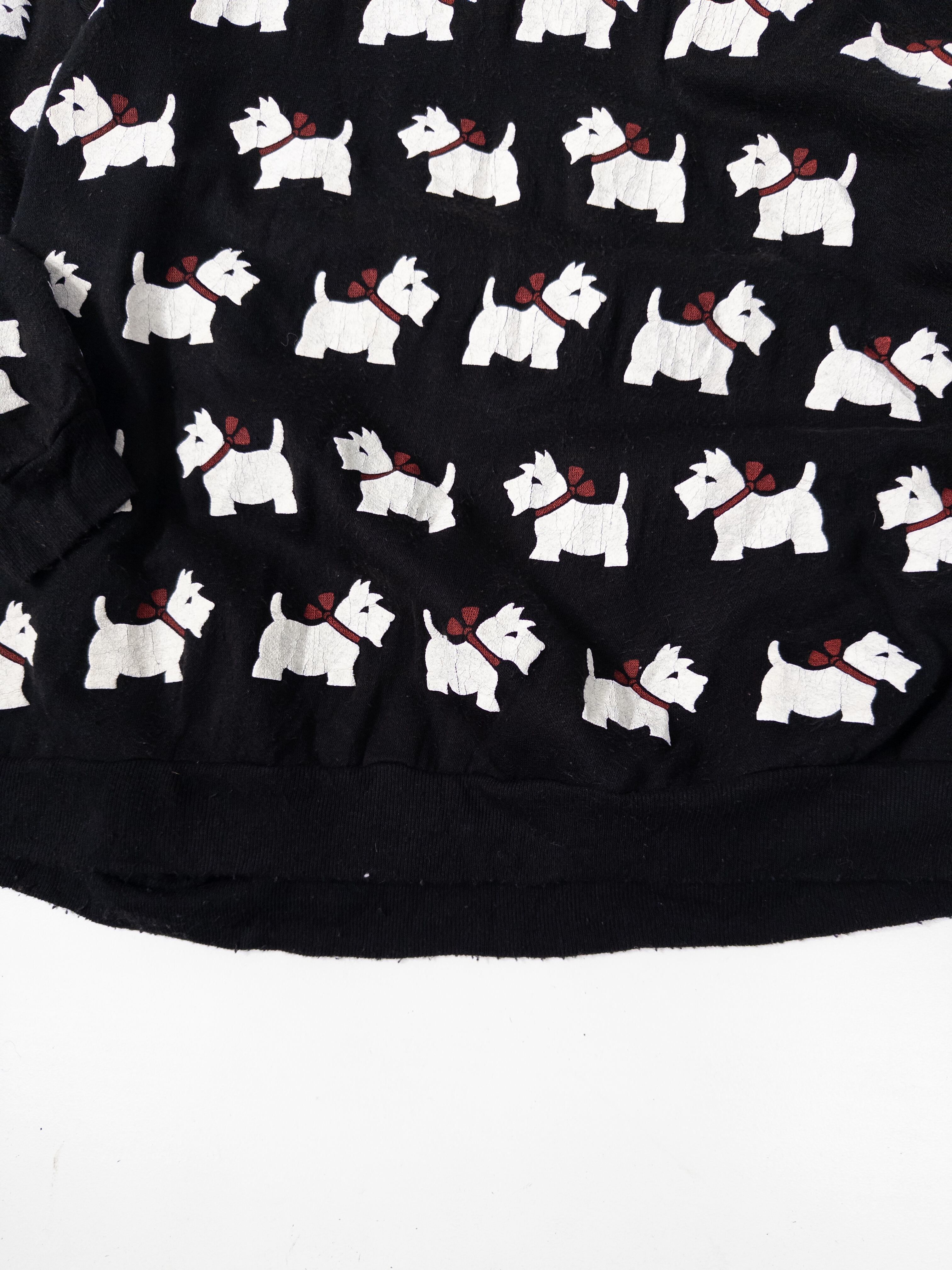 一面に並ぶホワイトテリア柄が目を引く、総柄スウェット。