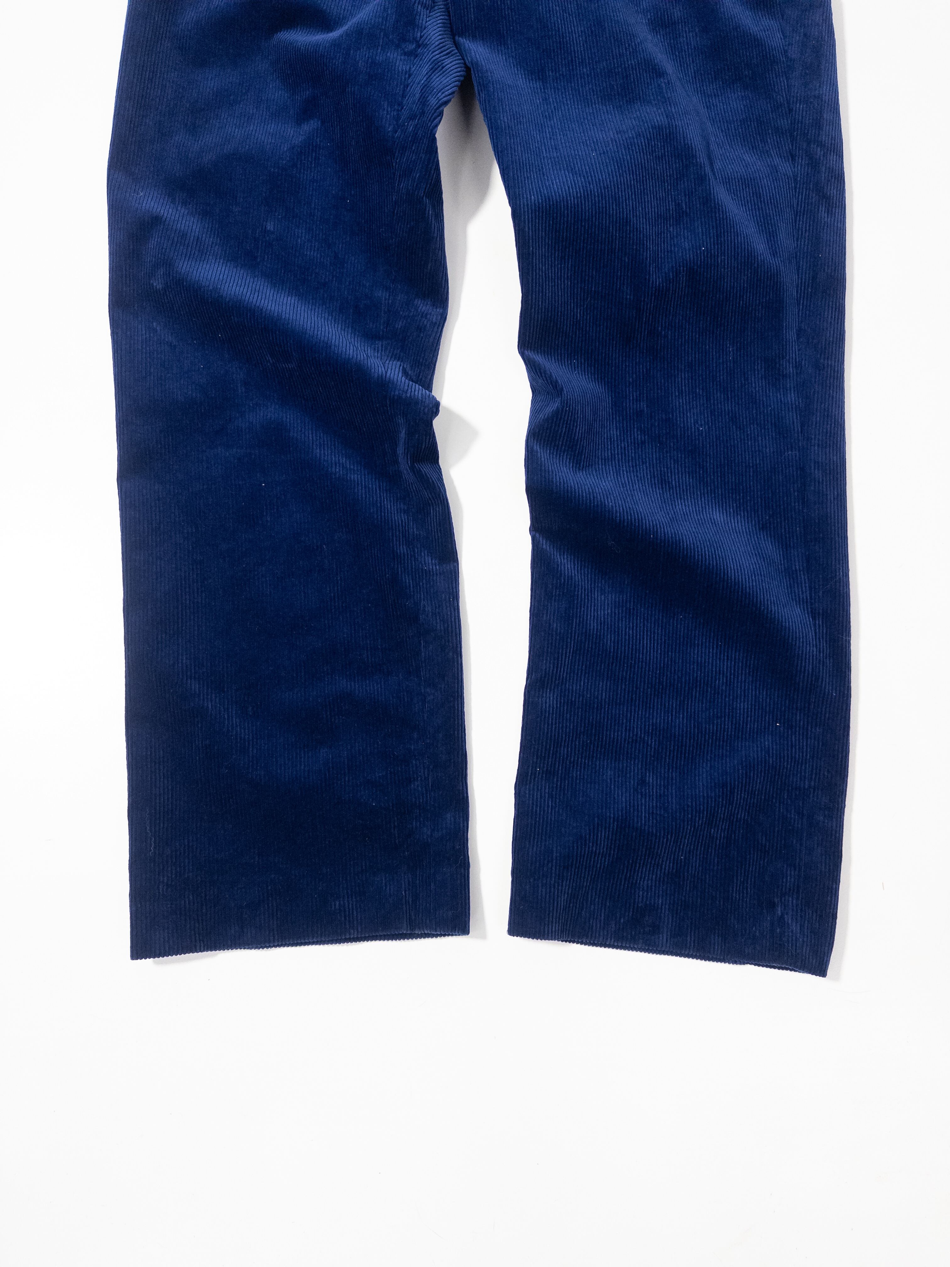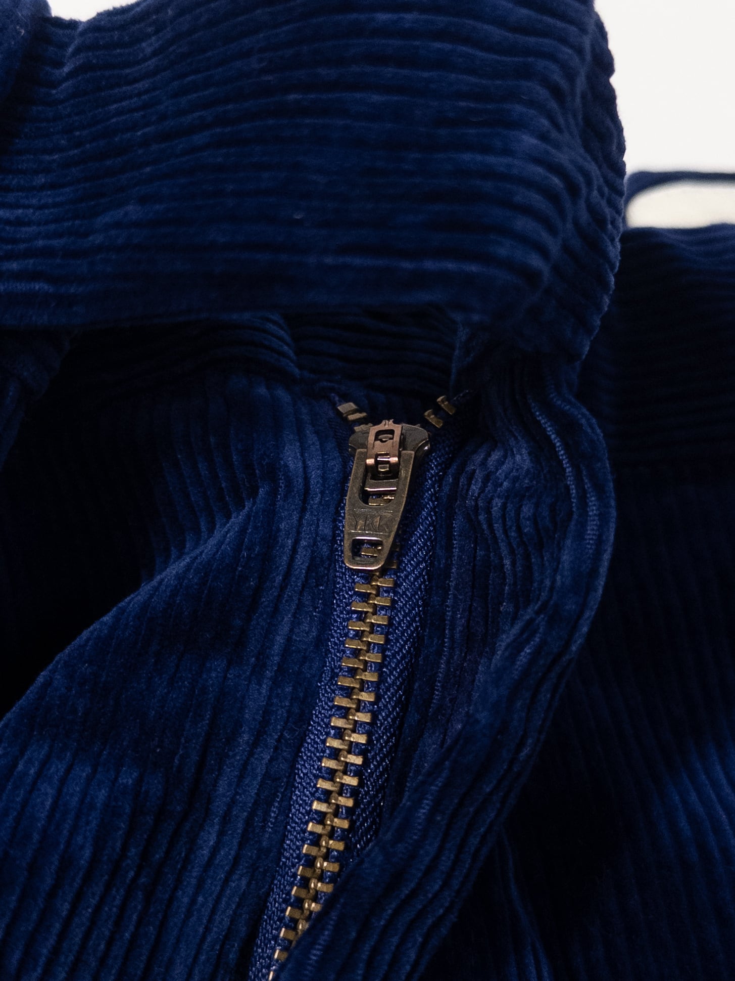 畝の細かいネイビーコーデュロイは、一見ベーシックながら、光の当たり方で表情が変わる奥行きのある素材感が魅力。