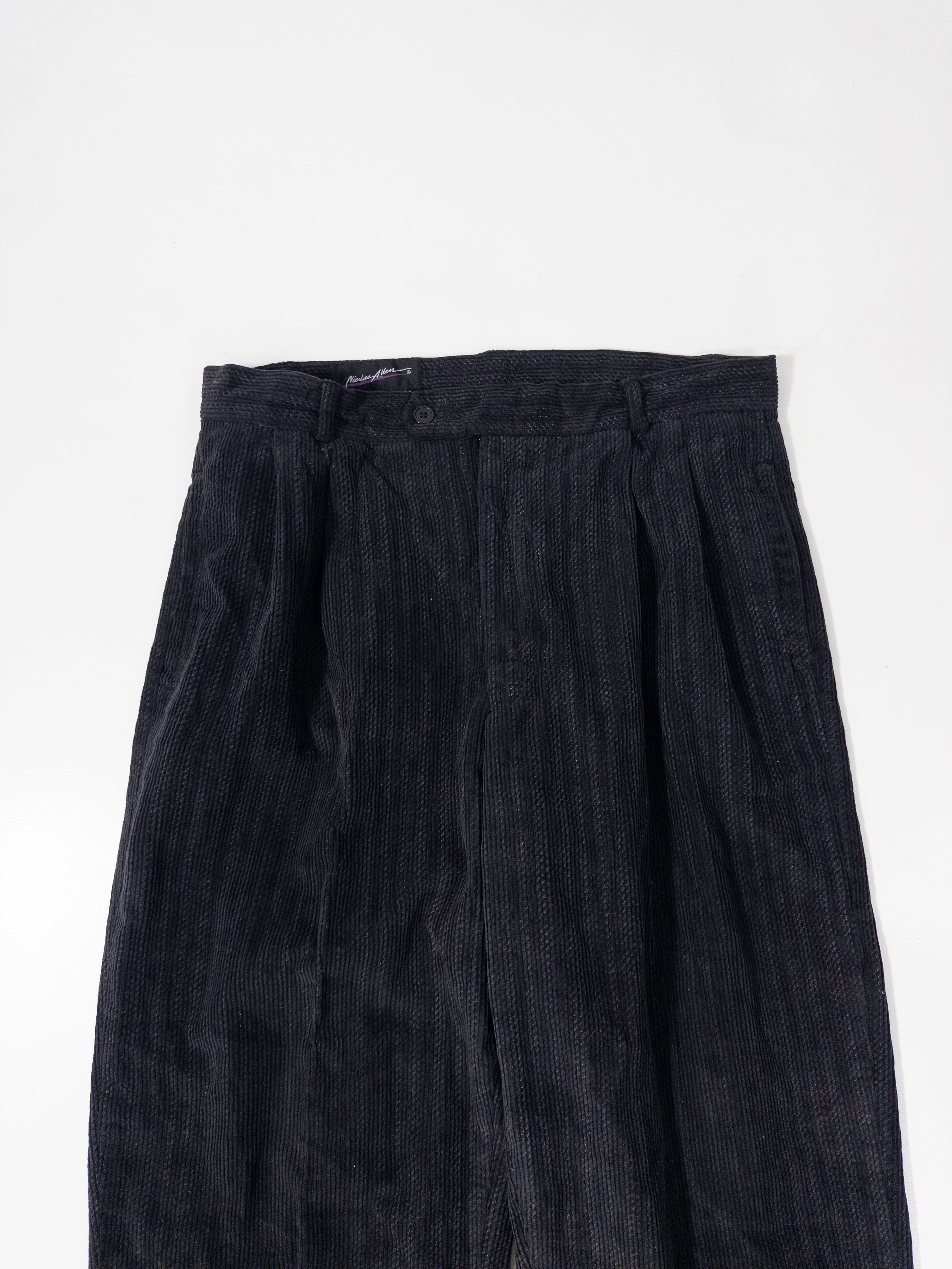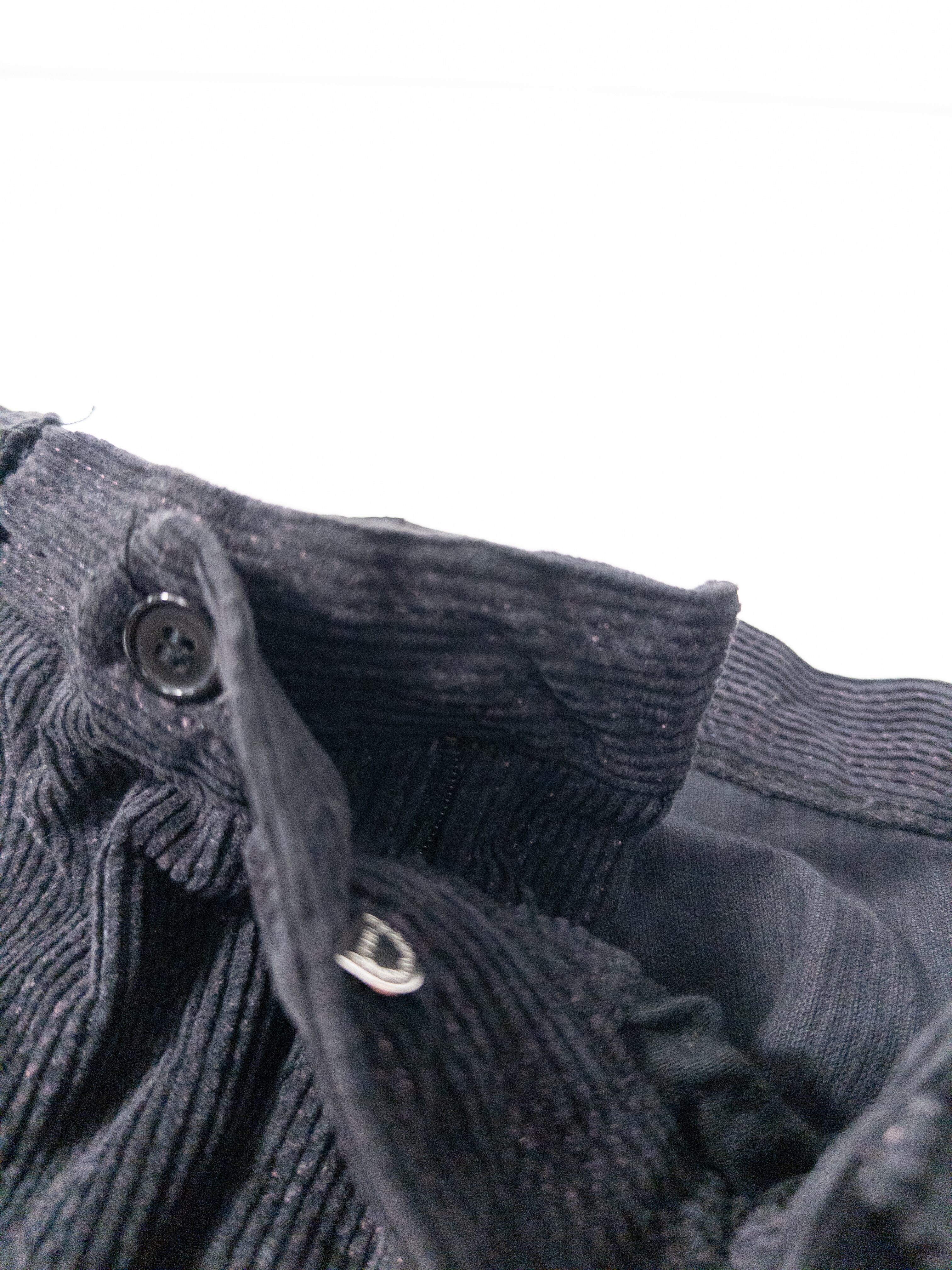 一見すると、かなり静かなブラックのコーデュロイトラウザー。