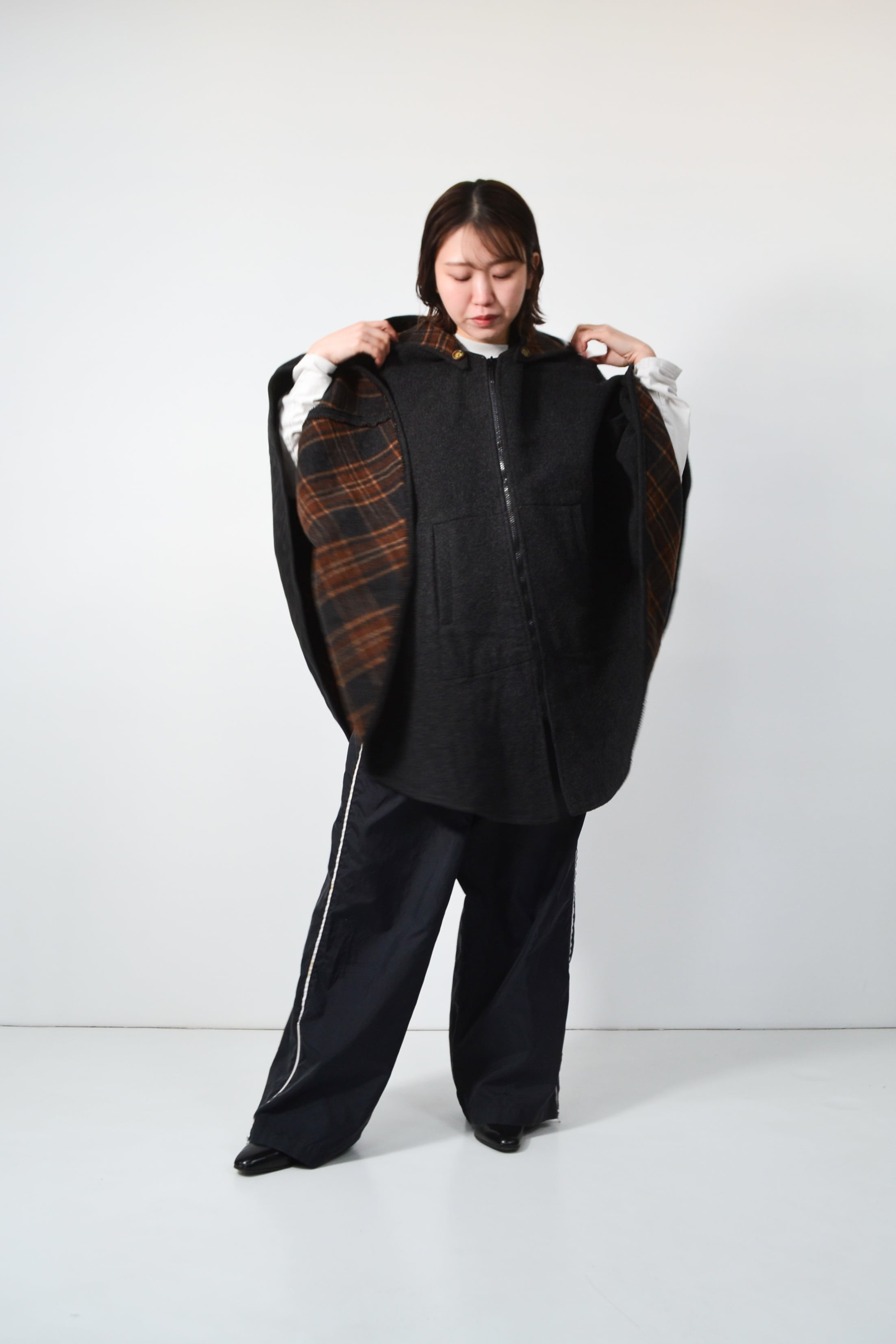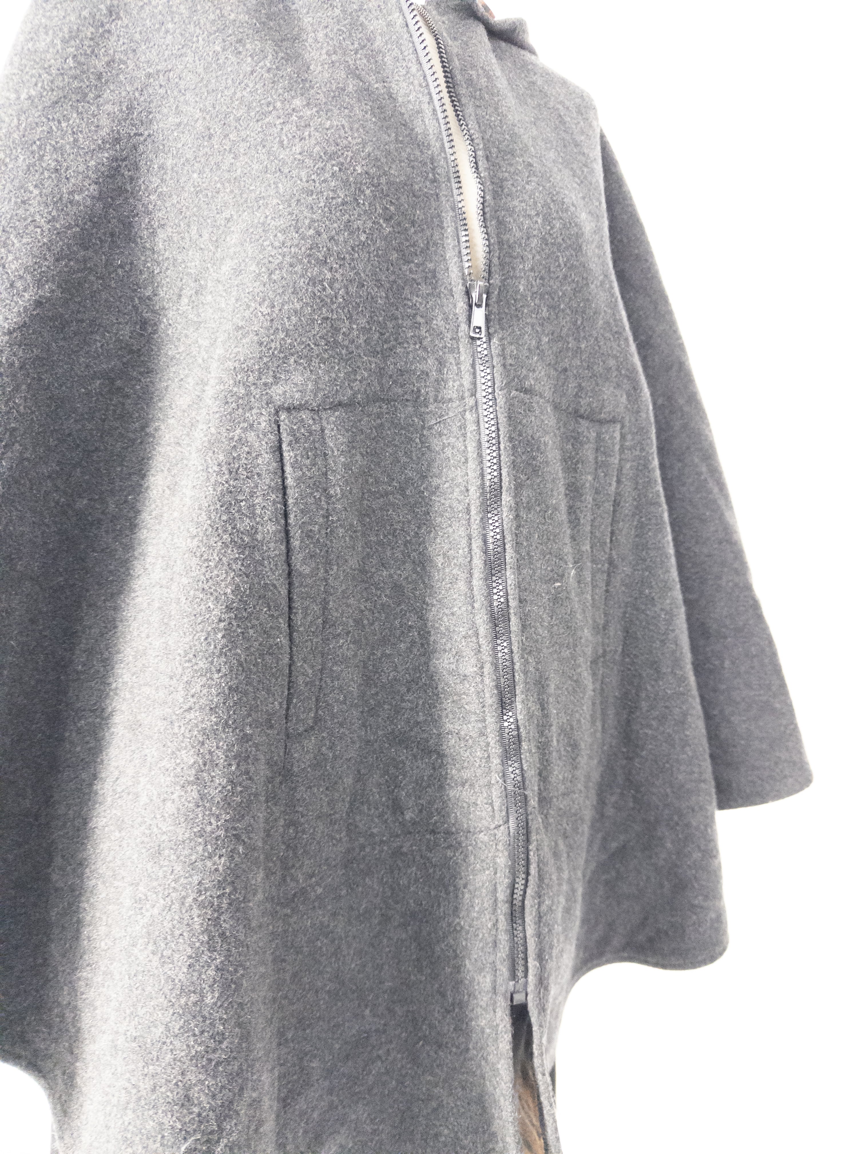 フロントはジップ仕様で、ケープ型ながらも着脱しやすく、