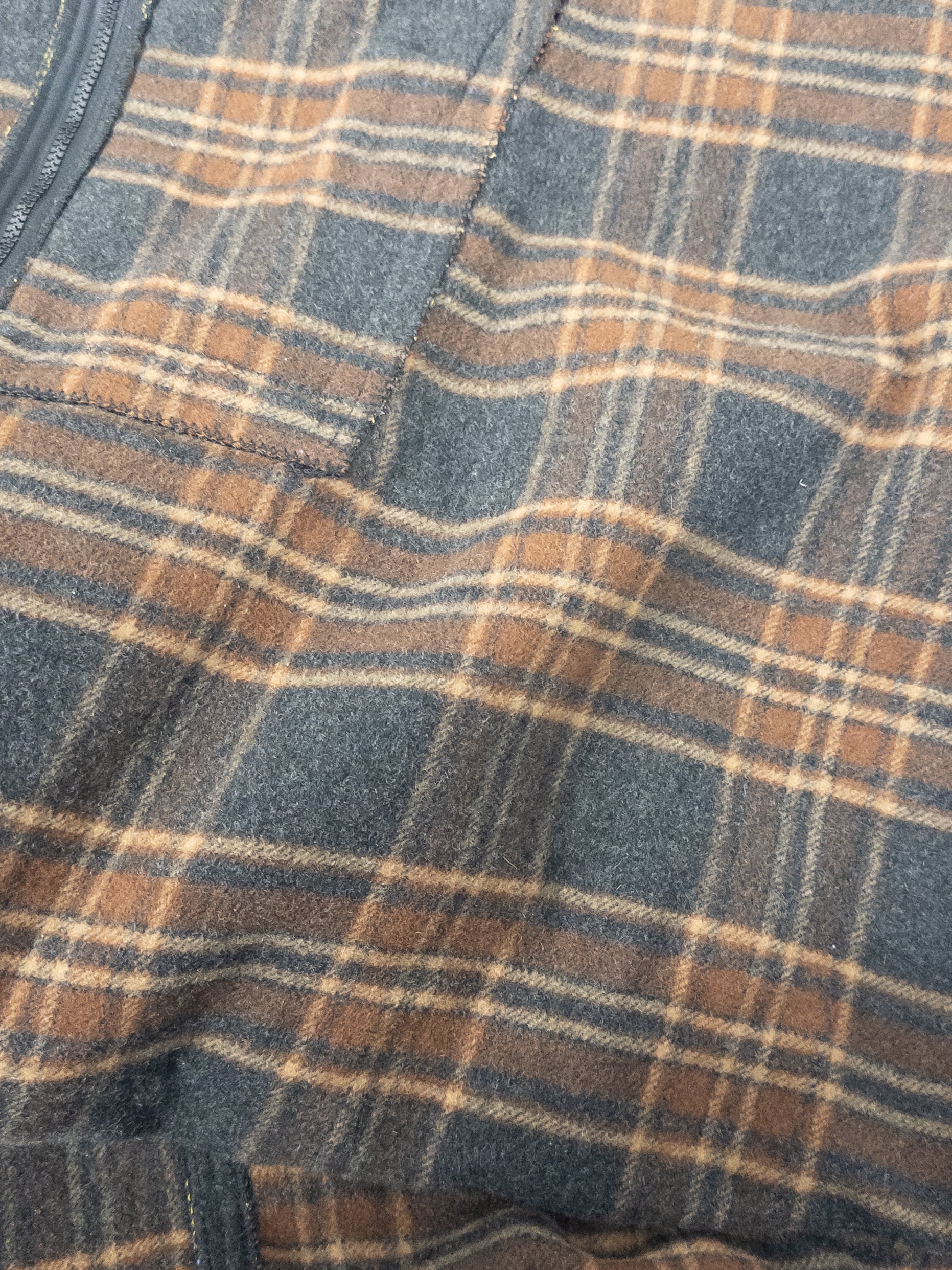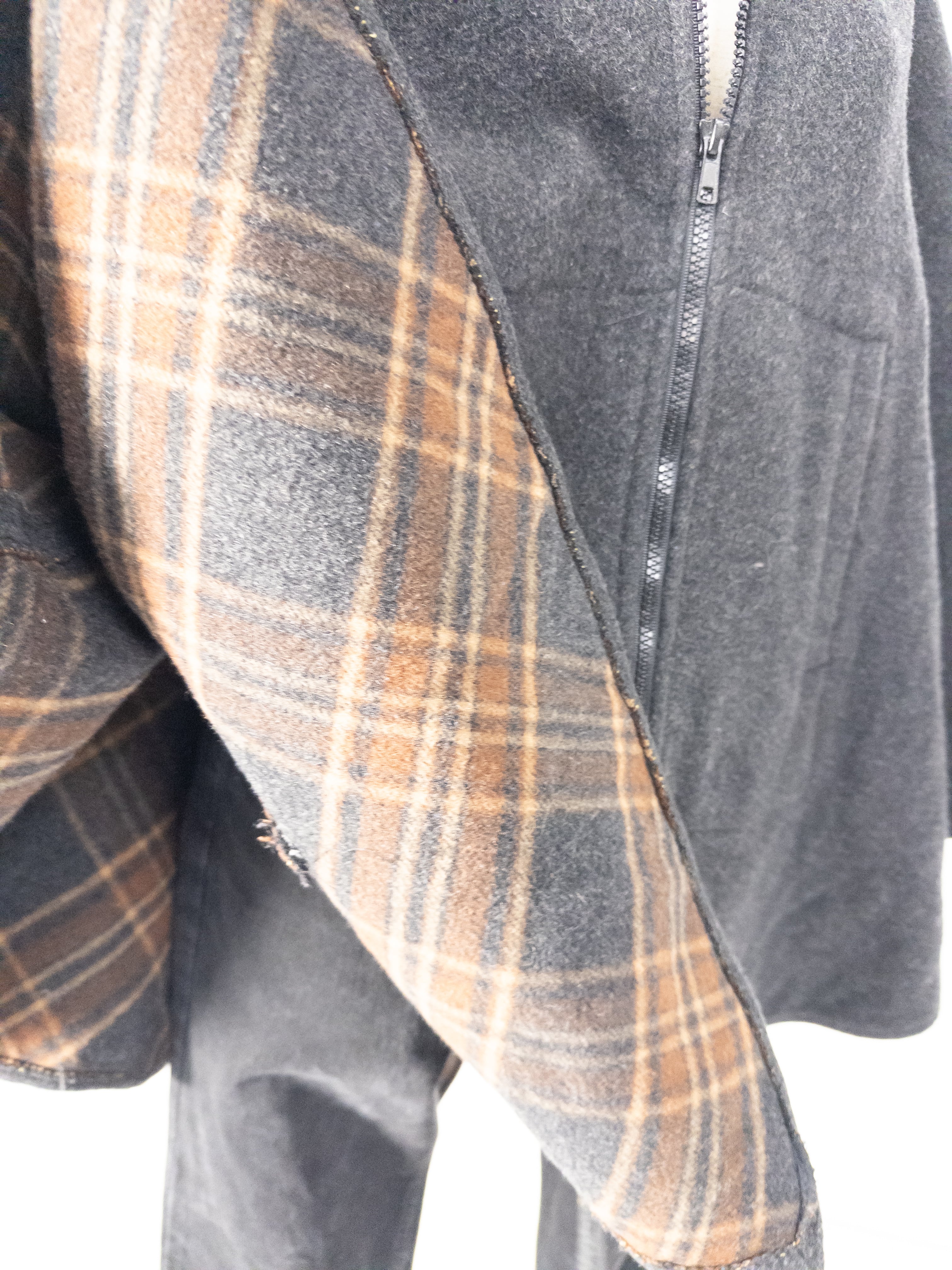 一見ミニマルなチャコールグレーですが、内側にはブラウン基調のチェックライニング。