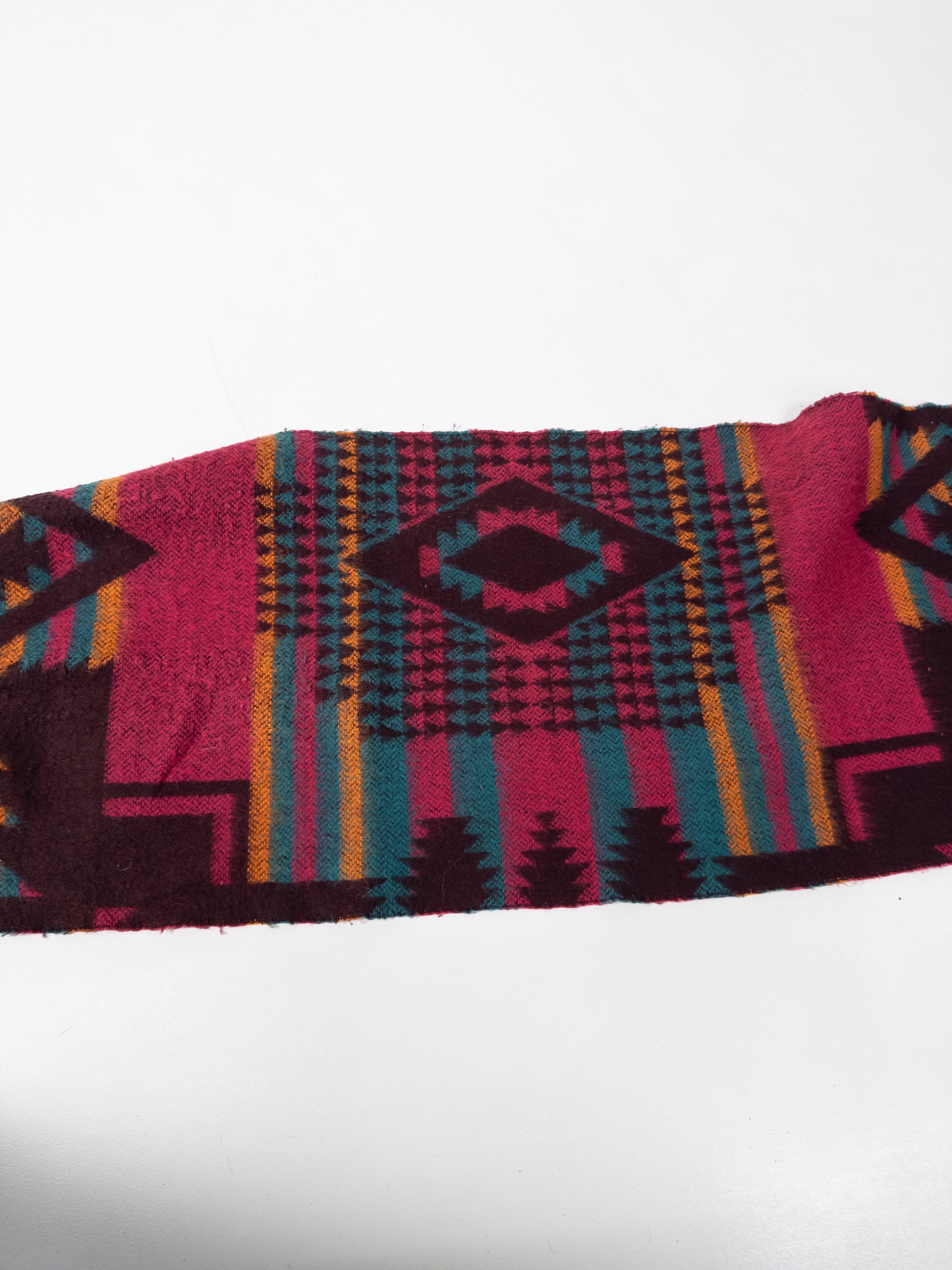 ネイティブ柄ではなく、80〜90年代のアメリカ量産テキスタイルらしい幾何学デザインです。