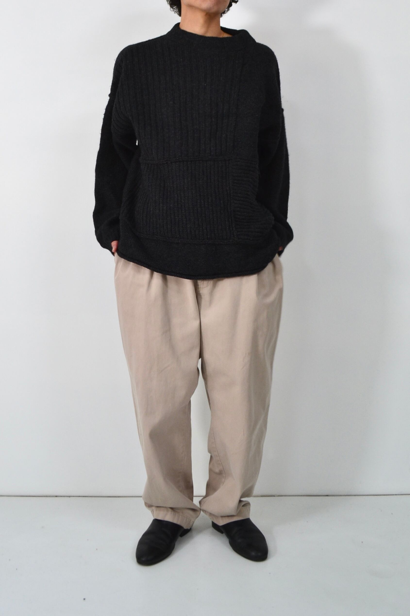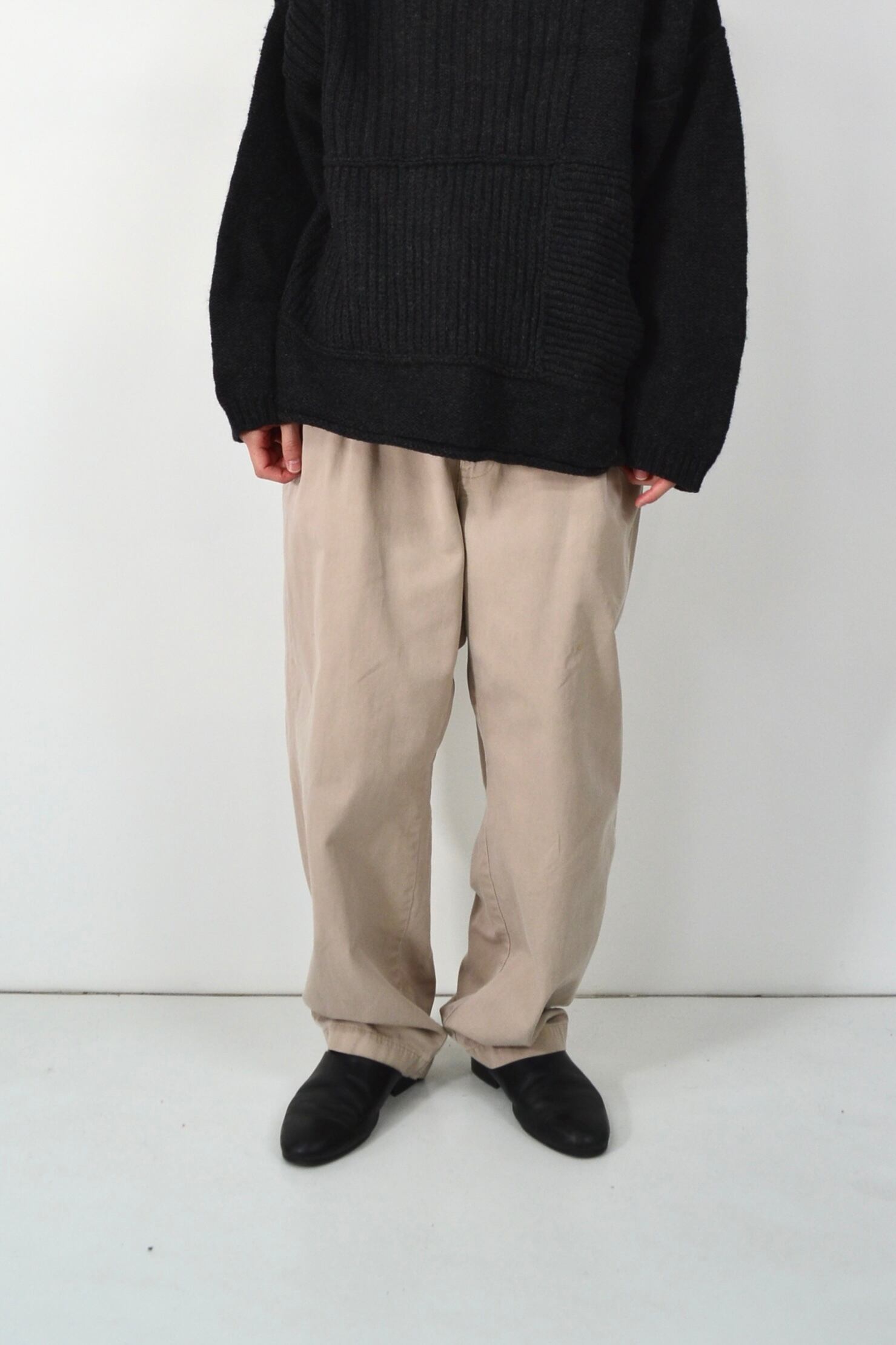 ウールスラックスみたいなドレープじゃなくて、乾いたコットンツイルのハリ感が主役。